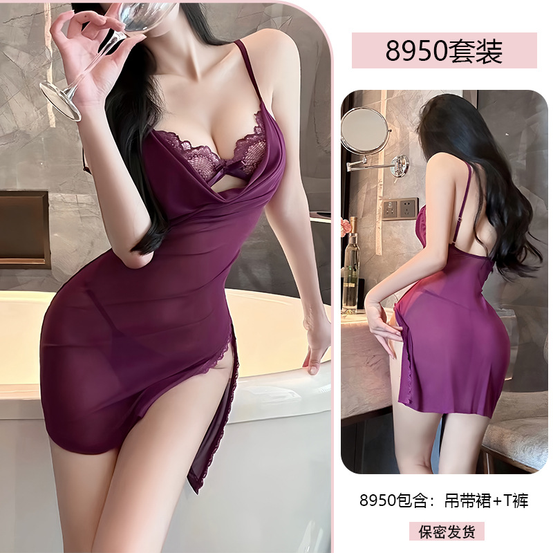 Оригинальное сексуальное белье Yiyue: соблазнительная ночная сорочка на бретельках с кружевом, прозрачная сетчатая пижама без необходимости снимать, модель 8950