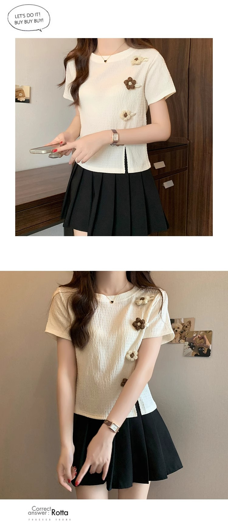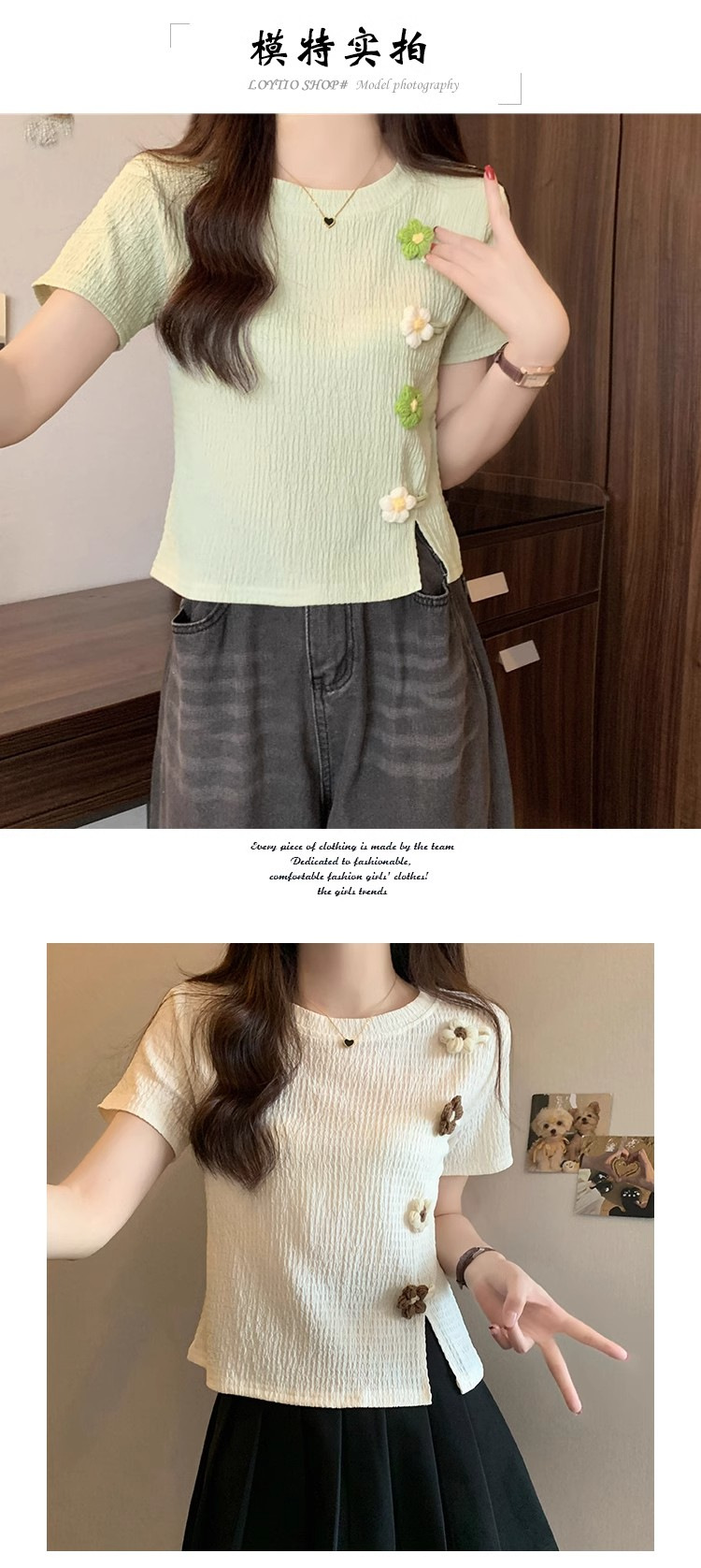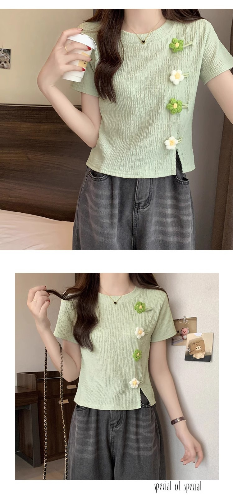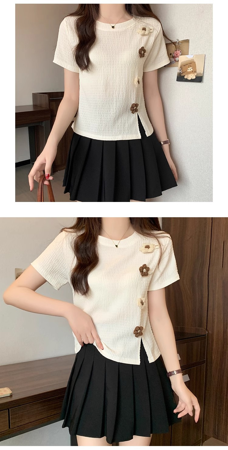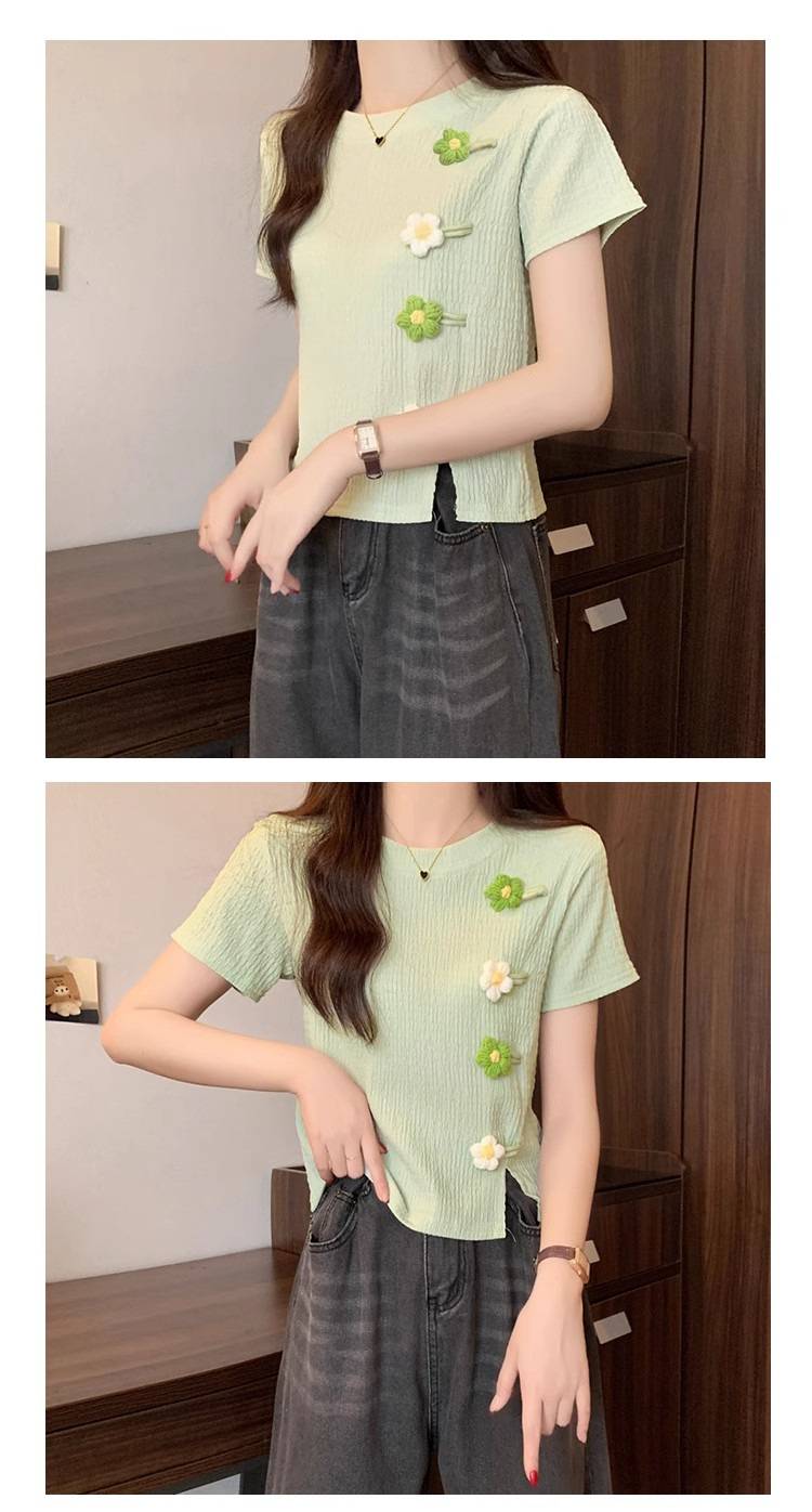 Короткая маленькая футболка с короткими рукавами женская 2024 новая корейская летняя трехмерная цветочная топ