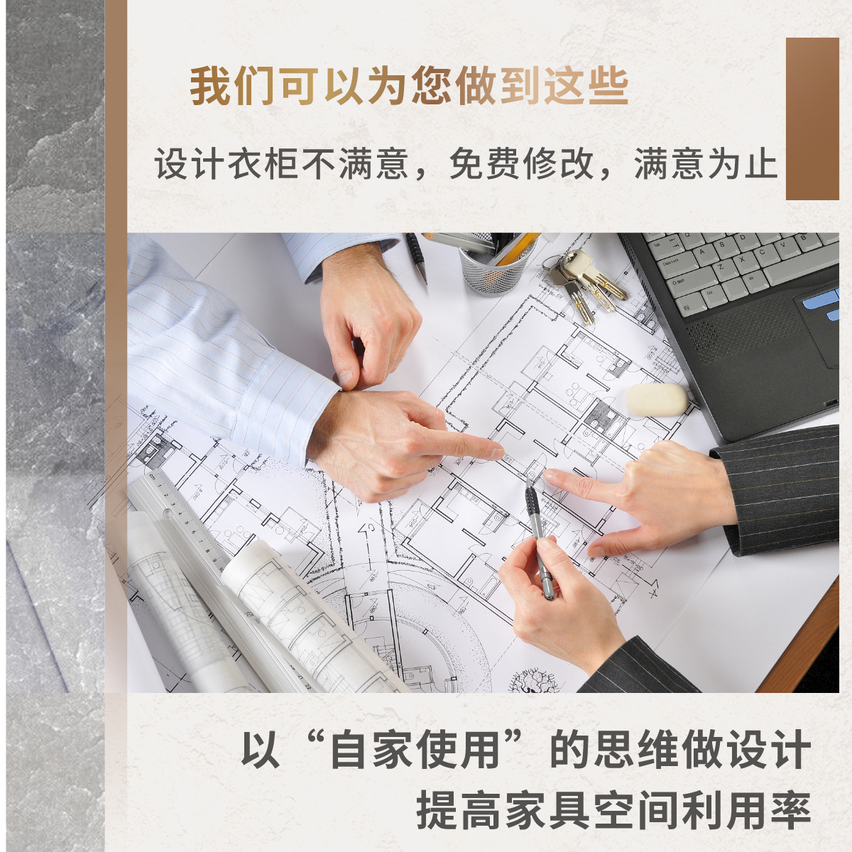 相比品牌店,我们更灵活:设计改动快、材料选择多、性价比更高。