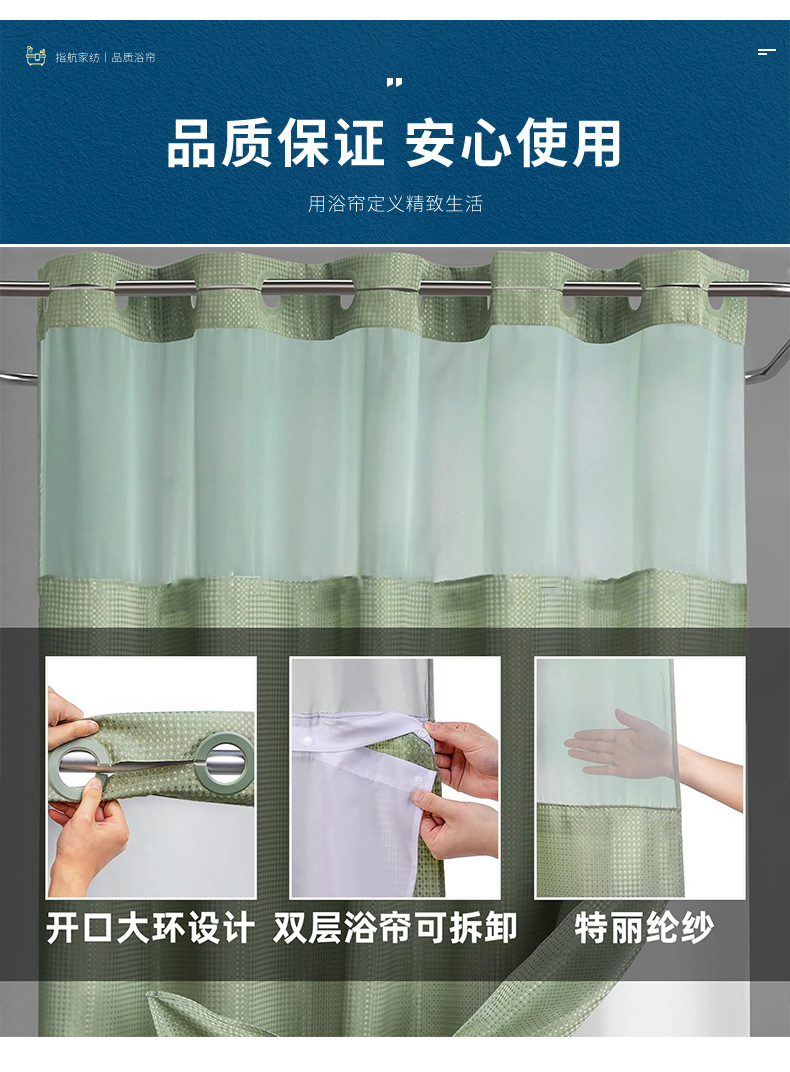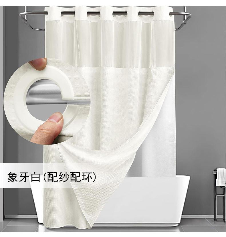 Вафельная занавеска для душа, двухслойная, с большим кольцом, водонепроницаемая занавеска из полиэстера, занавеска для ванной комнаты, занавеска-перегородка для ванной, водонепроницаемая и устойчивая к плесени занавеска
