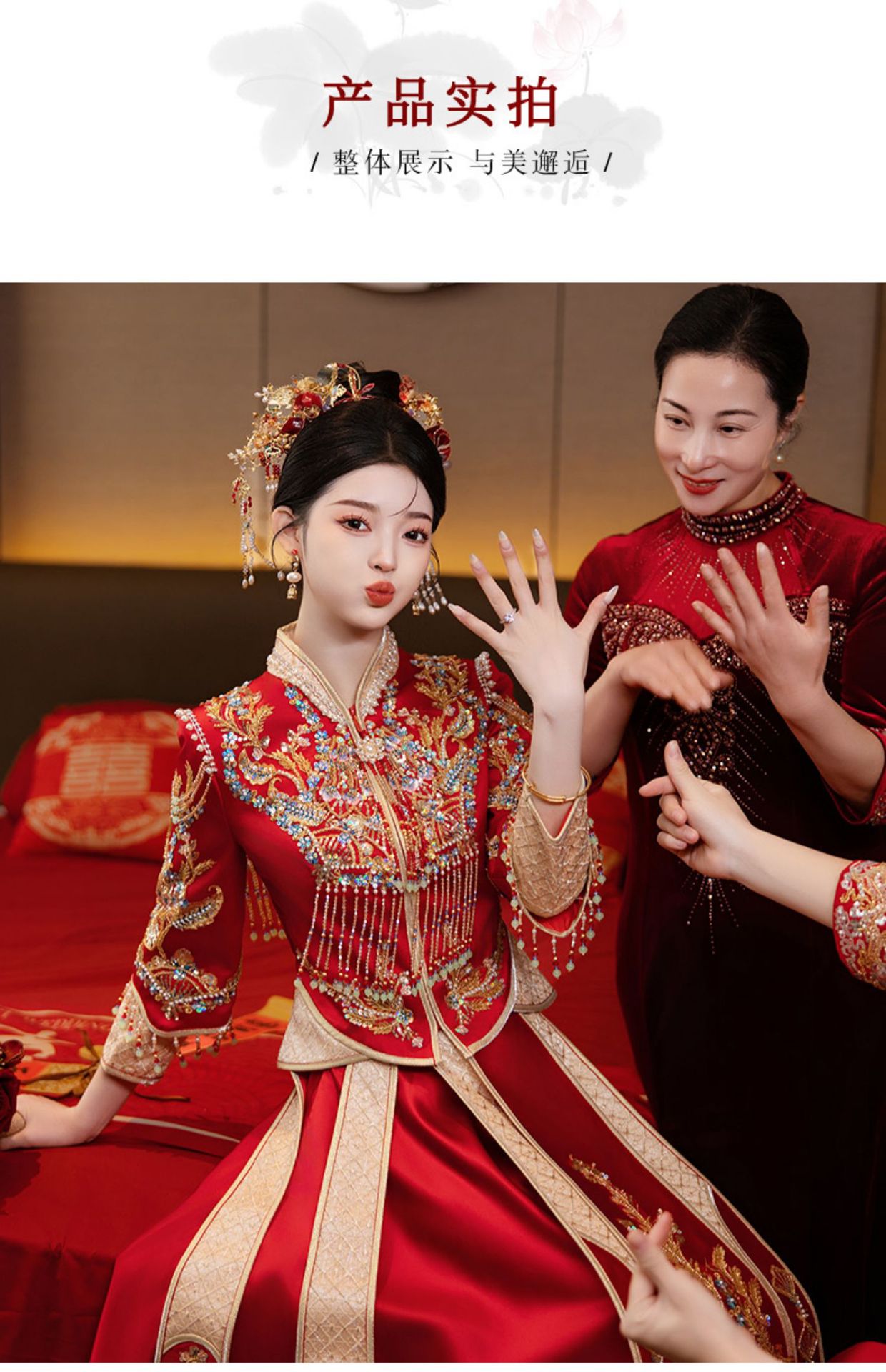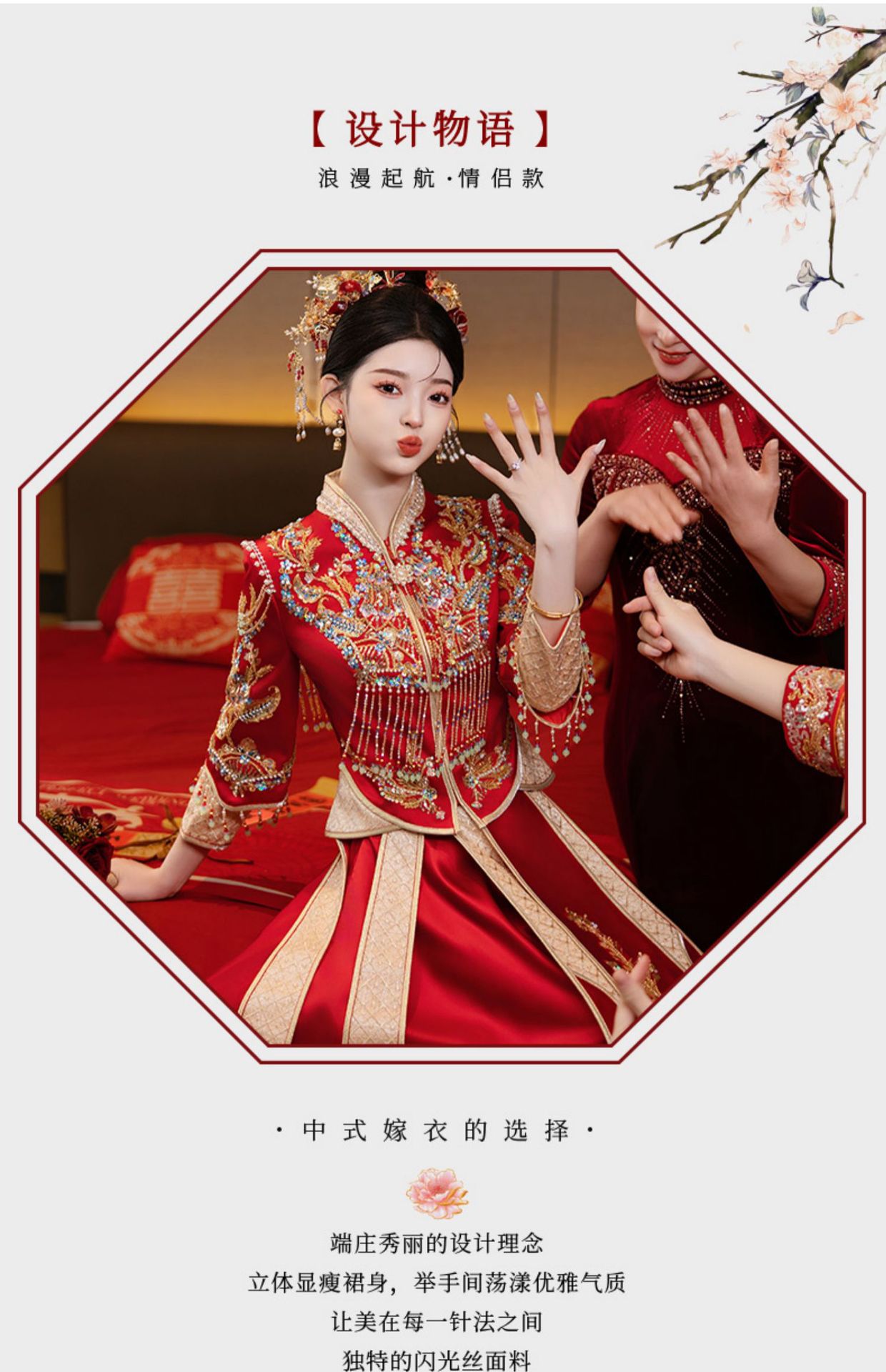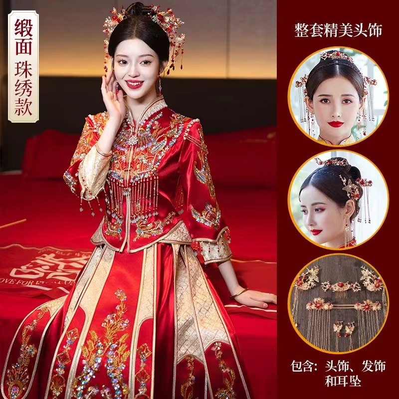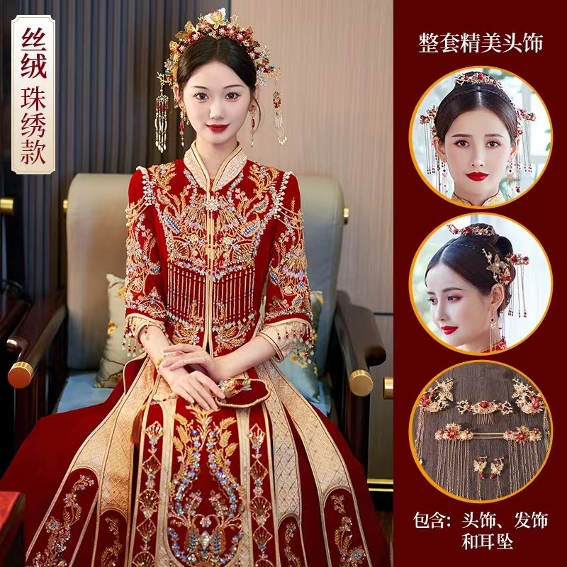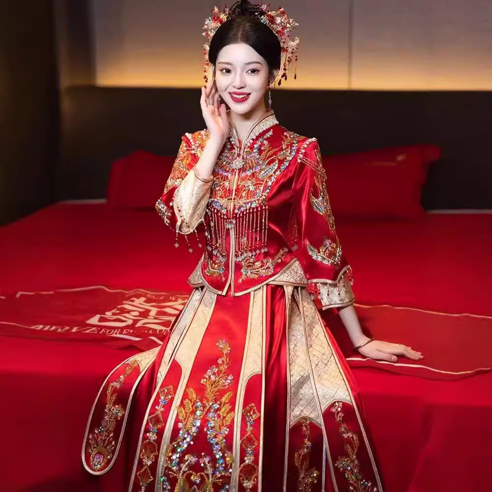 Сю Хэ костюм невесты 2024 новый роскошный тяжелый красный свадебный костюм