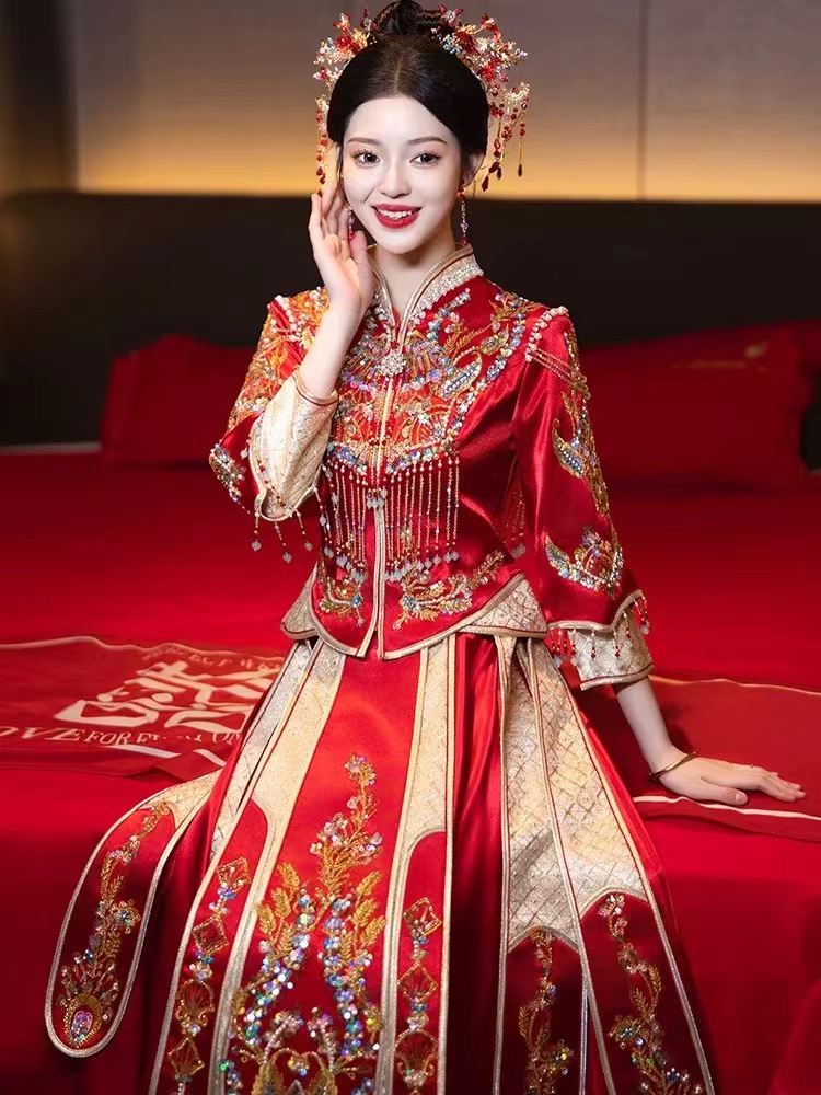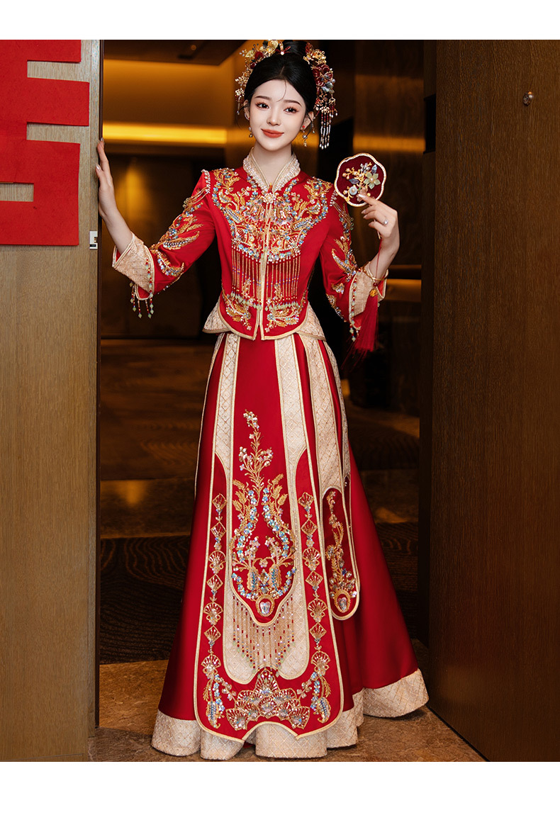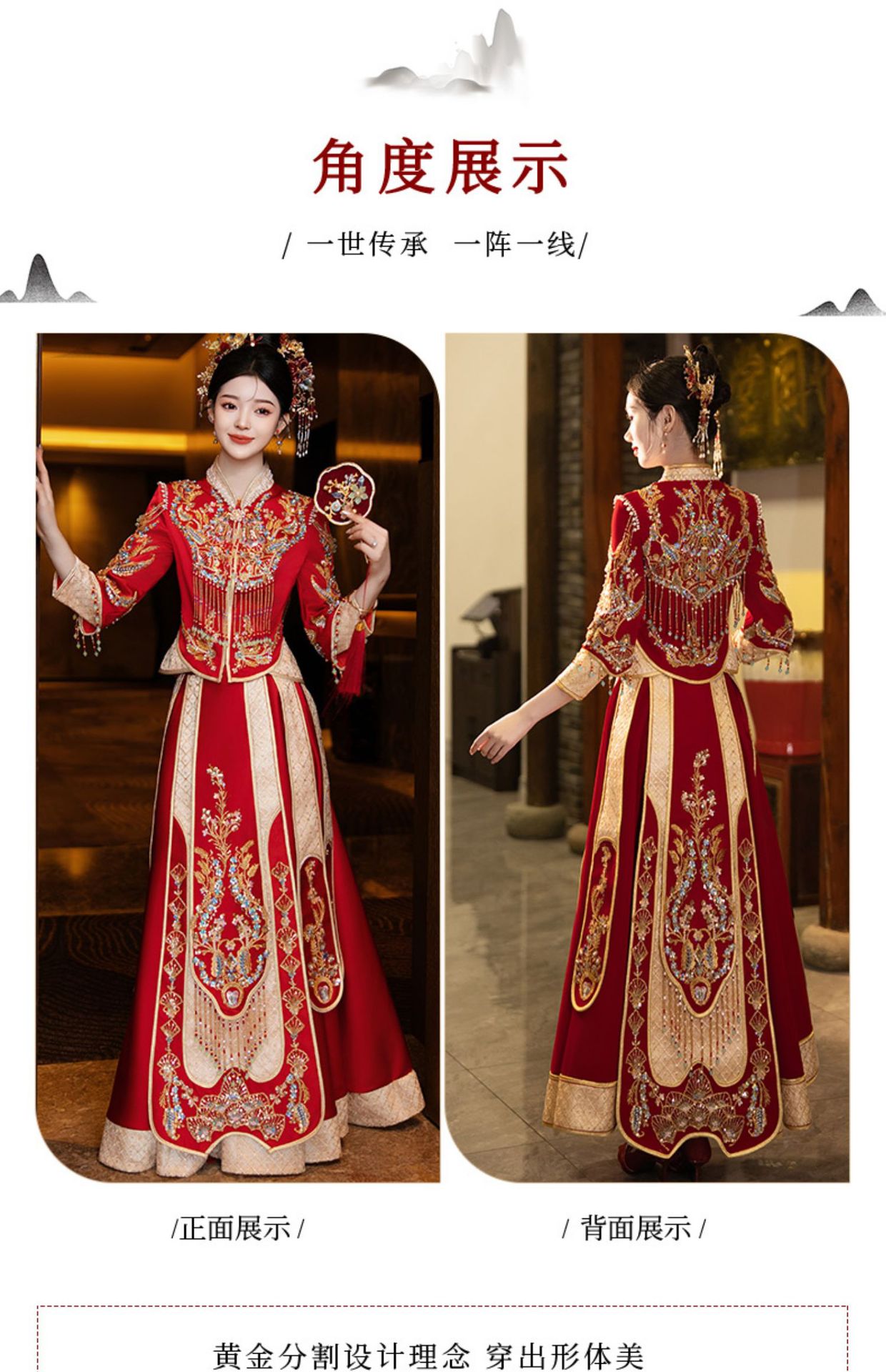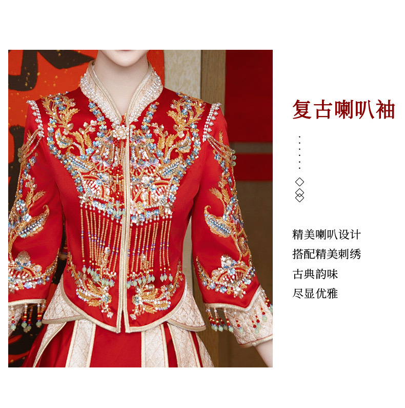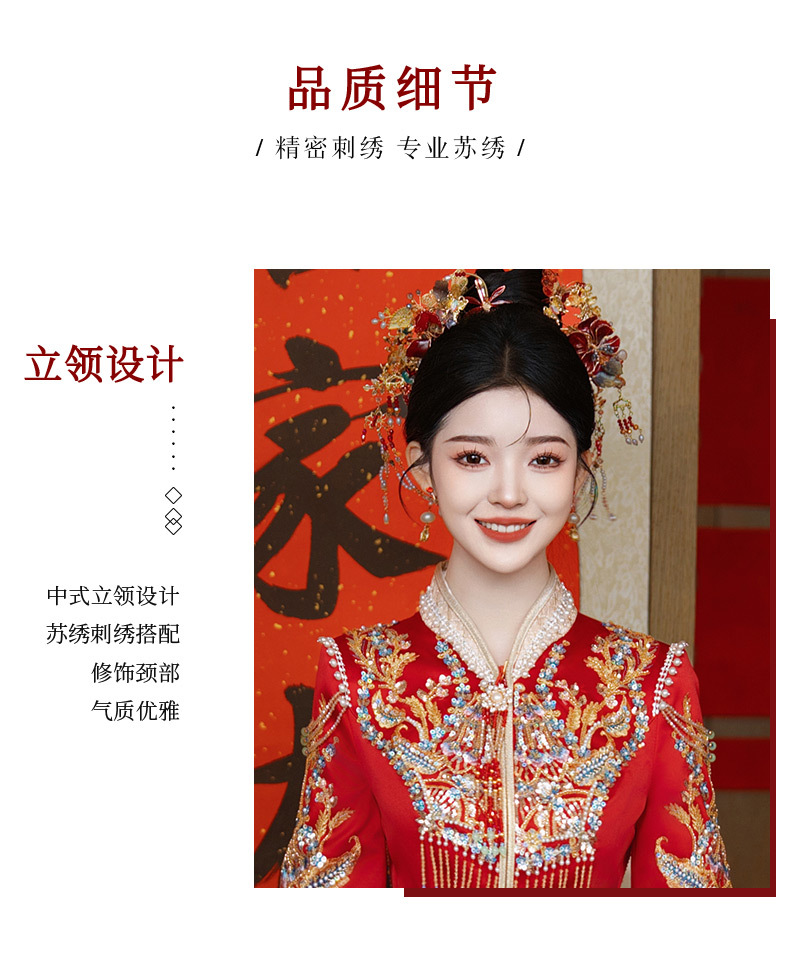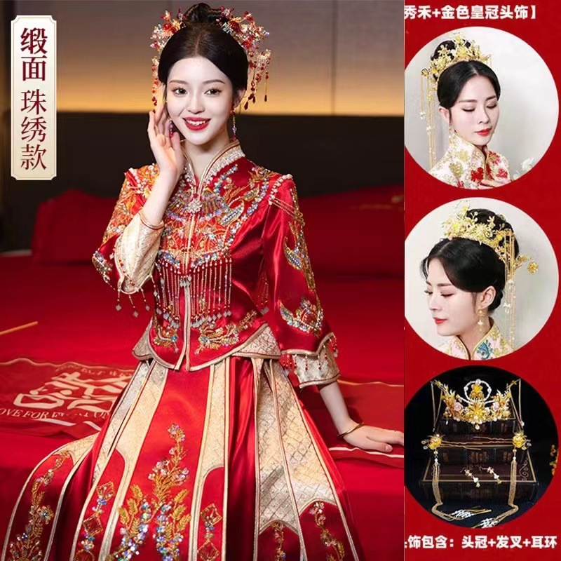 Сю Хэ костюм невесты 2024 новый роскошный тяжелый красный свадебный костюм