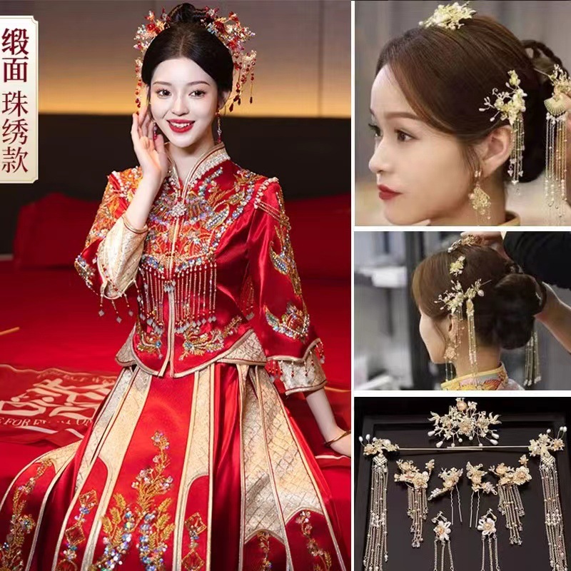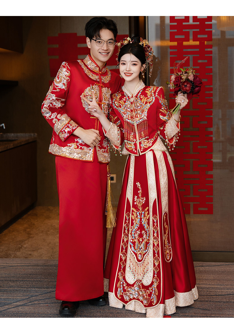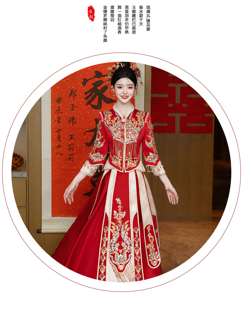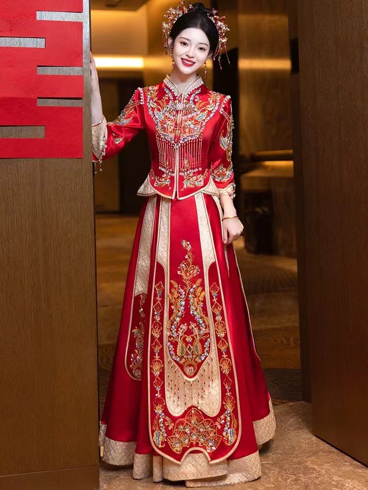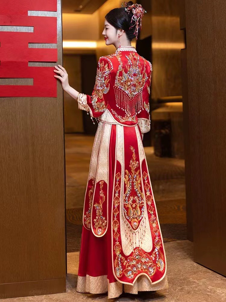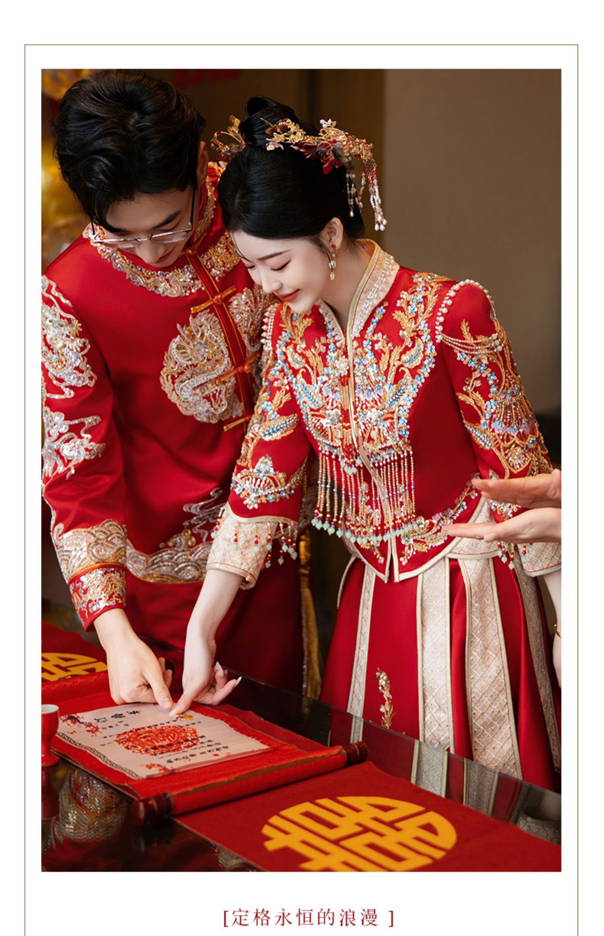 Сю Хэ костюм невесты 2024 новый роскошный тяжелый красный свадебный костюм
