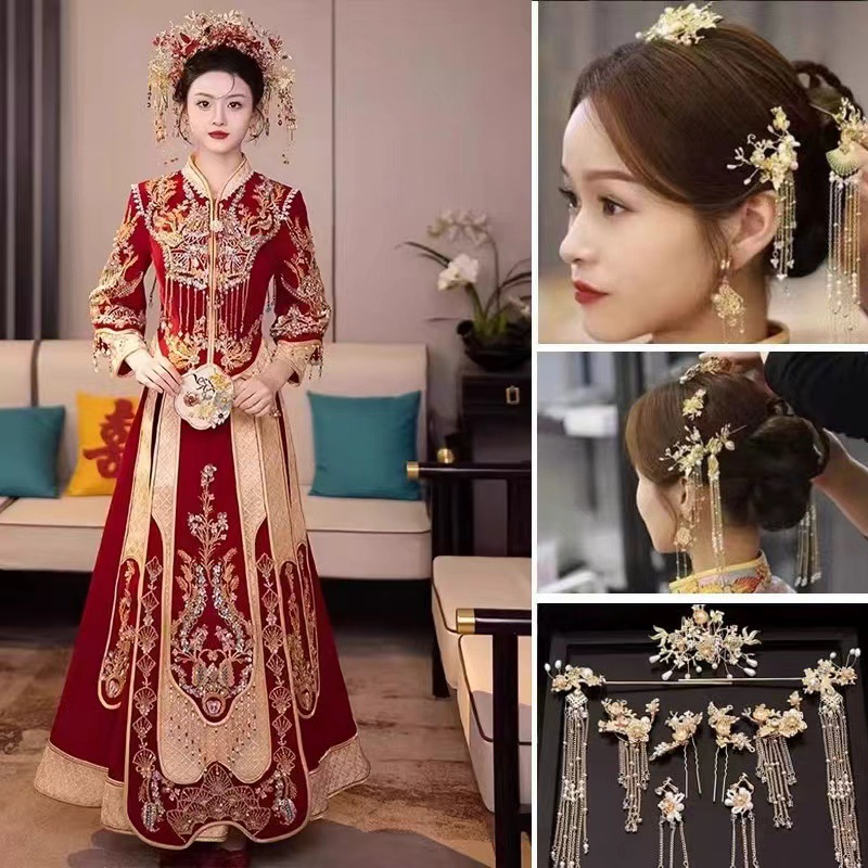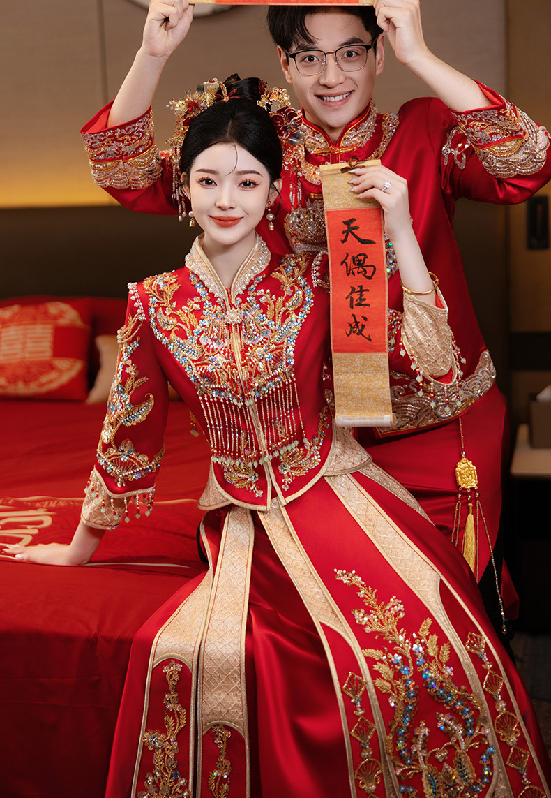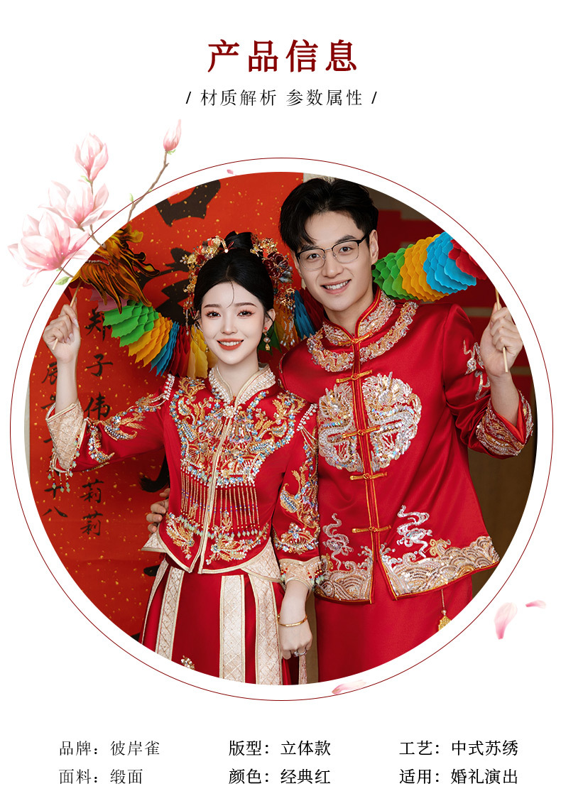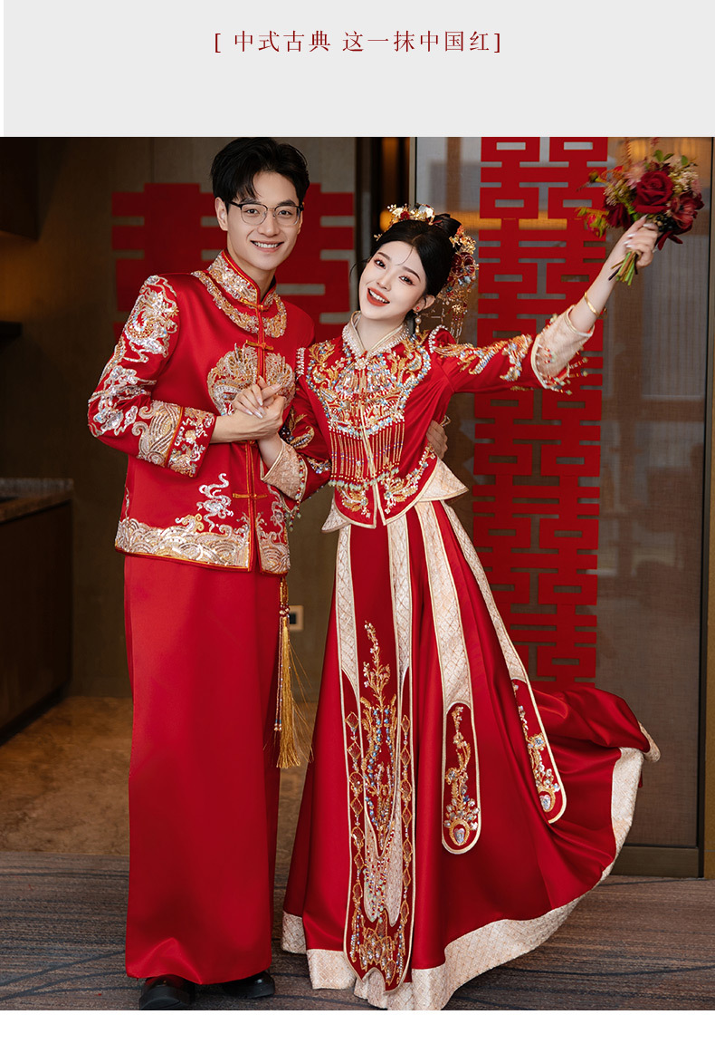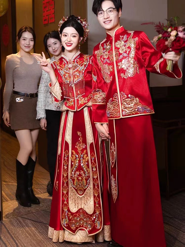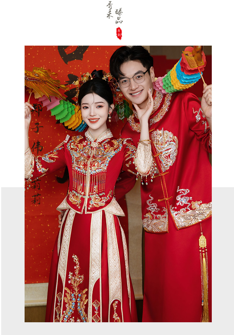 Сю Хэ костюм невесты 2024 новый роскошный тяжелый красный свадебный костюм