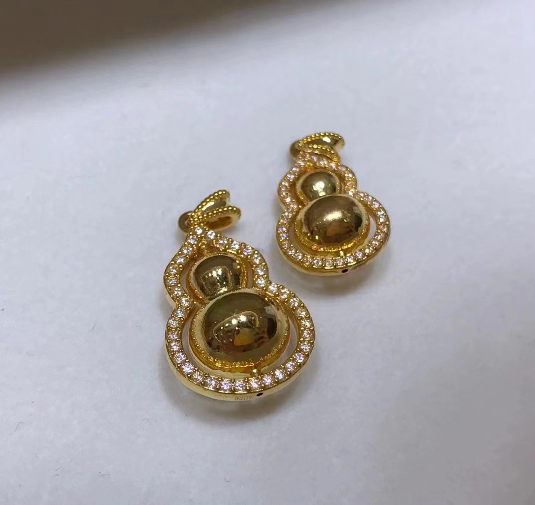 Оптовая продажа: элегантный универсальный унисекс-аксессуар из натурального золота 18 карат (Au750) с бриллиантами в форме тыквы, в стиле «ракушка»