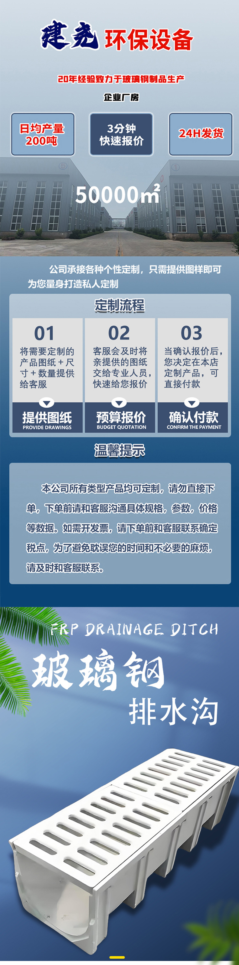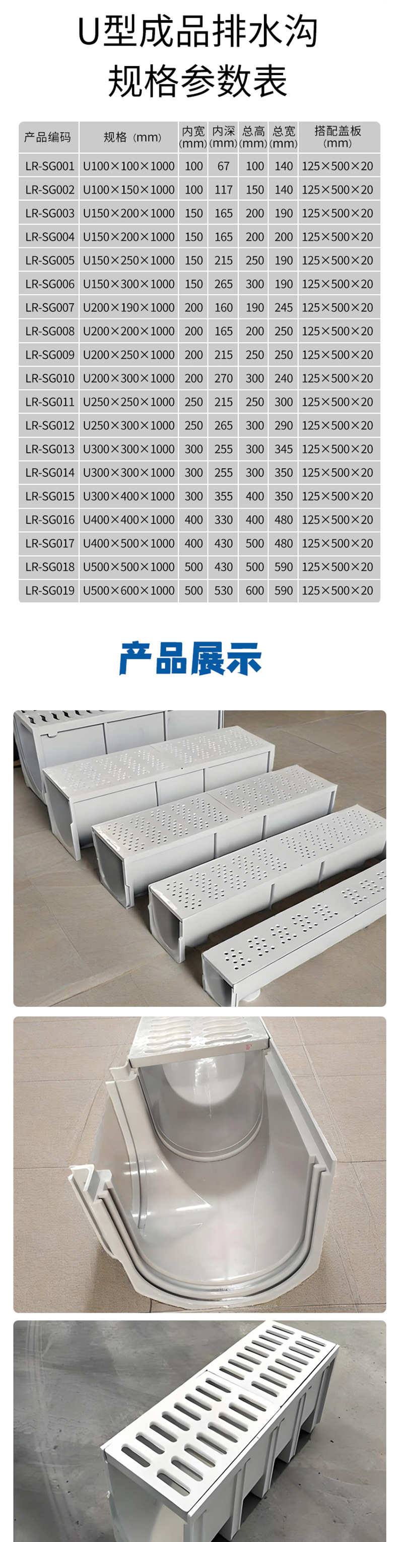 Встроенный U-образный дренажный резервуар из стекловолокна для орошения сельскохозяйственных угодий, линейный дренажный резервуар из смолы, дренажный кювет из стекловолокна под давлением