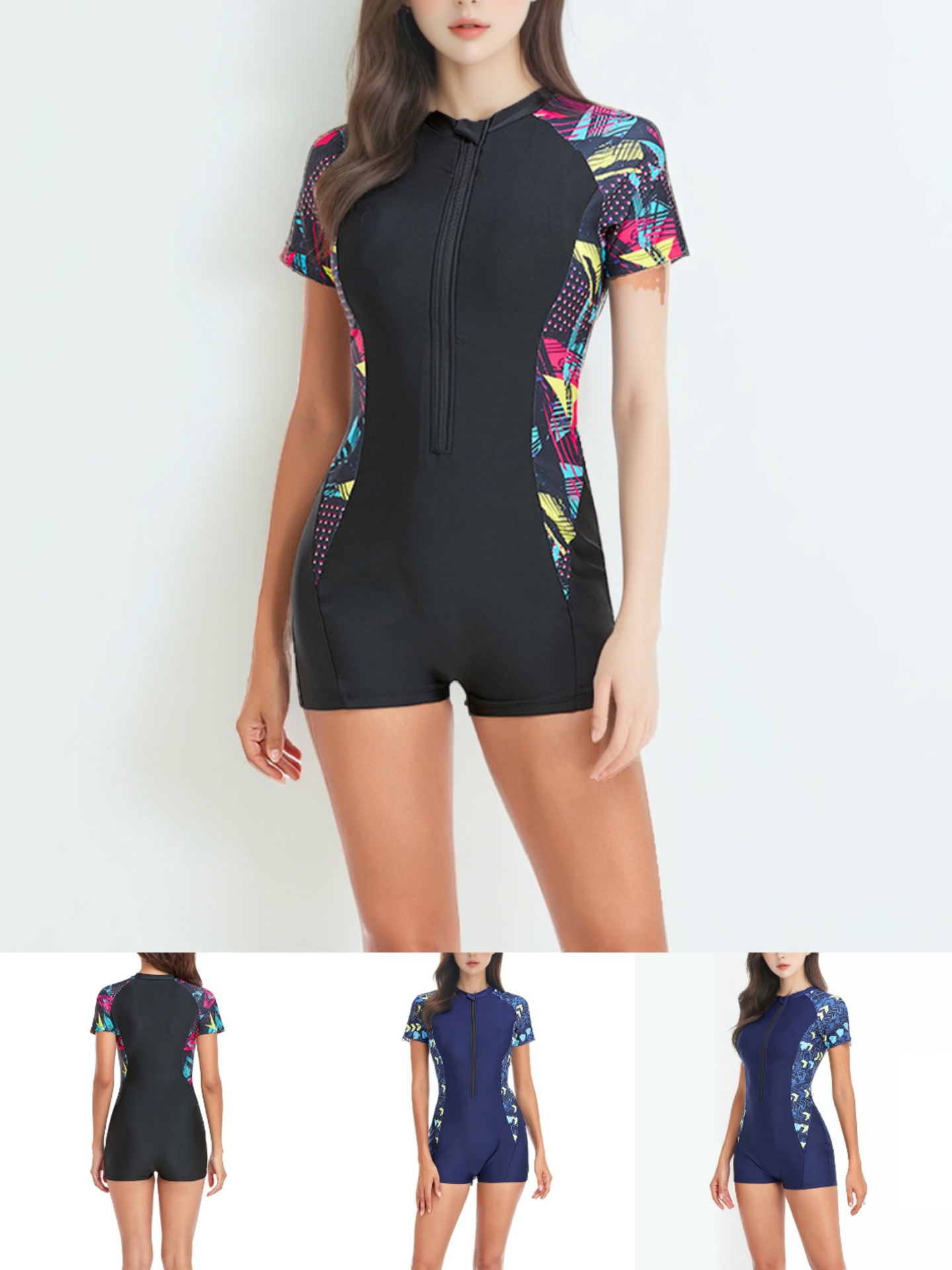 Цельный купальник в европейском и американском стиле на молнии, женское конкурентоспособное бикини с цветным принтом, бикини для экспорта и отпуска Amazon