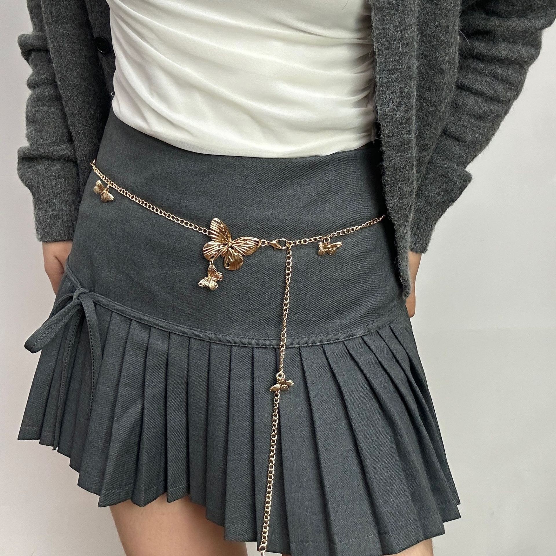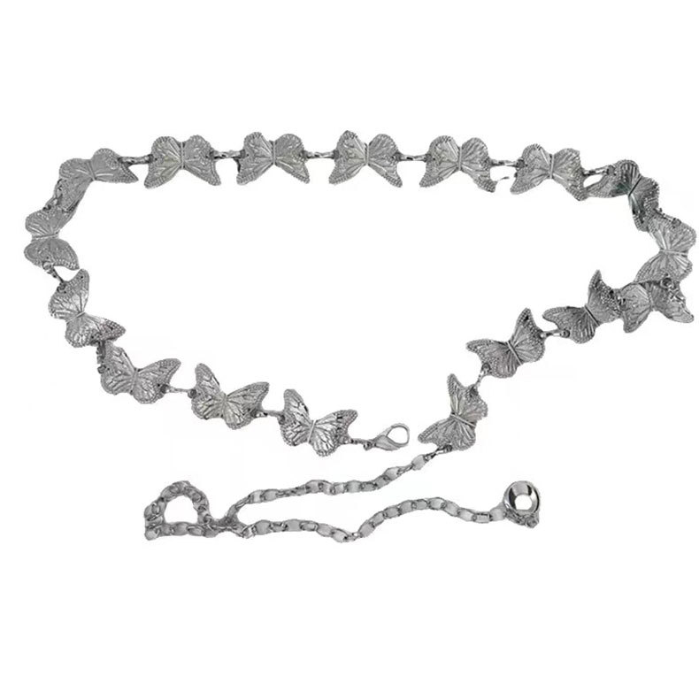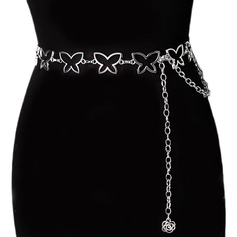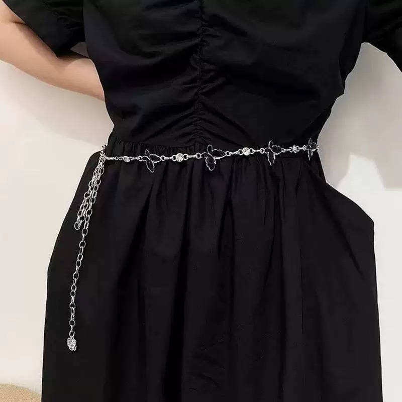 Металлическая поясная цепочка-бабочка для женщин, утягивающий нишевый дизайнерский ремень для платьев и брюк, универсальный декоративный ремень для женщин.