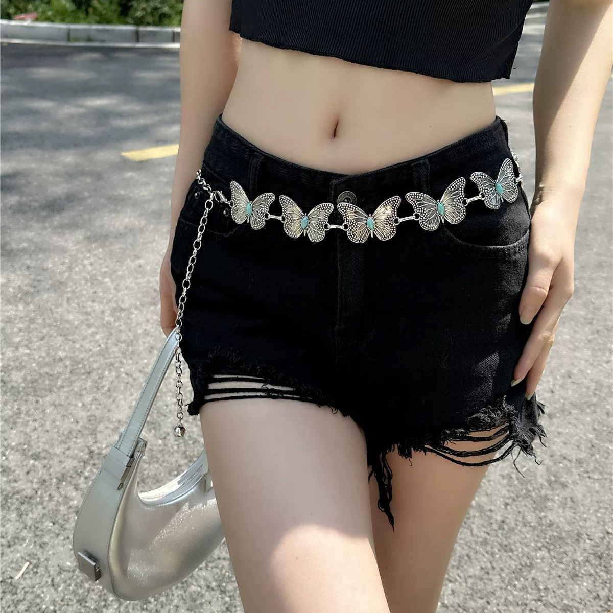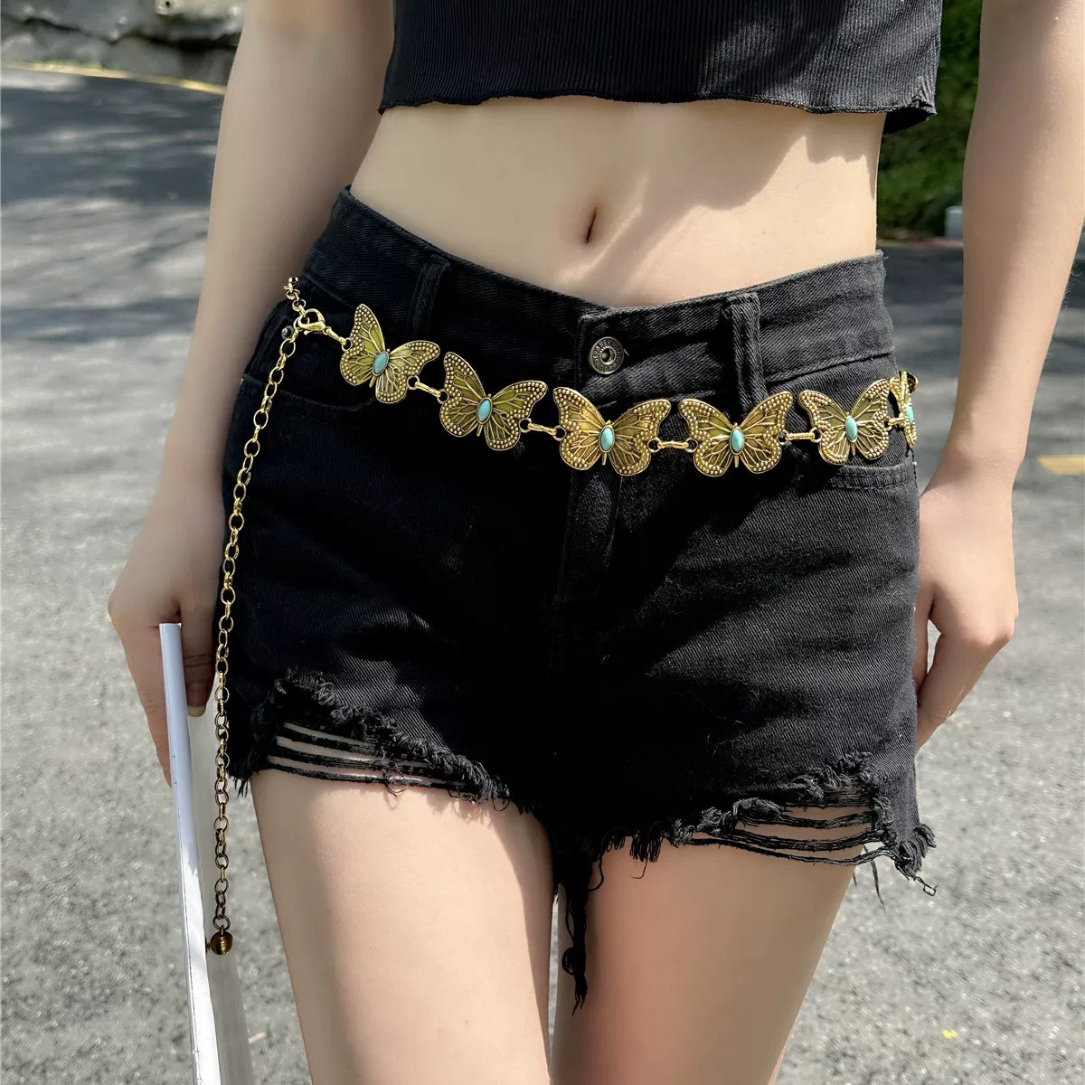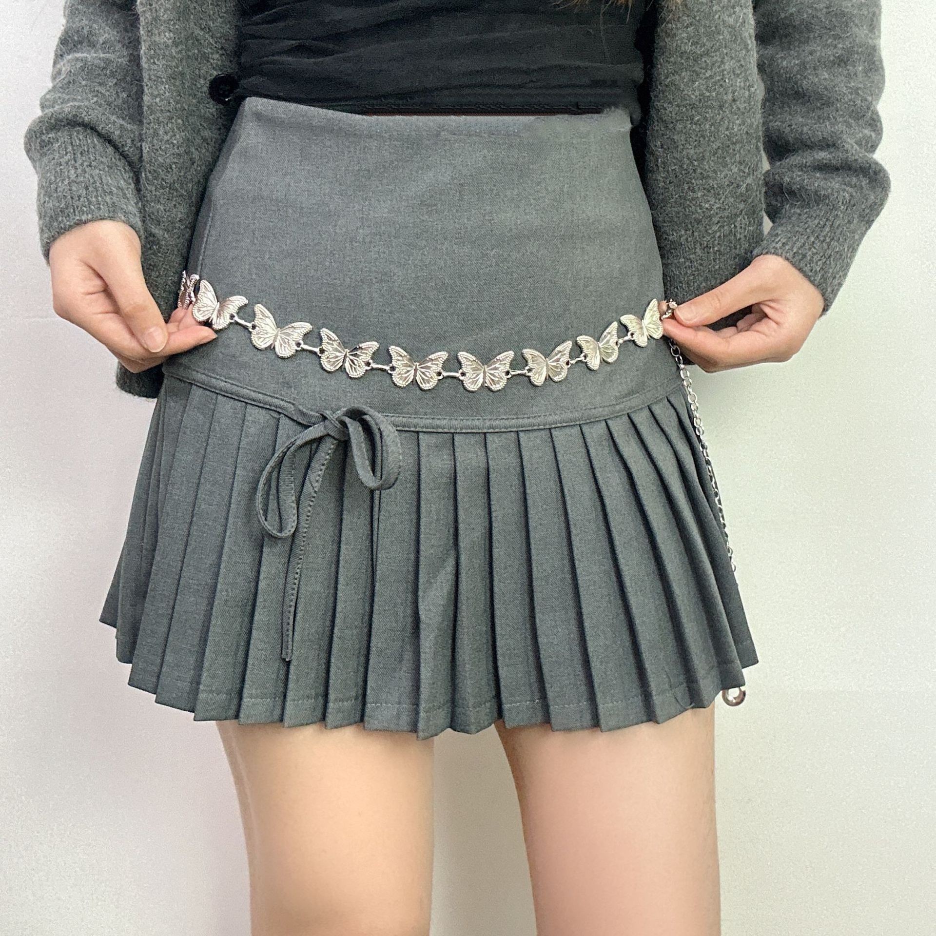 Металлическая поясная цепочка-бабочка для женщин, утягивающий нишевый дизайнерский ремень для платьев и брюк, универсальный декоративный ремень для женщин.