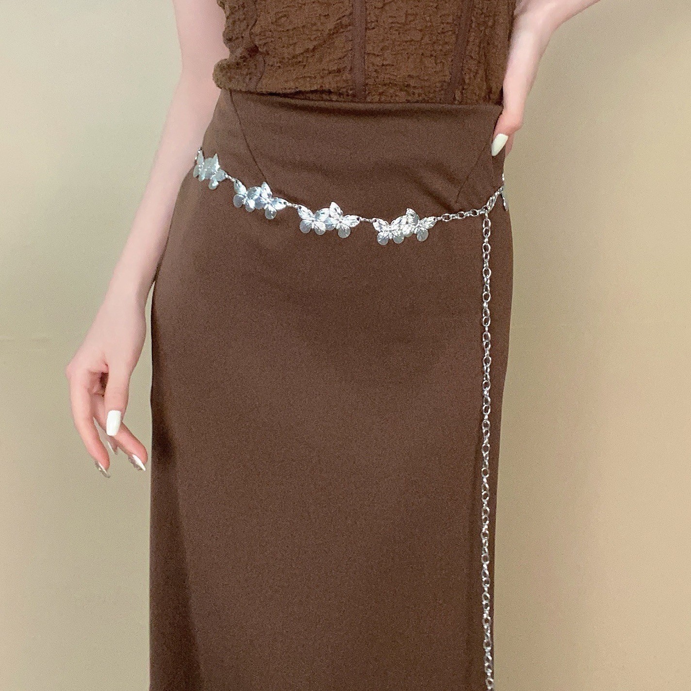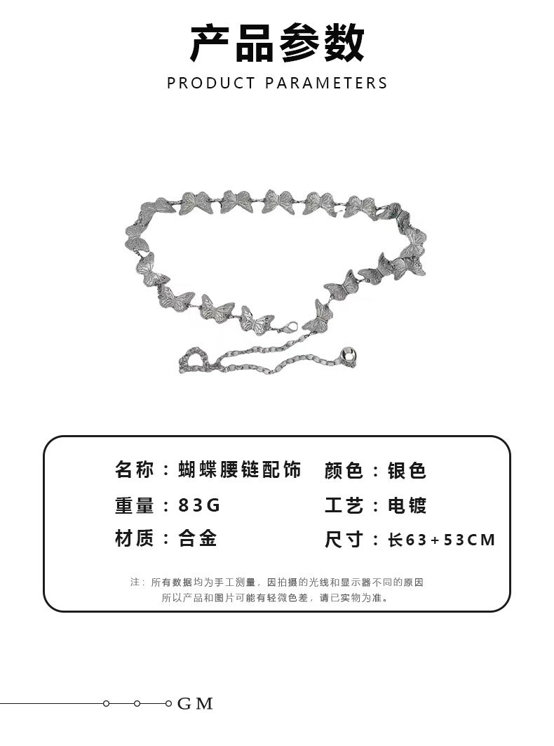 Аксессуары для поясной цепочки-бабочки-K0110; Цепочка на талию-бабочка-K0107; Цепочка на талию в стиле ретро K0111; Поясная цепочка «Серебряная луна» K0154; Цепочка на талию с жемчужной кисточкой K0120; Наборная поясная цепочка с жемчугом K0121; Цепочка на талию с жемчужным цветком K0121B; Серебряная металлическая поясная цепочка-бабочка K0124A; Золотая металлическая цепочка на талию-бабочка K0124B; Золотое кольцо на пояс K0125A; Серебряное кольцо на пояс K0125B; Жемчужная цепочка на талию K0128; Поясная цепочка с жемчужной бабочкой K0134; Цепочка на талию со звездами K0139; Серебряная цепочка на пояс K0140A; Золотая цепочка на пояс K0140B; Серебряная поясная цепочка-бабочка K0116A; Золотая поясная цепочка-бабочка K0116B; Серебряная поясная цепочка Love K0117A; Золотая поясная цепочка Love K0117B; Цепочка на талию с жемчугом специальной формы K0147; Цепочка на пояс Moon K0154; Цепочка на пояс в этническом стиле K0174; Простая поясная цепочка-бабочка K0185A; Поясная цепочка с полой бабочкой K0185B; Серебряная цепочка на пояс в виде ракушки морской звезды K0187A; Золотая поясная цепочка в виде ракушки морской звезды K0187B; Золотая поясная цепочка большой любви K0188A; Серебряная поясная цепочка Big Love K0188B; Серебряная геометрическая поясная цепочка K0204A; Золотая геометрическая цепочка на талию K0204B; Поясная цепочка с серебряной пряжкой K0200A; Поясная цепочка с золотой пряжкой K0200B; Серебряная поясная цепочка-бабочка-K0198B; Цепочка на талию с металлическим кольцом K0223A; Цепочка на талию со звездой K0237; Пляжная цепочка на пояс в виде морской звезды K0213A; Цепочка на талию с цветком розы K0258; Цепочка на талию с цветочным узором K0219; Плетеная поясная цепочка в этническом стиле K0261
