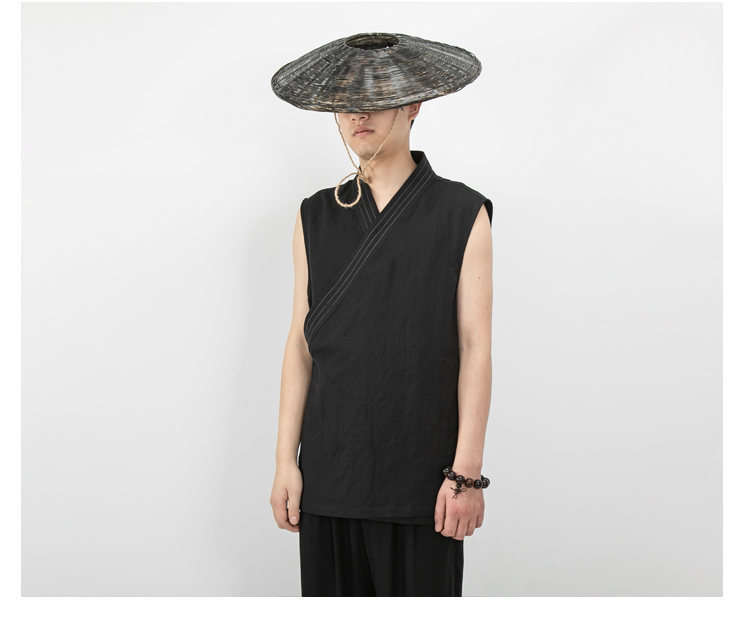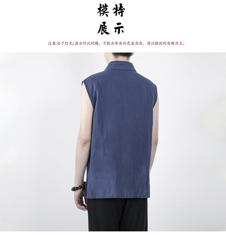 Летняя одежда в китайском стиле мужская хлопковая и льняная мужская куртка без рукавов Hanfu T008070