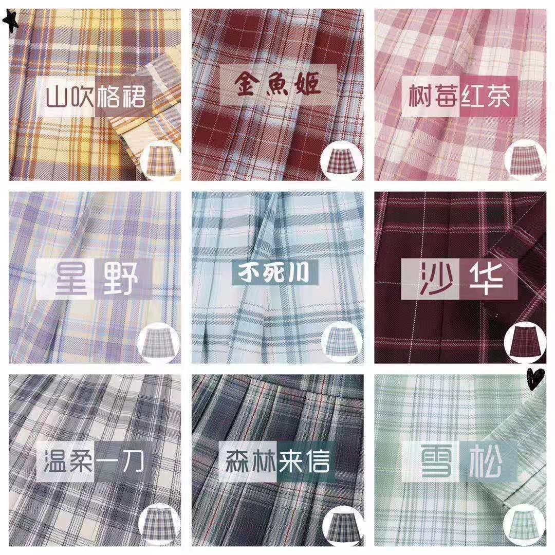 Xiaomei (отдельная клетчатая юбка); Перец чили (отдельная клетчатая юбка); Ми Хонг (отдельная клетчатая юбка); Нежный нож (отдельная юбка); Принцесса Золотая рыбка (только юбка); Бессмертная река (только юбка); Фиолетовый дым (отдельная юбка); Торт Таро (отдельная юбка); Кедр (только юбка); Хошино (только юбка); Малиновый черный чай (отдельная юбка); Юбка в клетку Ямабуки (отдельная юбка); Лихай (только юбка); Письмо из глубокого леса (отдельная юбка); Extreme night (юбка в один клетку); Виноградная газировка (отдельная юбка); Линцюань (только юбка); Рина Ода (юбка в один клетку); Лимонная морская соль (отдельная юбка); Большой красный (только юбка); Мороженое (отдельная клетчатая юбка); Бай Мин (отдельная клетчатая юбка); Розовый туман моря (отдельная клетчатая юбка); Розовый туман моря (отдельная клетчатая юбка) + галстук-бабочка; Шахуа (юбка в один клетку); Морские водоросли (отдельная клетчатая юбка); Сажа (отдельная клетчатая юбка); Маленький Медвежонок (отдельная клетчатая юбка); Сяочунь (отдельная клетчатая юбка); Угольно-серый (отдельная клетчатая юбка); Девушка киберспорта (юбка в один клетку); Токио Шибари (отдельная клетчатая юбка); Деланси (только юбка); Misty Blue Creek (отдельная клетчатая юбка); Море Такишима (юбка в один клетку); И Окарида (юбка в один клетку); Девушка думает только о клетчатой юбке; Мелкая вещь (отдельная клетчатая юбка); Аромат белого персика (отдельная клетчатая юбка); Тропическая рыба (отдельная клетчатая юбка); Сакурана (юбка в один клетку); Сюань (юбка в один клетку); Газета-доска (отдельная клетчатая юбка); Сяоксинчжун (юбка в один клетку); Подсолнух (только юбка); Кедр (белая рубашка с короткими рукавами + клетчатая юбка + галстук-бабочка); Торт Таро (белая рубашка с короткими рукавами + клетчатая юбка + галстук-бабочка); Хосино (белая рубашка с короткими рукавами + клетчатая юбка + галстук-бабочка); Нежный нож (белая рубашка с короткими рукавами + клетчатая юбка + галстук-бабочка); Малиновый черный чай (белая рубашка с короткими рукавами + клетчатая юбка + галстук-бабочка); Бааах (белая рубашка с короткими рукавами + клетчатая юбка + галстук-бабочка); Ямабуки (белая рубашка с короткими рукавами + клетчатая юбка + галстук-бабочка); Мороженое (белая рубашка с короткими рукавами + клетчатая юбка + галстук-бабочка); Бай Мин (белая рубашка с короткими рукавами + клетчатая юбка + галстук-бабочка); Письмо из глубокого леса (белая рубашка с короткими рукавами + клетчатая юбка + галстук-бабочка); Аш (белая рубашка с короткими рукавами + клетчатая юбка + галстук-бабочка); Бессмертная река (белая рубашка с короткими рукавами + клетчатая юбка + галстук-бабочка); Угольно-серый (белая рубашка с короткими рукавами + клетчатая юбка + галстук-бабочка); Маленький Медвежонок (белая рубашка с короткими рукавами + клетчатая юбка + галстук-бабочка); Лимонная морская соль (белая рубашка с короткими рукавами + клетчатая юбка + галстук-бабочка); Золотая рыбка (белая рубашка с короткими рукавами + клетчатая юбка + галстук-бабочка); Девушка киберспорта (белая рубашка с короткими рукавами + клетчатая юбка + галстук-бабочка); Море Такишима (белая рубашка с короткими рукавами + клетчатая юбка + галстук-бабочка); Девчачьи мысли (белая рубашка с короткими рукавами + клетчатая юбка + галстук-бабочка); И Окарида + галстук-бабочка + белая рубашка с короткими рукавами.