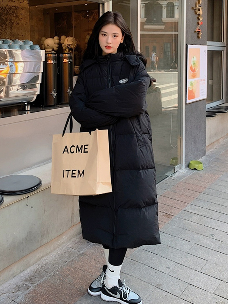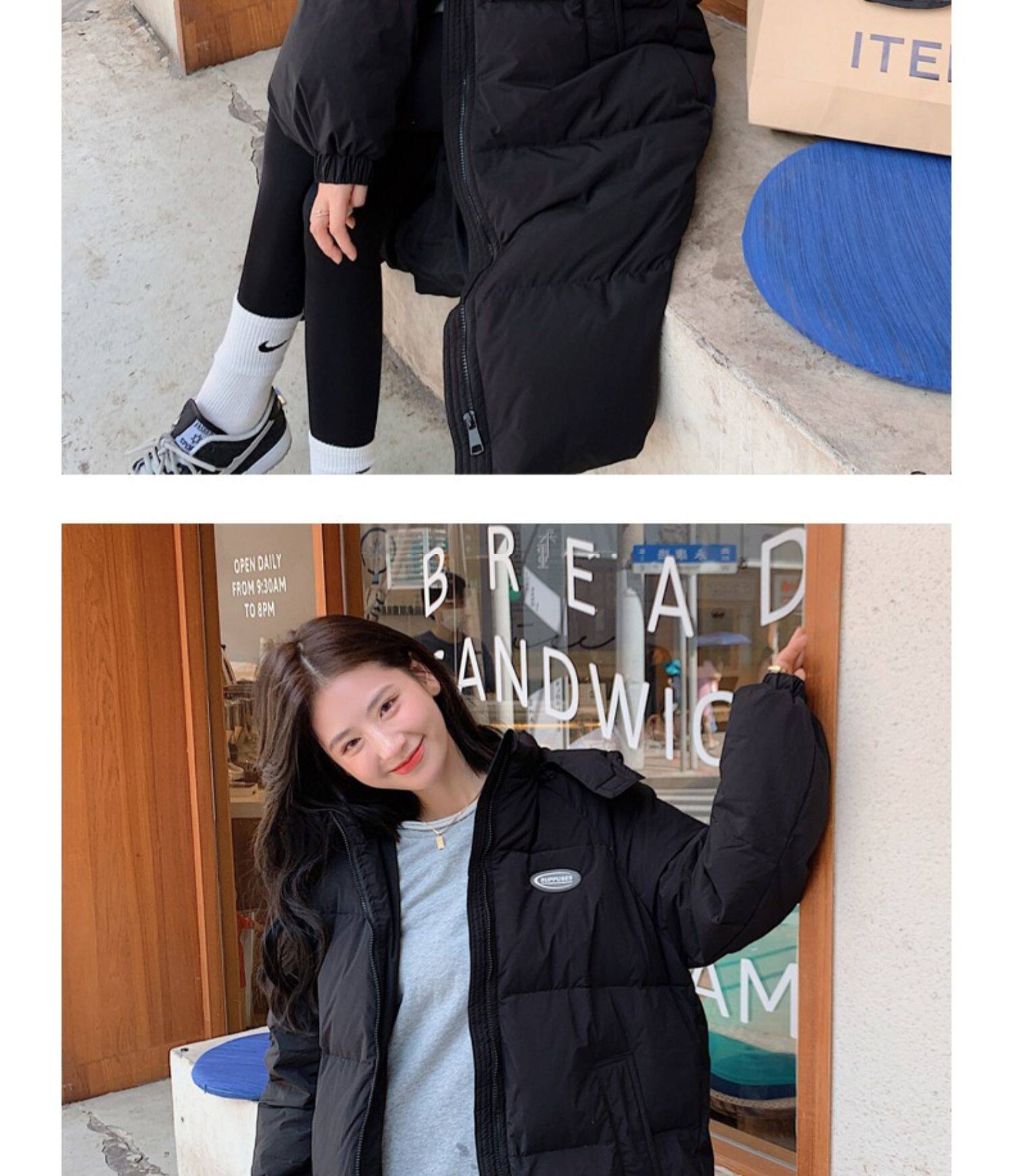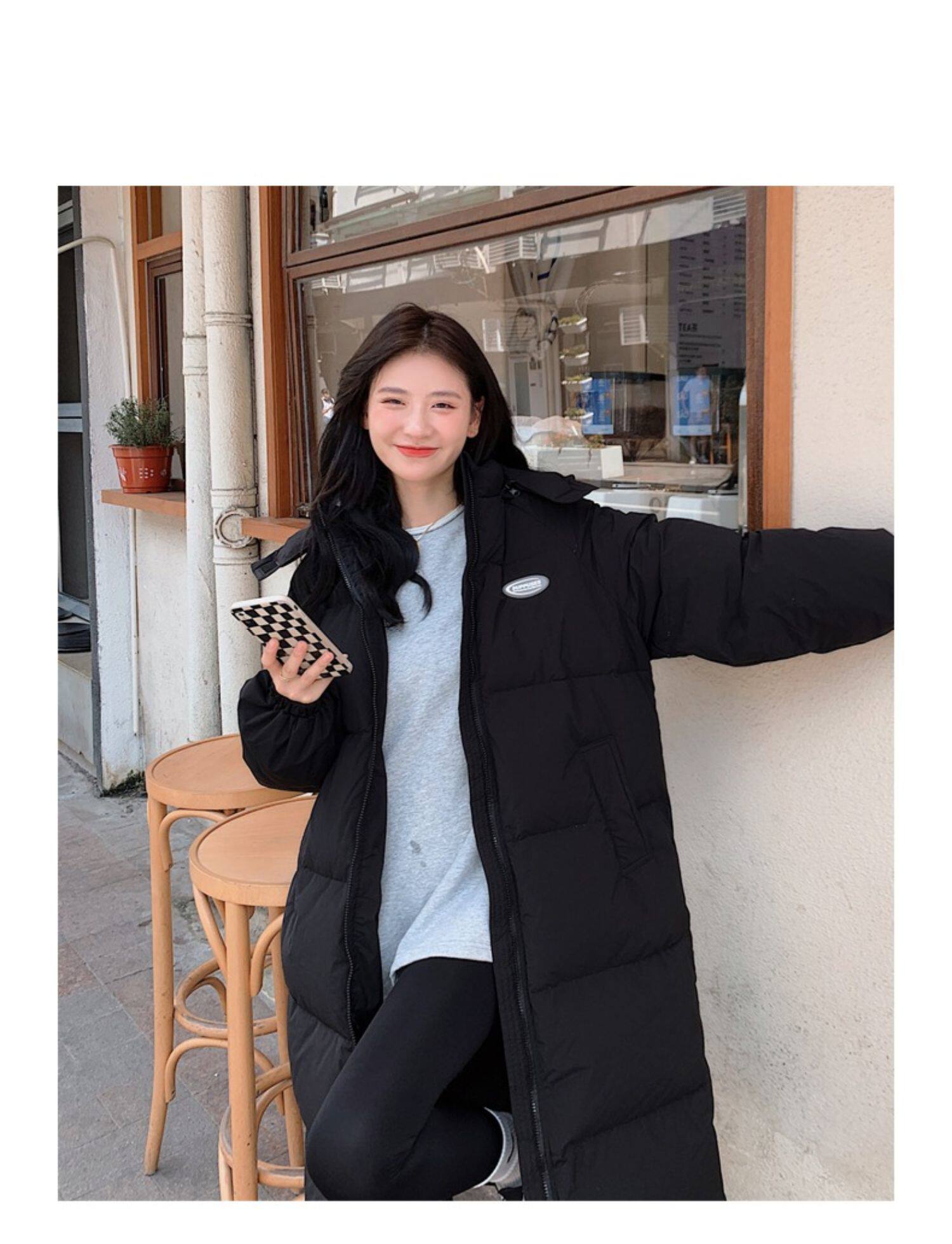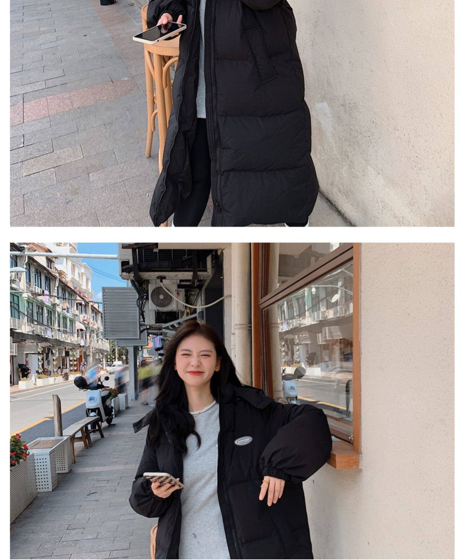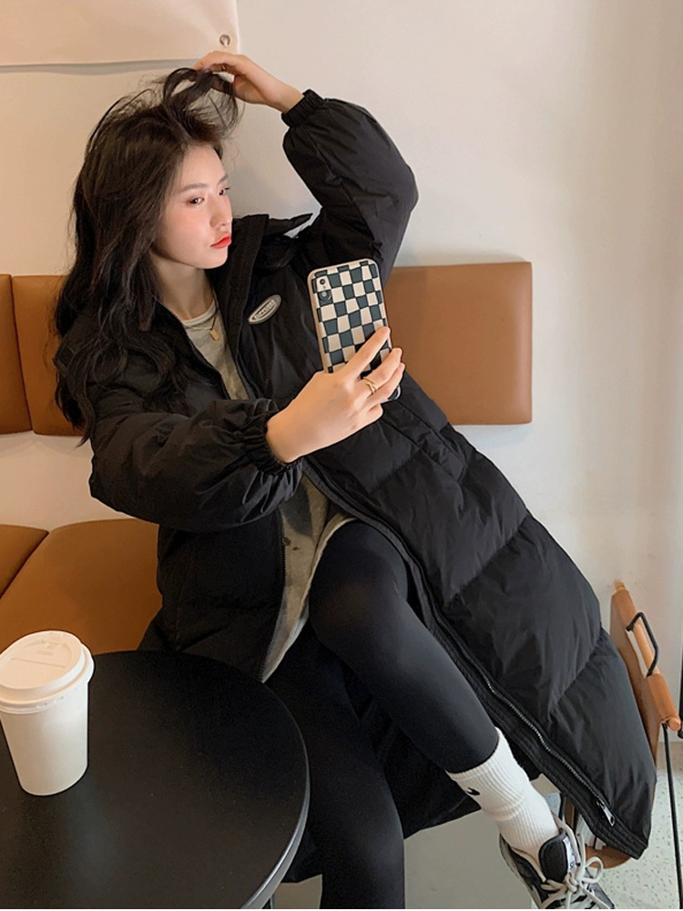 Черная пуховая хлопчатобумажная одежда для женщин среднего и длинного колена новая корейская хлопчатобумажная куртка для женщин свободная толстая хлопчатобумажная одежда зимой 2023 года