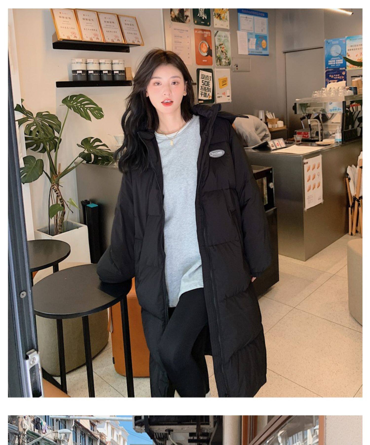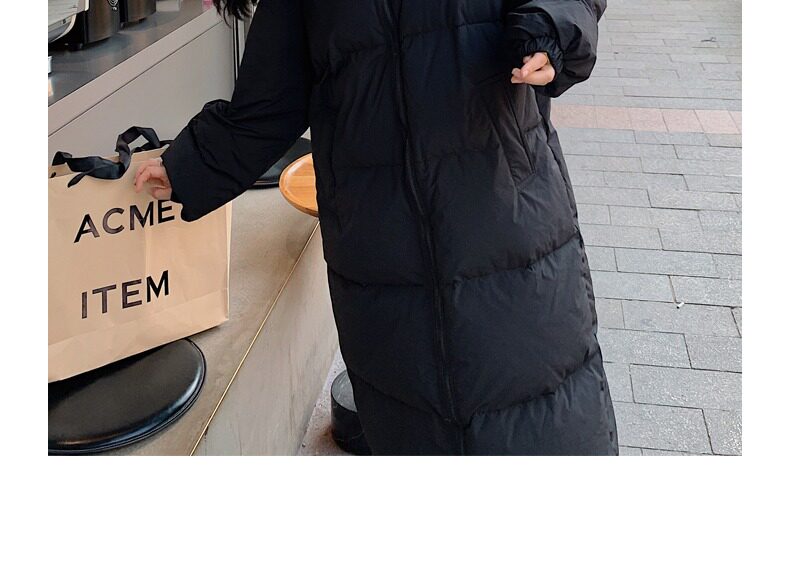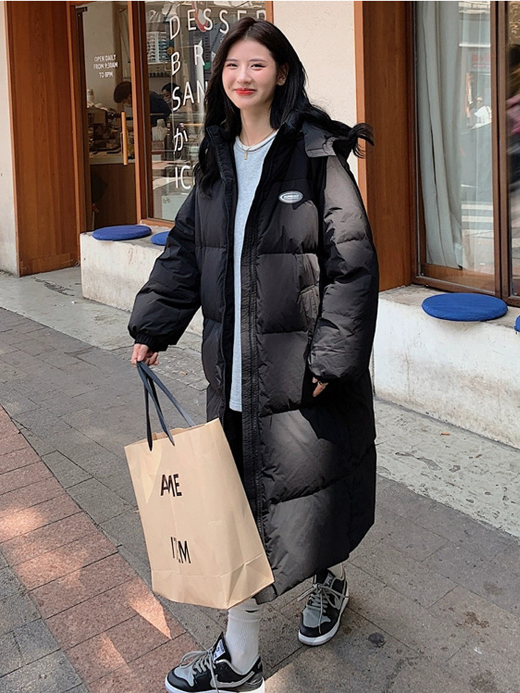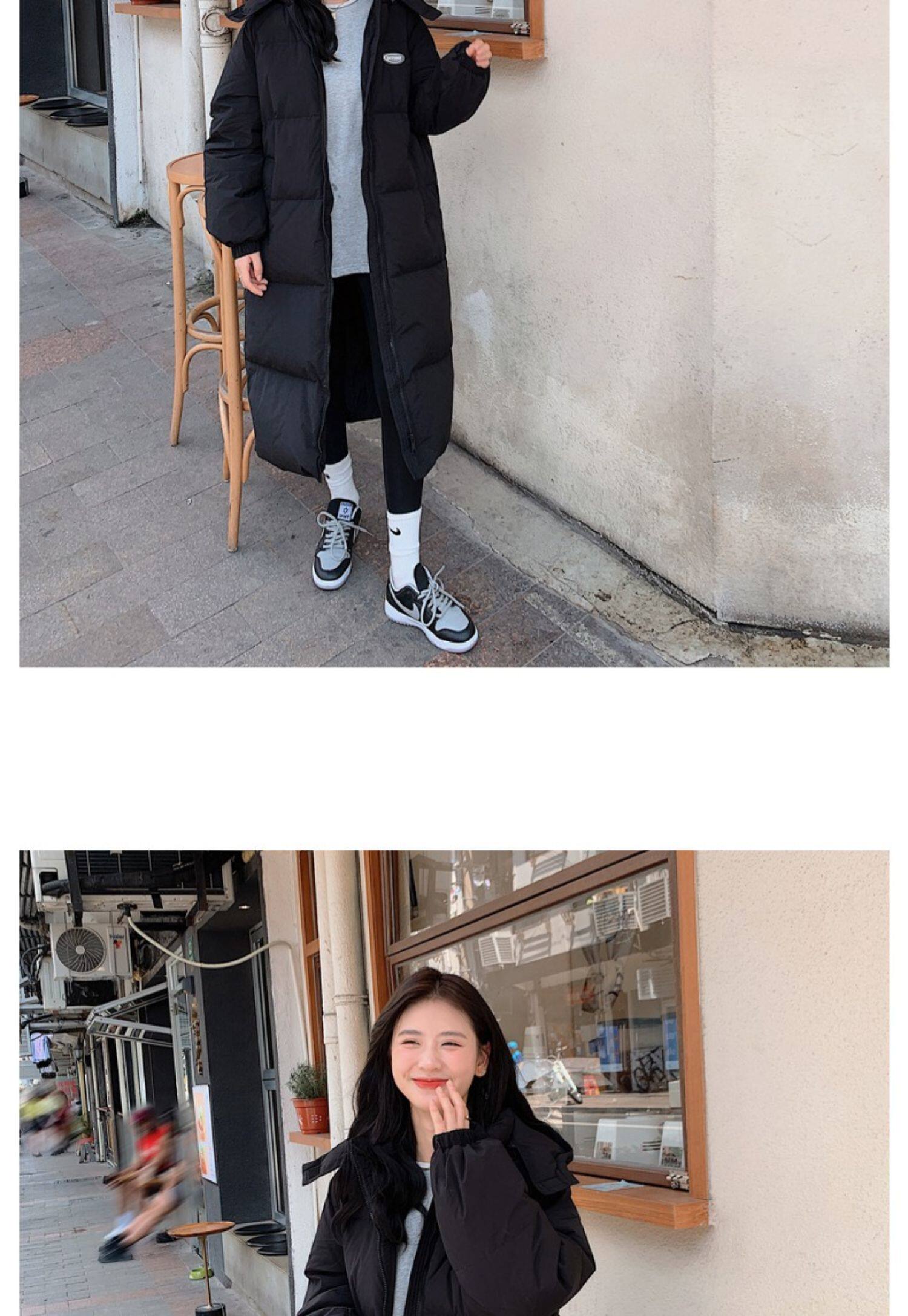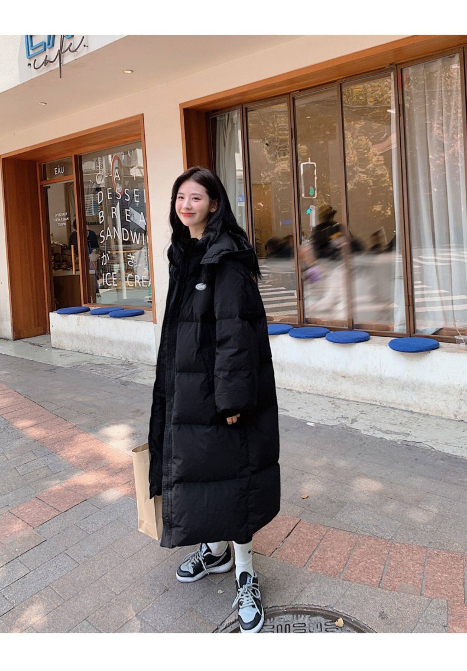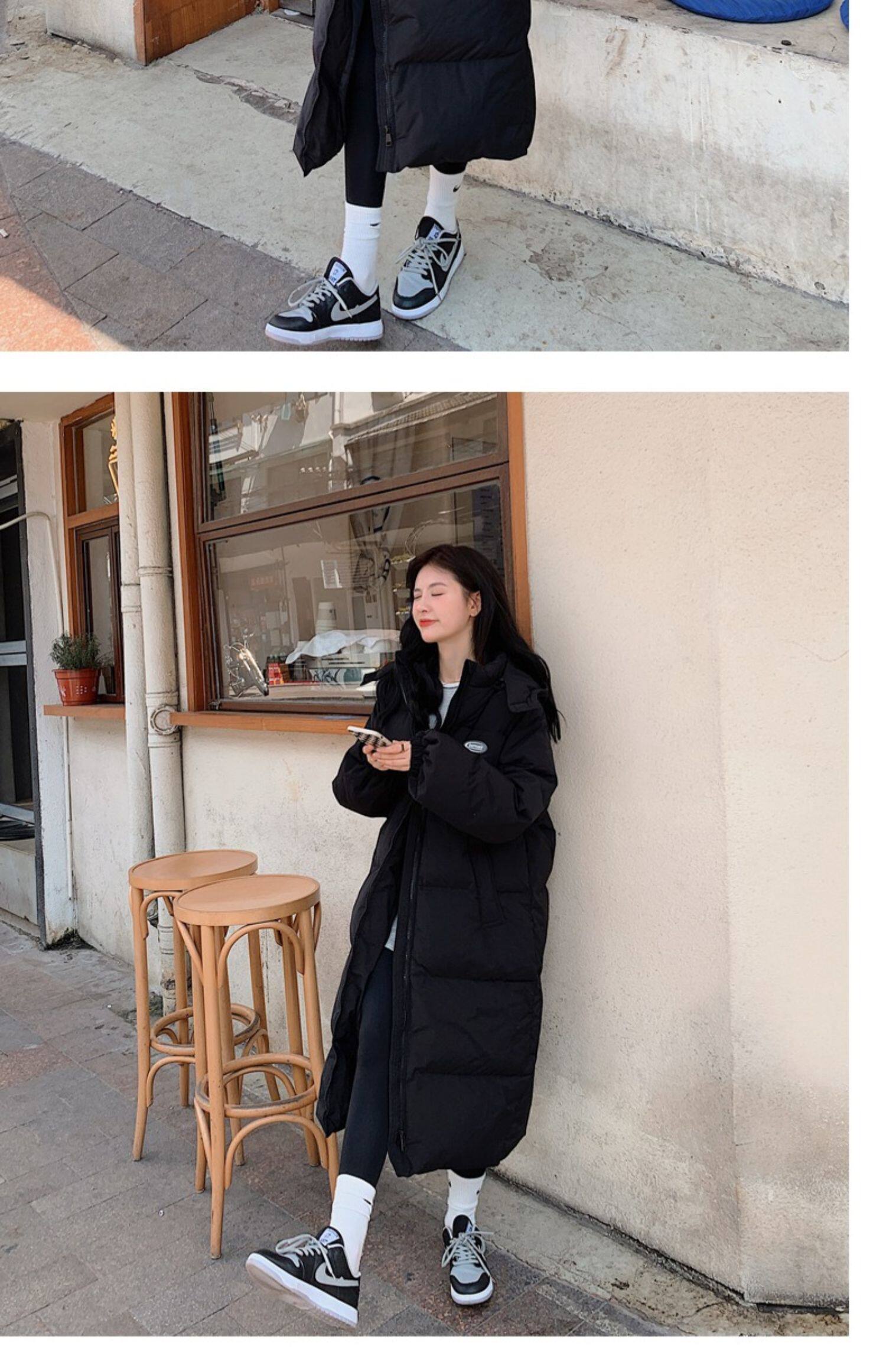 Черная пуховая хлопчатобумажная одежда для женщин среднего и длинного колена новая корейская хлопчатобумажная куртка для женщин свободная толстая хлопчатобумажная одежда зимой 2023 года