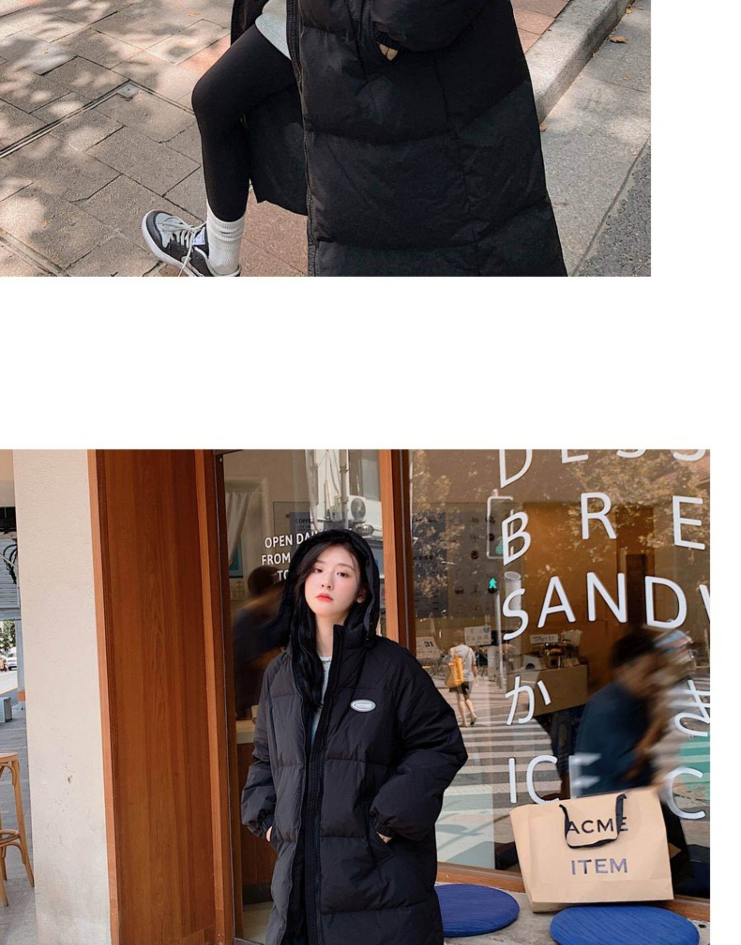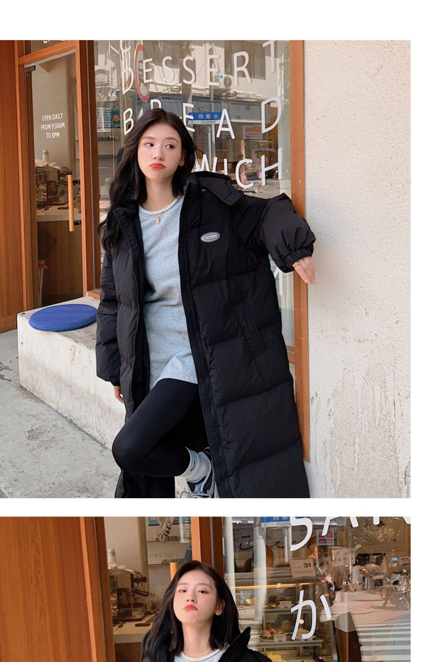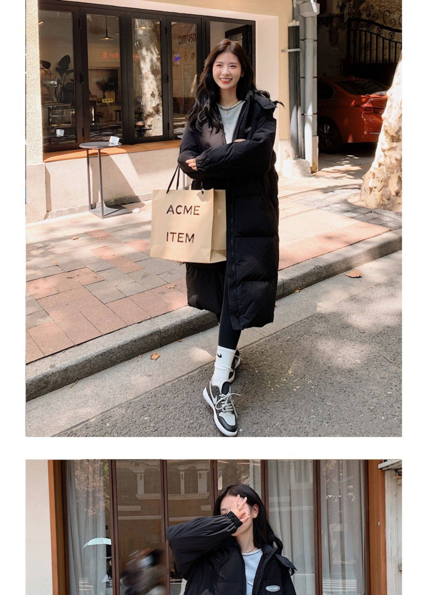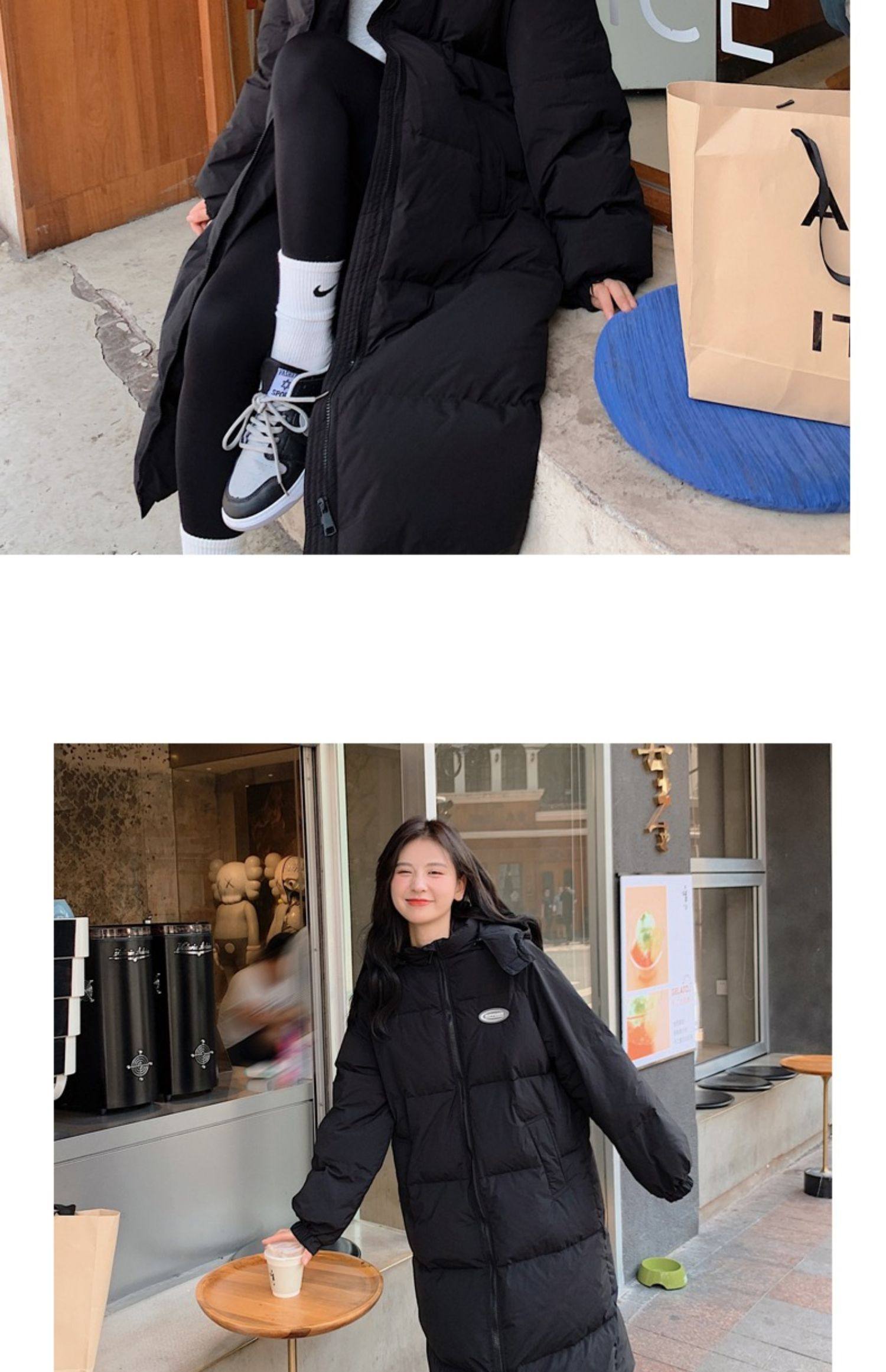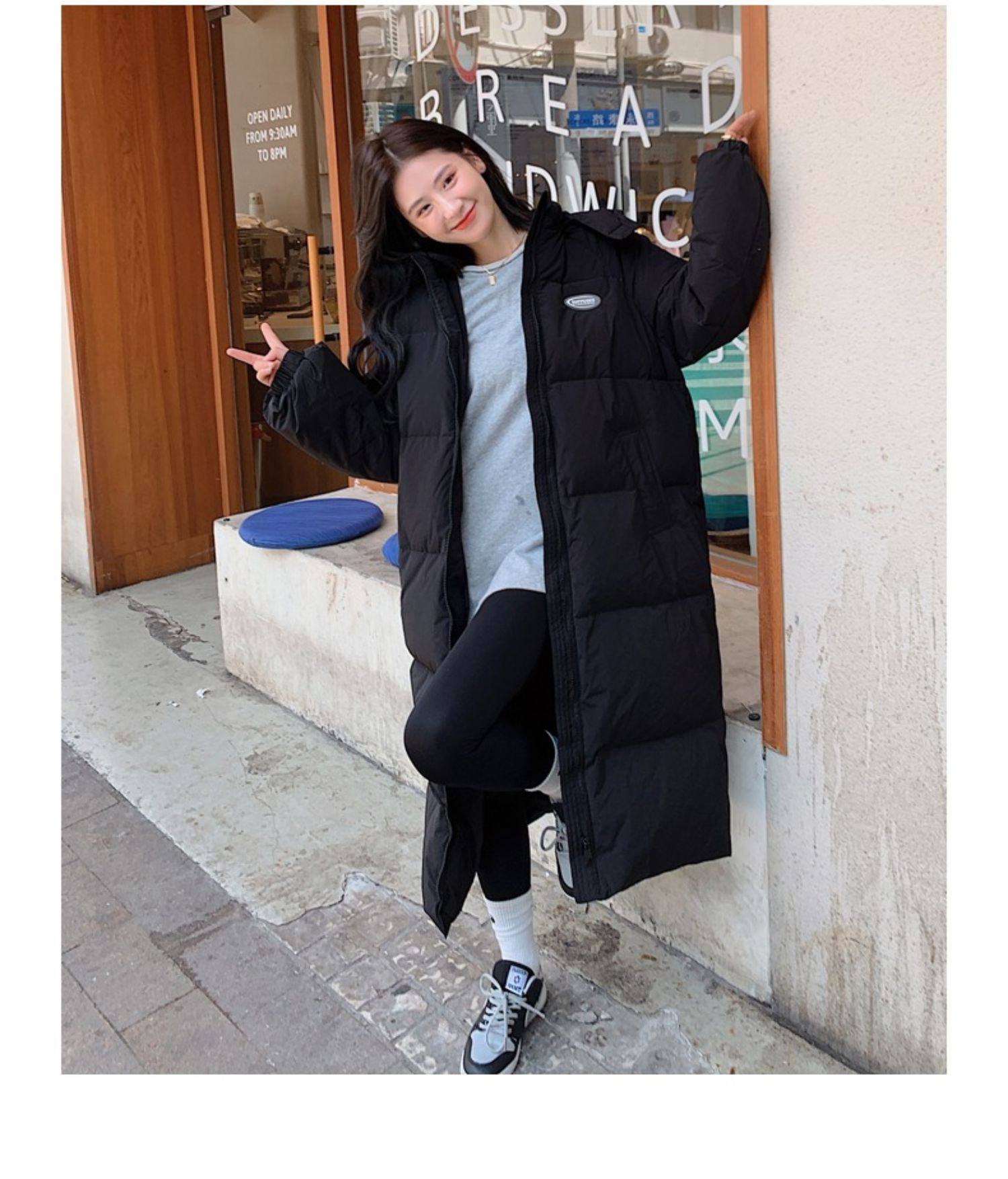 Черная пуховая хлопчатобумажная одежда для женщин среднего и длинного колена новая корейская хлопчатобумажная куртка для женщин свободная толстая хлопчатобумажная одежда зимой 2023 года