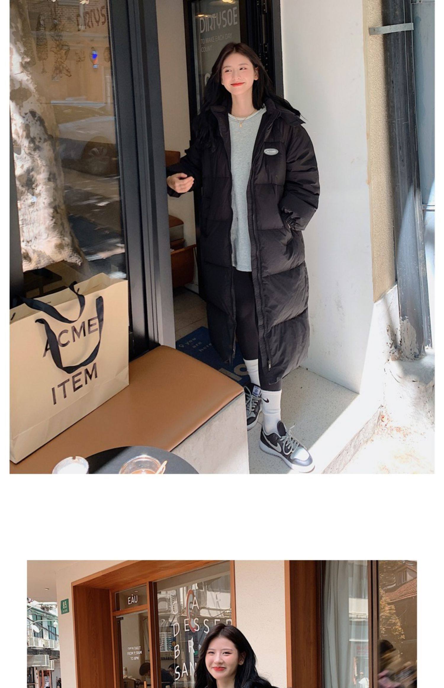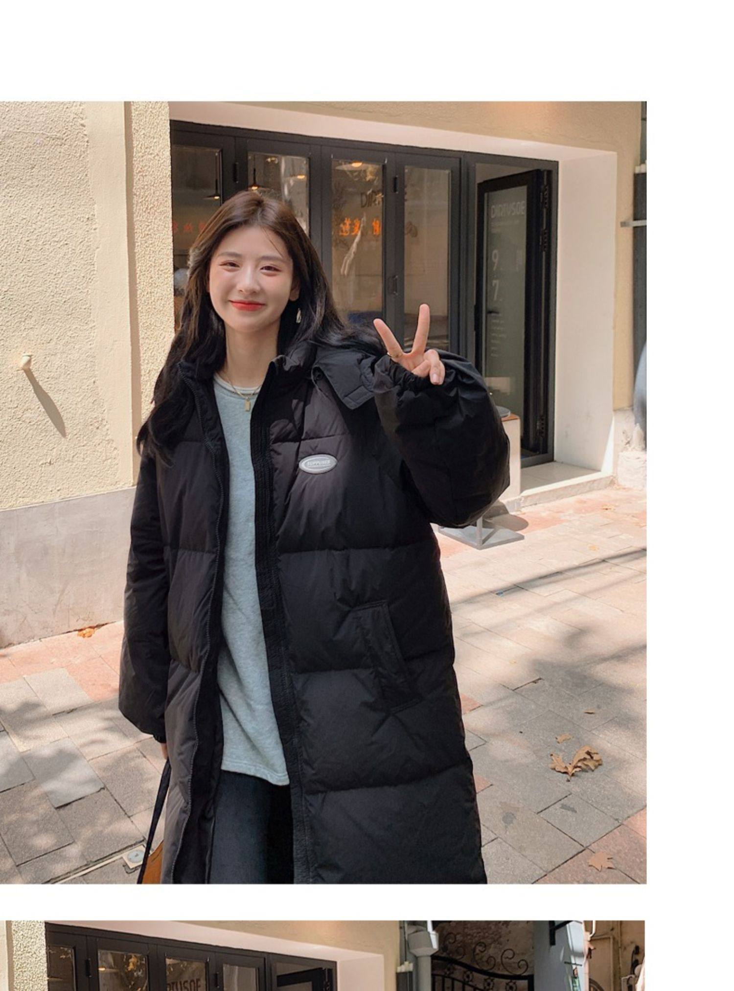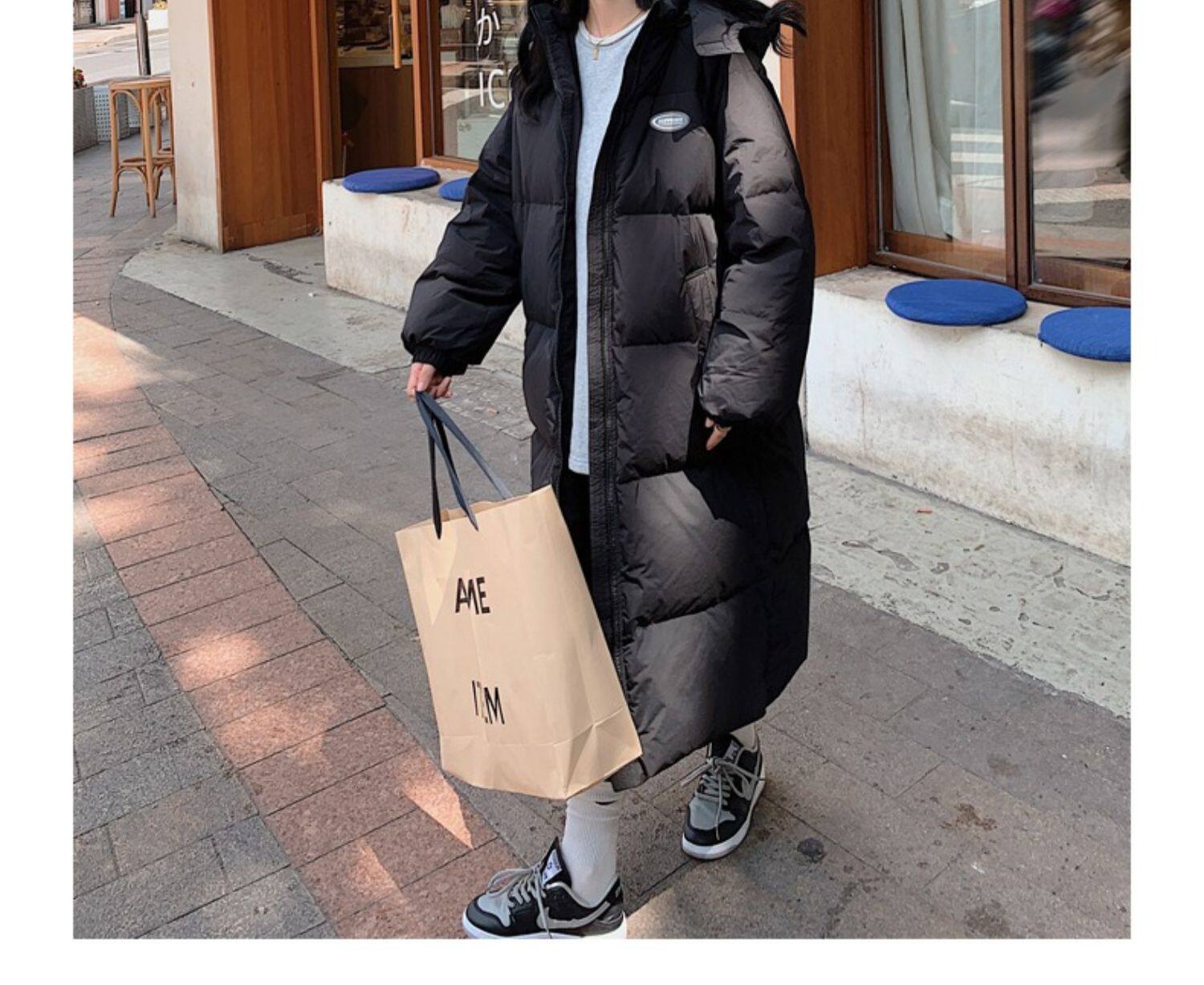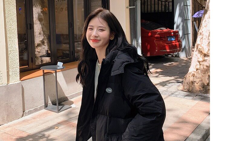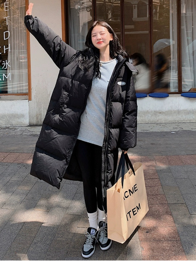 Черная пуховая хлопчатобумажная одежда для женщин среднего и длинного колена новая корейская хлопчатобумажная куртка для женщин свободная толстая хлопчатобумажная одежда зимой 2023 года