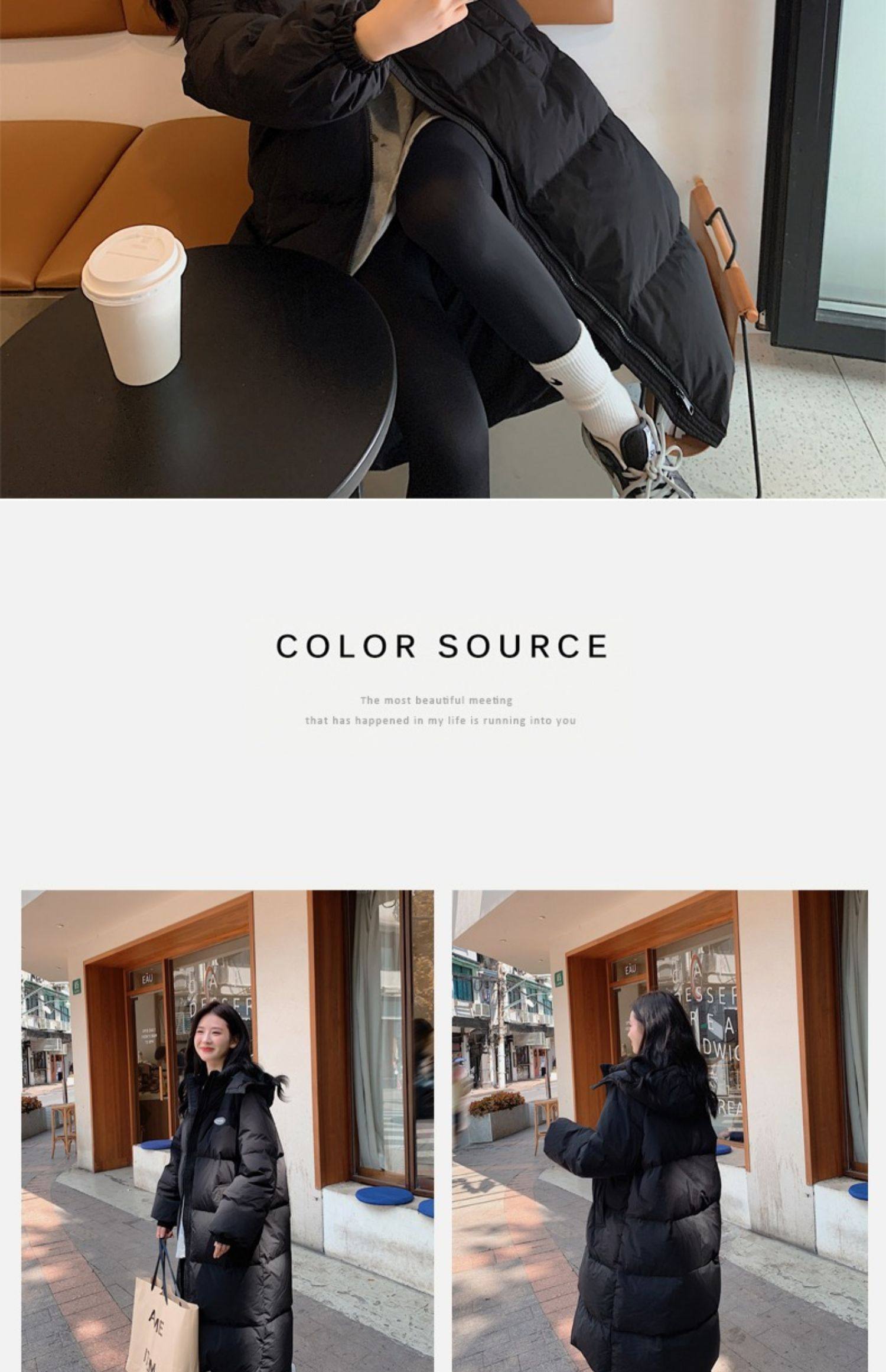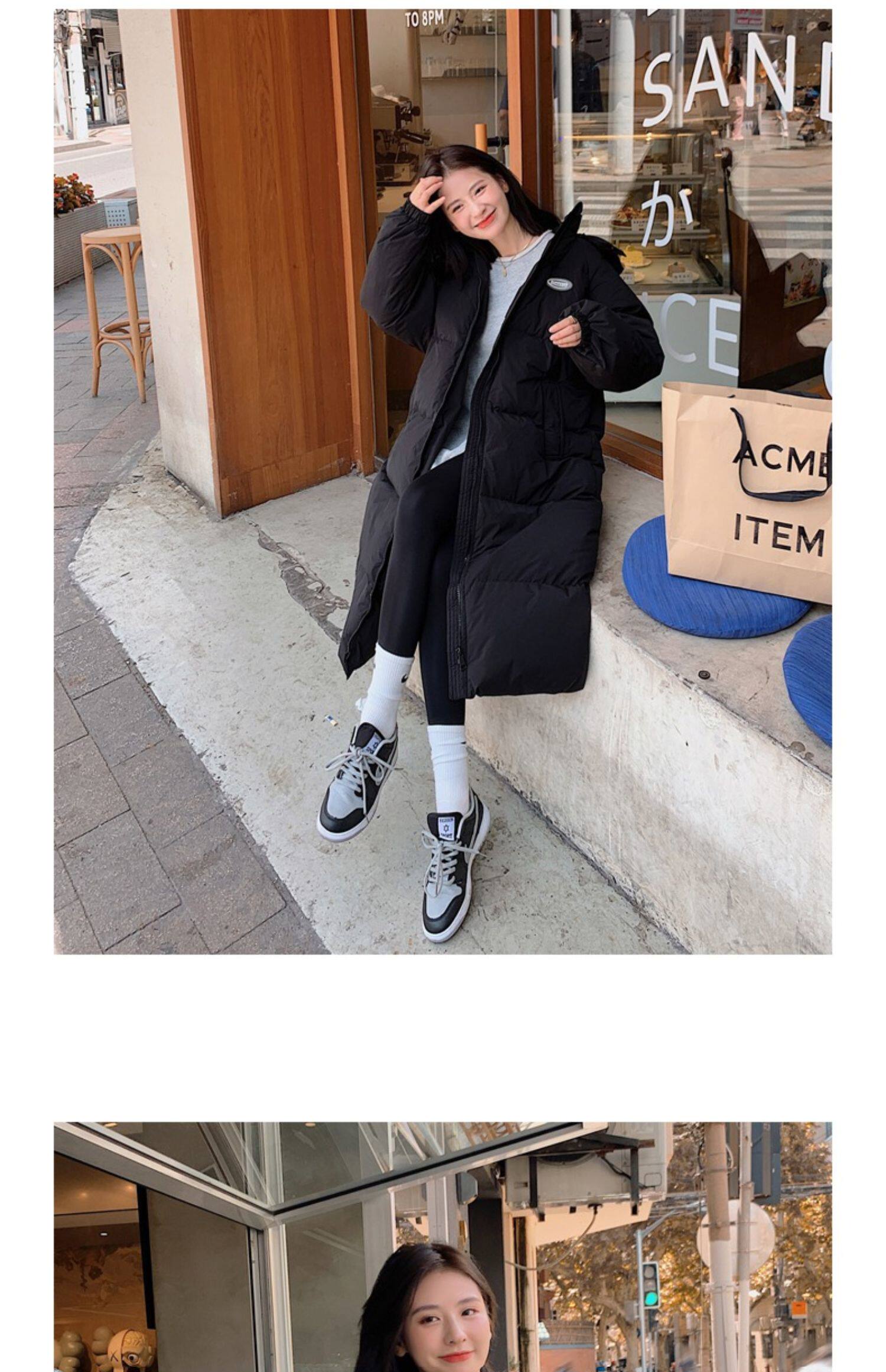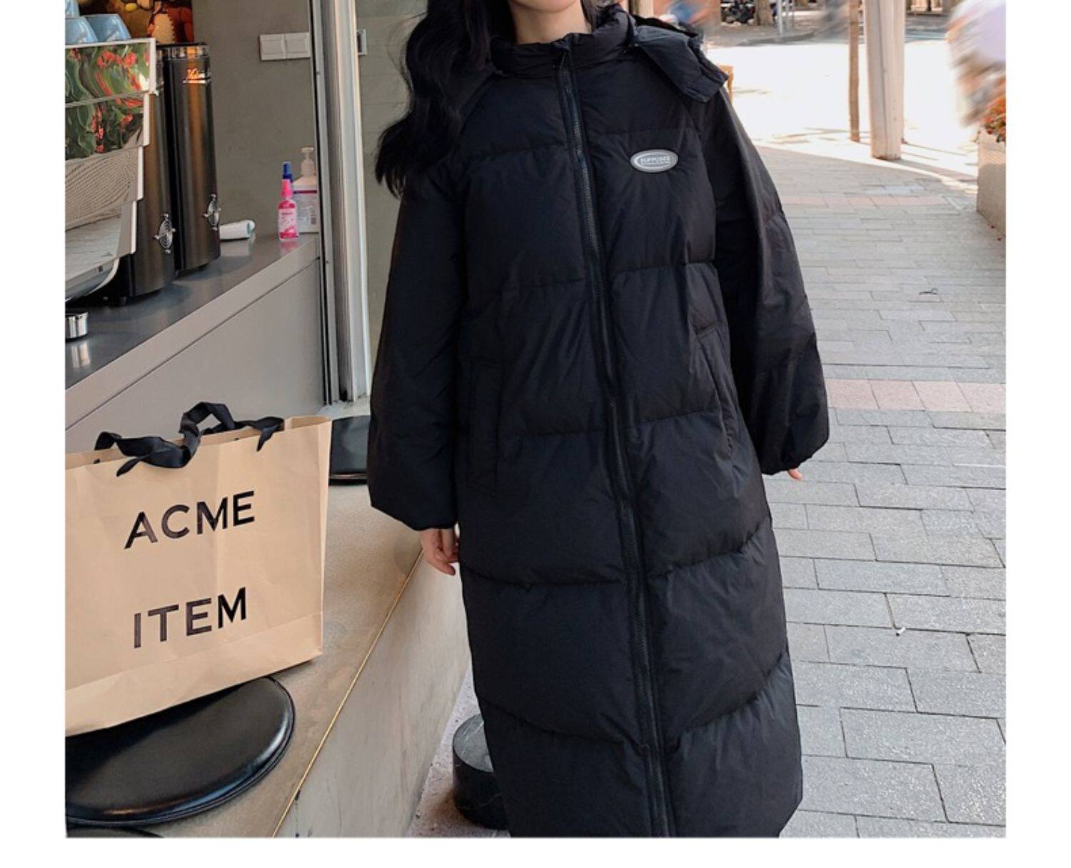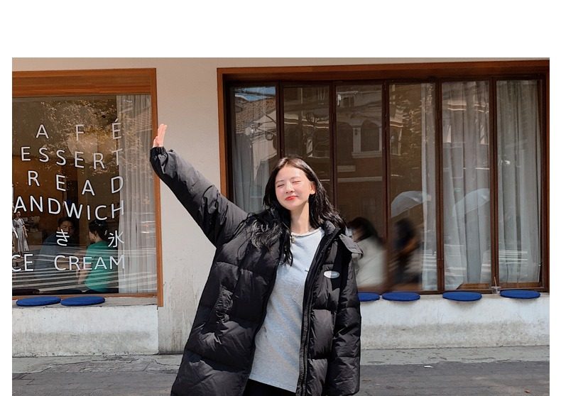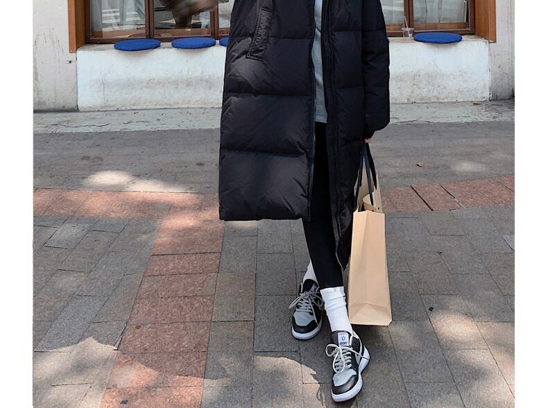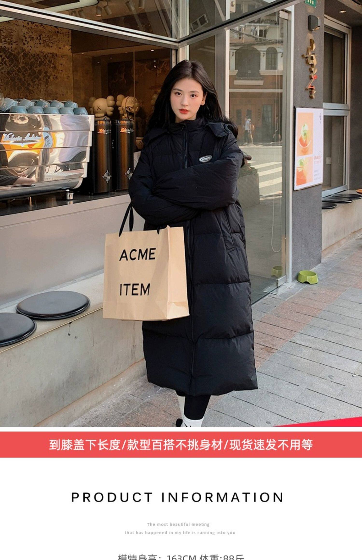 Черная пуховая хлопчатобумажная одежда для женщин среднего и длинного колена новая корейская хлопчатобумажная куртка для женщин свободная толстая хлопчатобумажная одежда зимой 2023 года