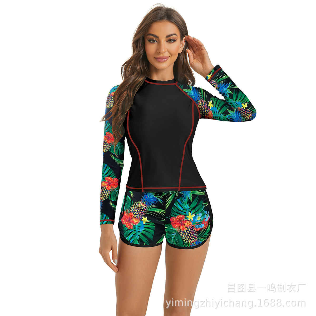 2024 новый трансграничный европейский и американский дайвинг-костюм для серфинга с длинными рукавами моды солнцезащитный крем с принтом сплит-купальник для женщин