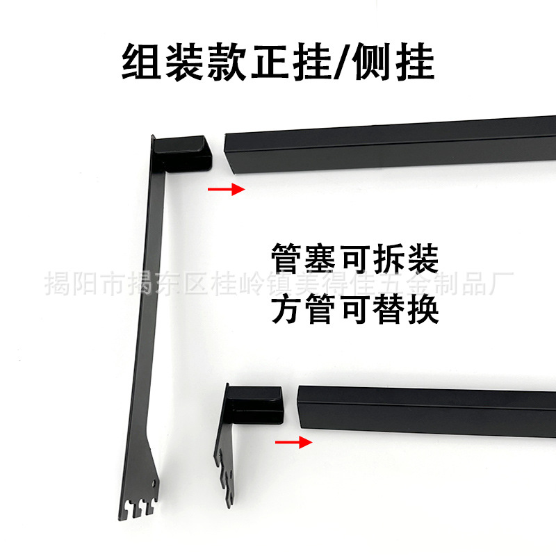 Магазин одежды витрина сборка квадратная труба висит сбоку черный белый нержавеющая сталь канцелярские крючки держатель полки фитинги