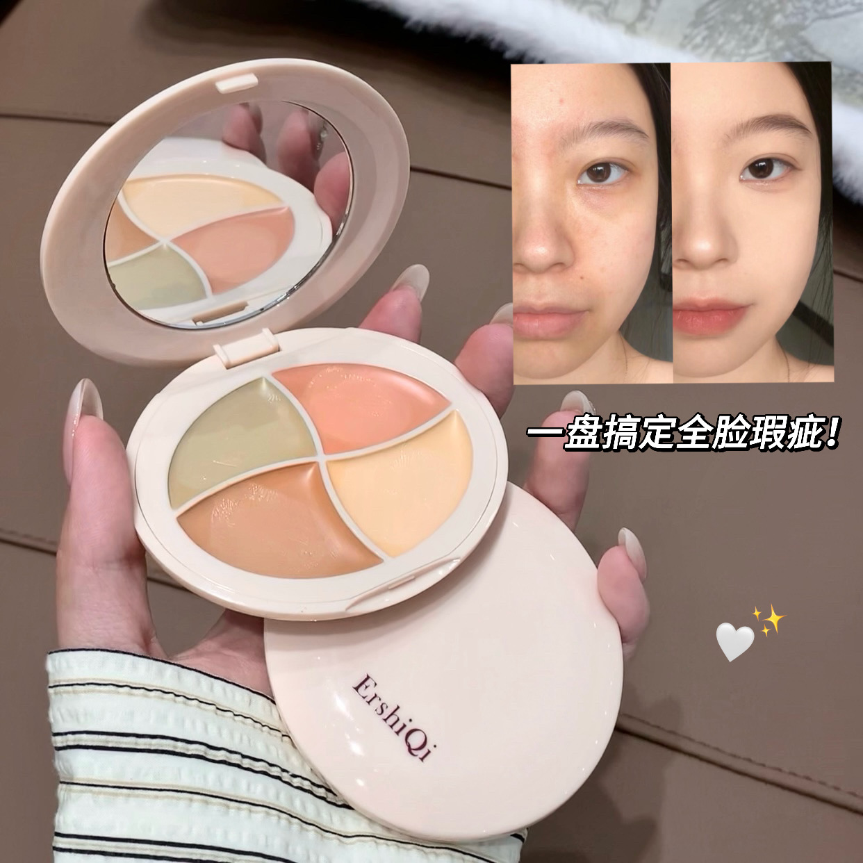 Четырехцветный маскирующий крем для макияжа ErshiQi покрывает веснушки