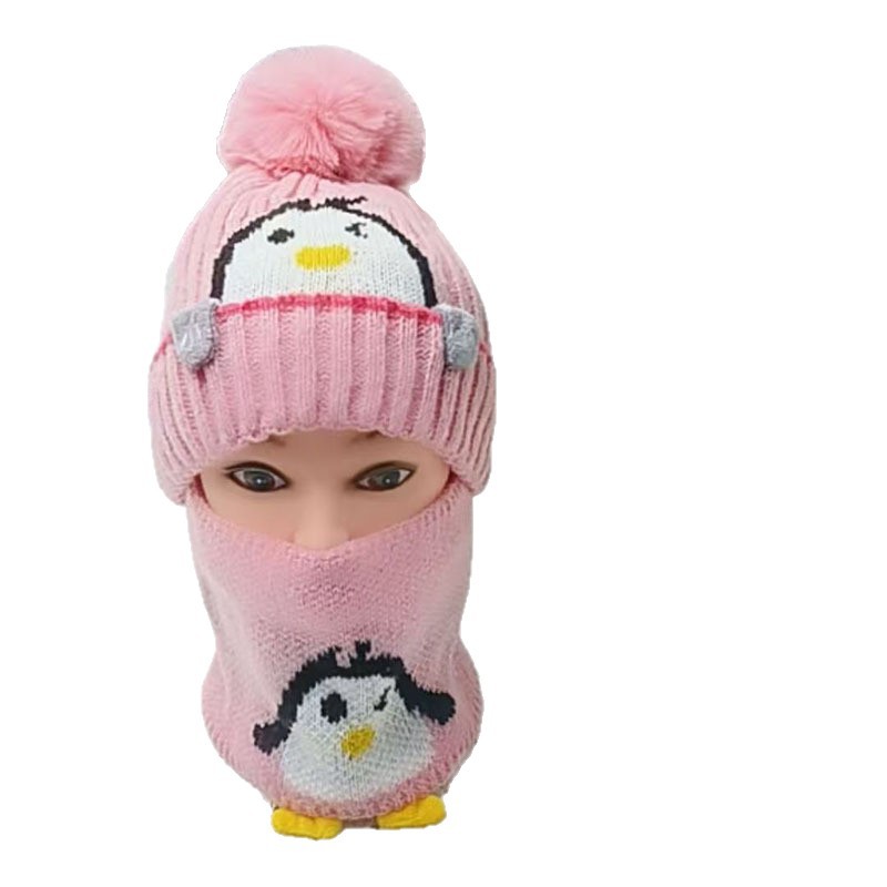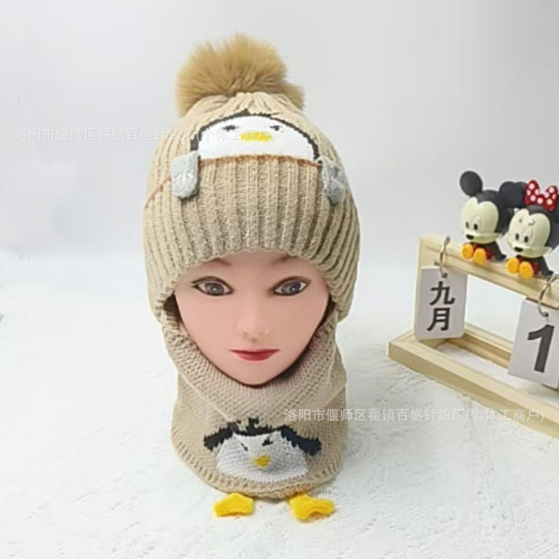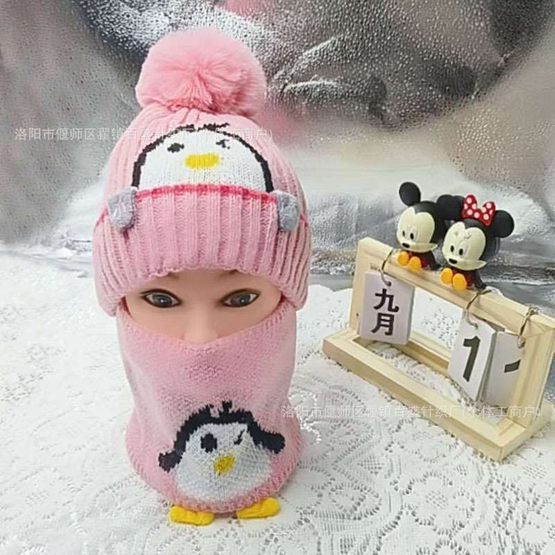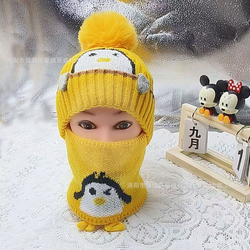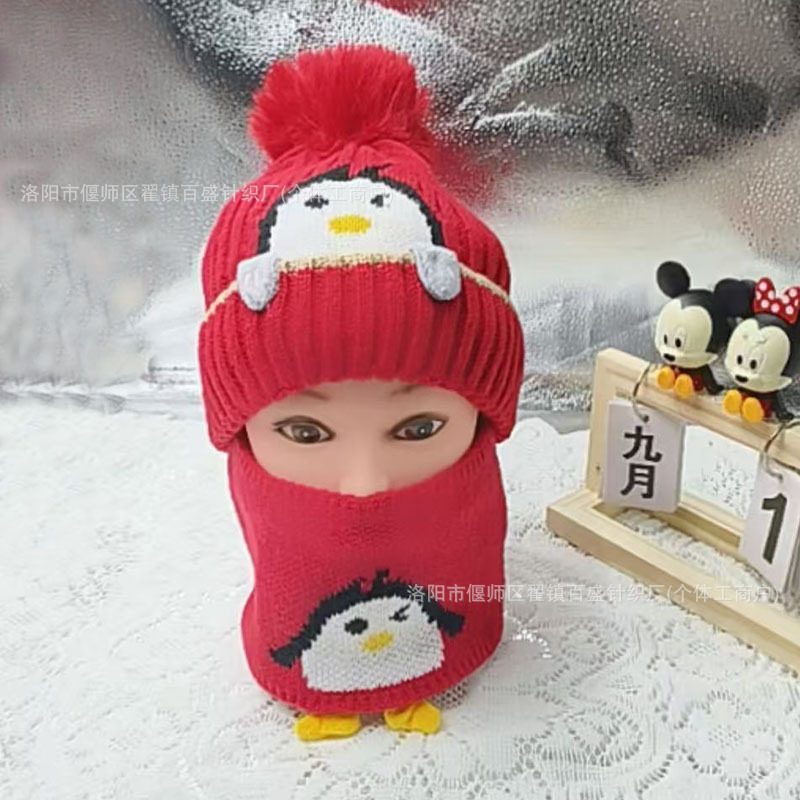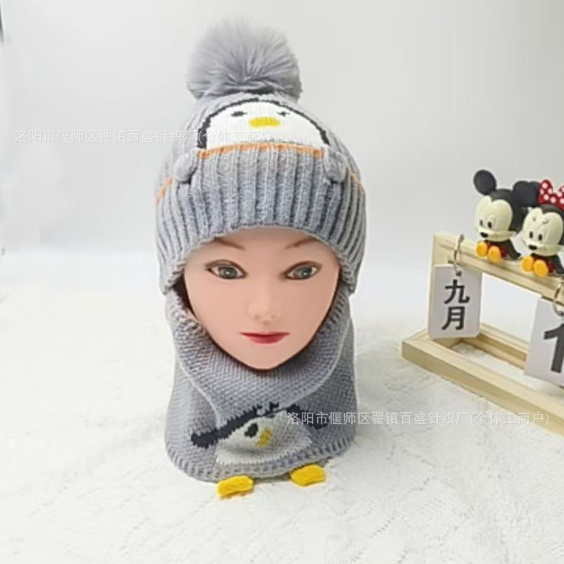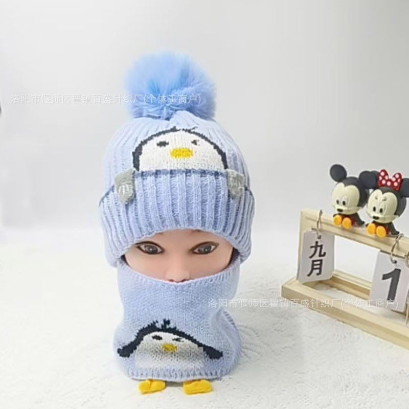 A осень и зима детская вязаная шапка маленький пингвин мультяшная шерстяная шапка плюс бархат теплая детская шапка шарф набор
