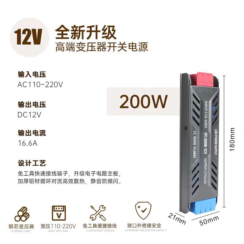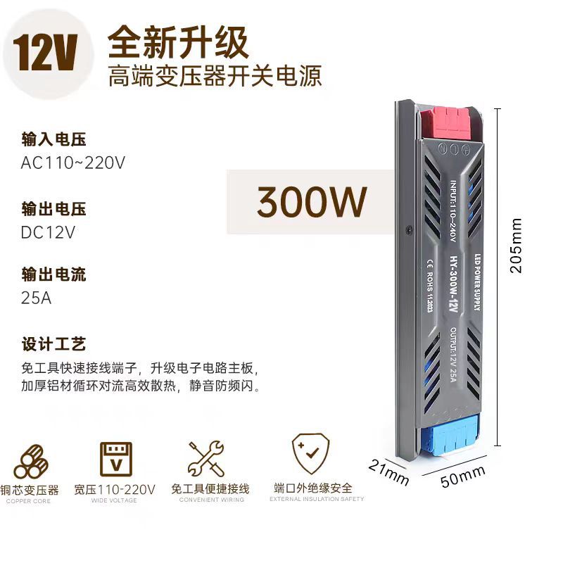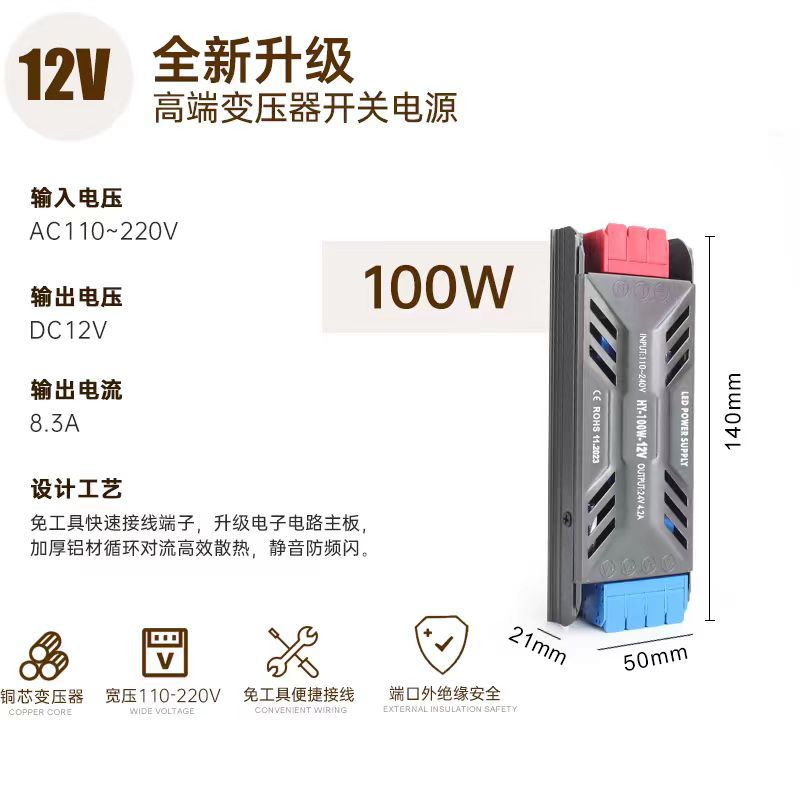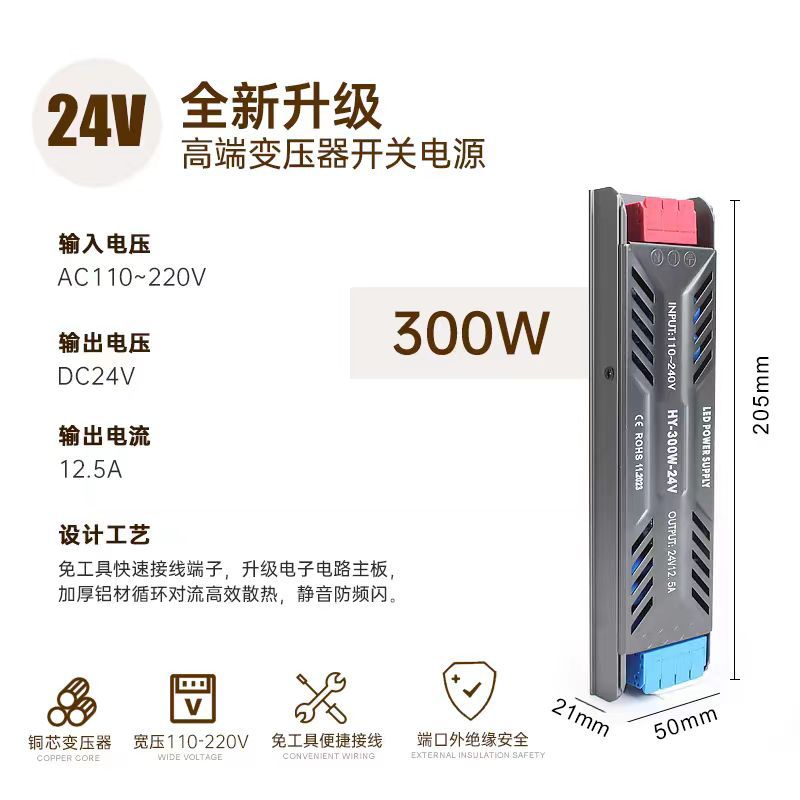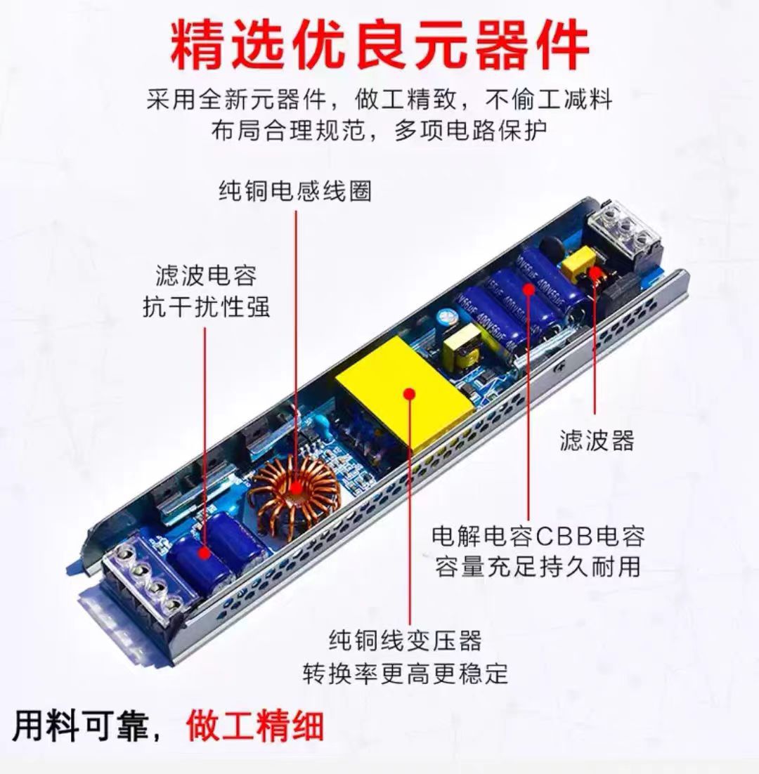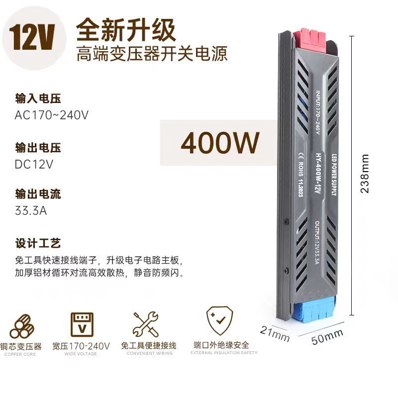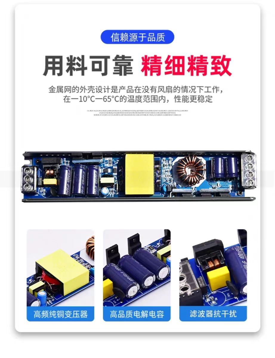 Блок питания для светодиодов 24В, бесшумный, с защитой от мерцания, от 220В до низковольтного 12В, для световых лент и лайтбоксов, широкий диапазон напряжения, ультратонкий трансформатор