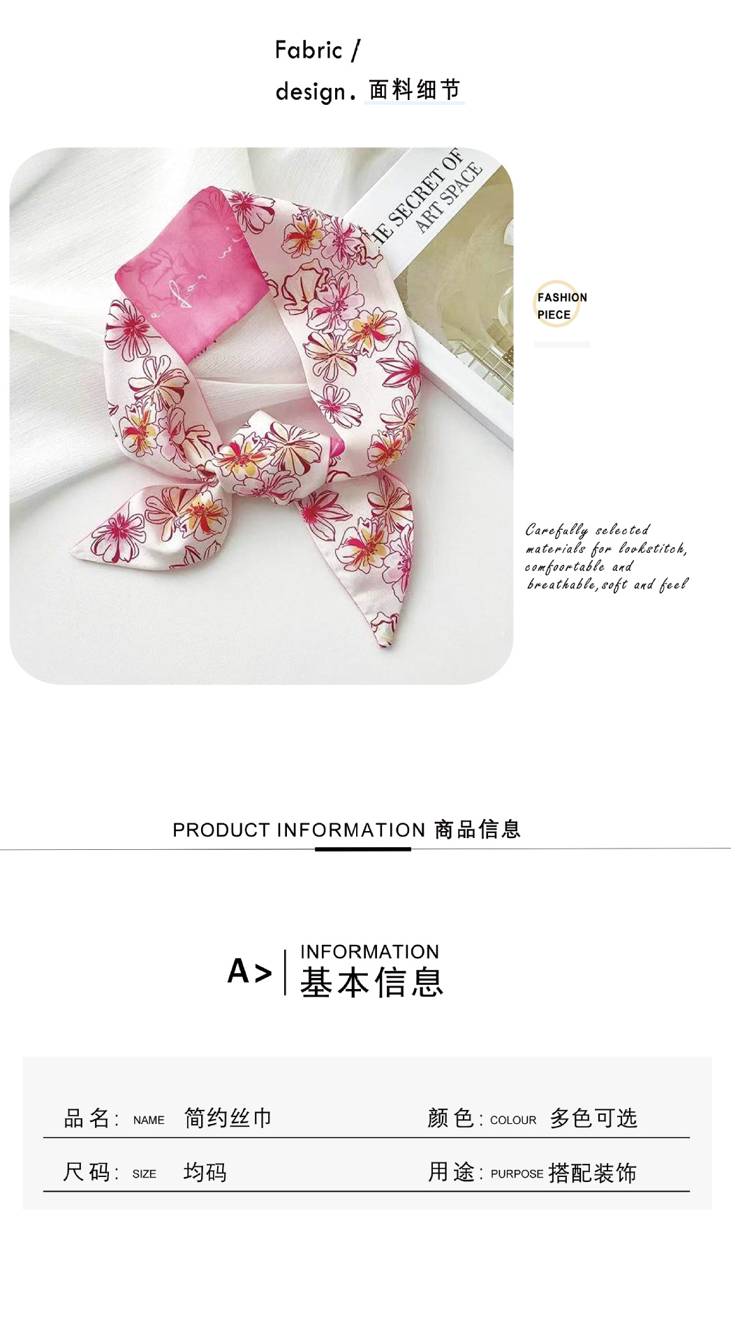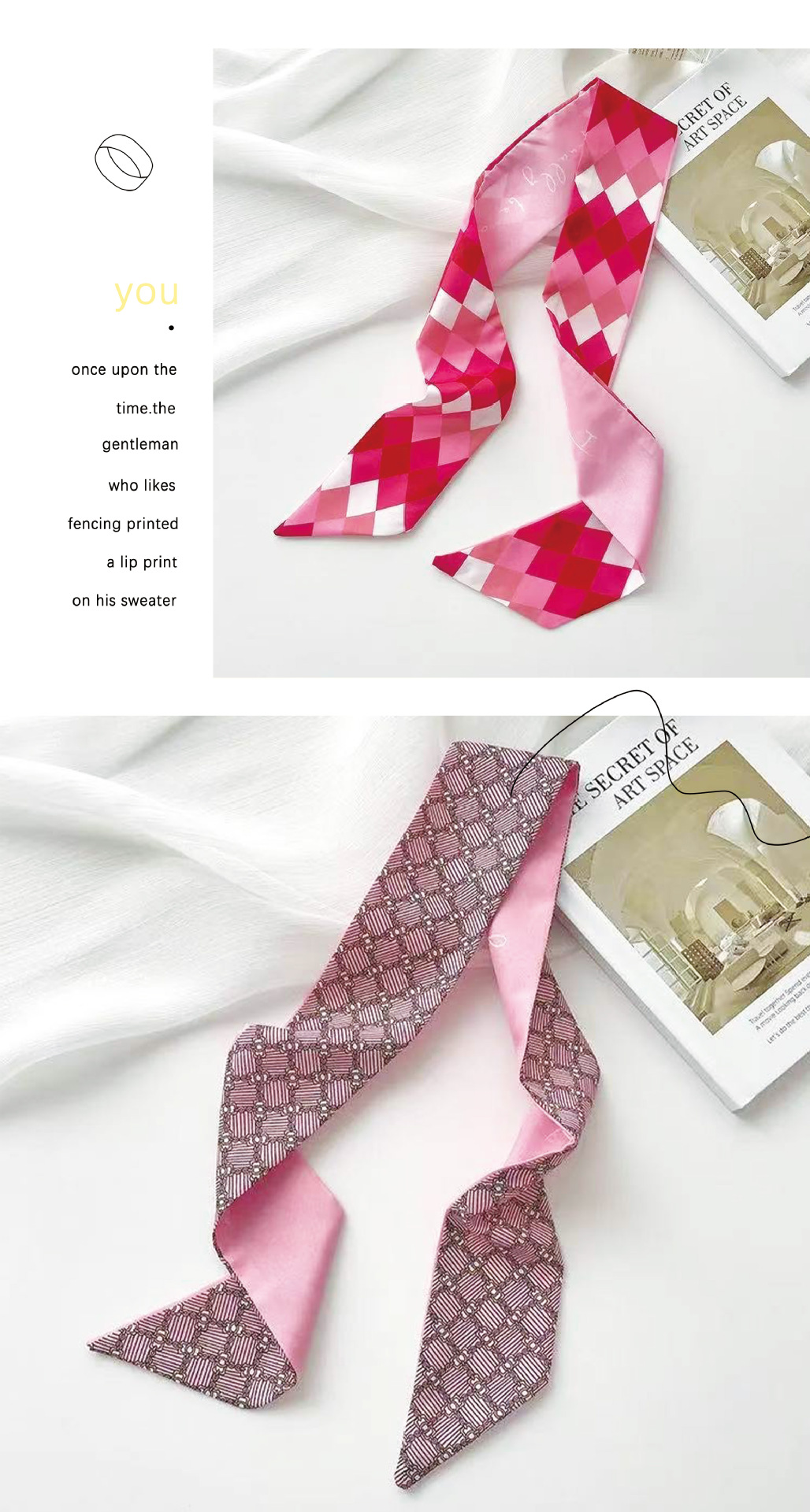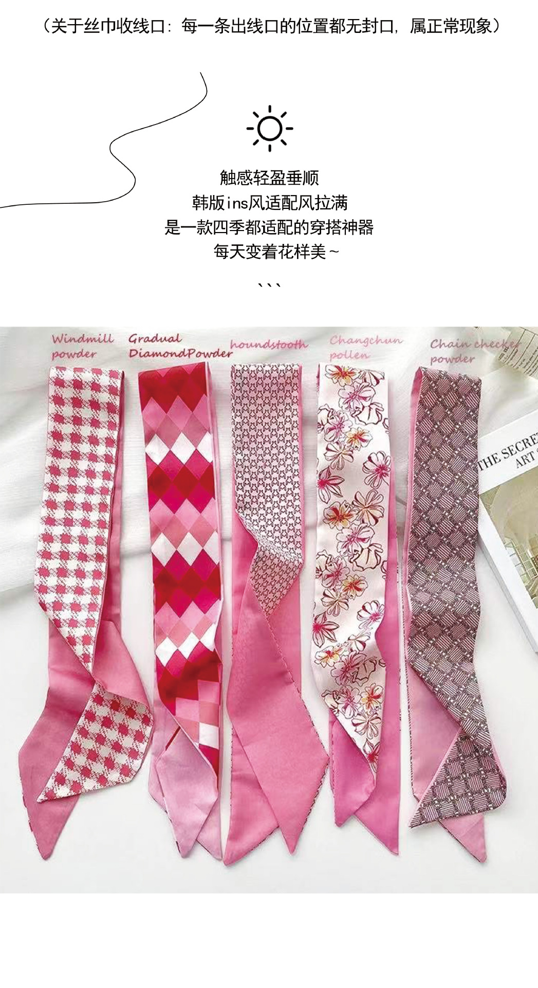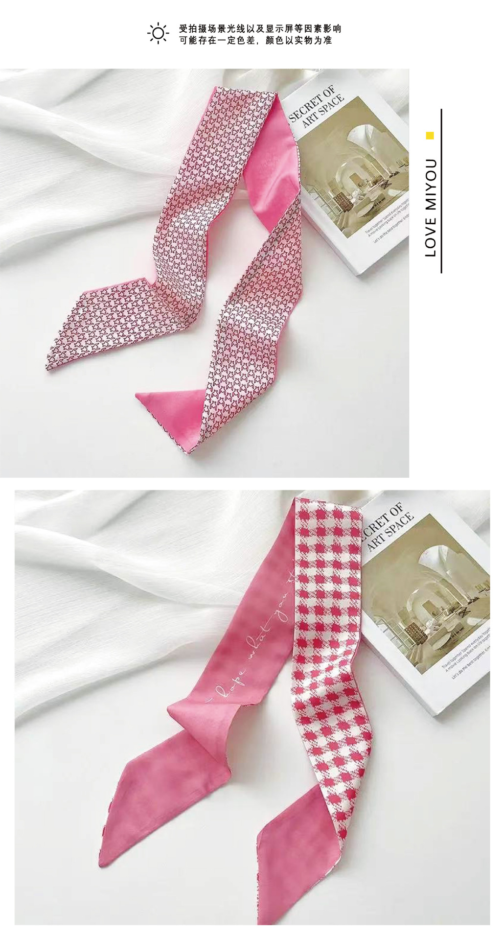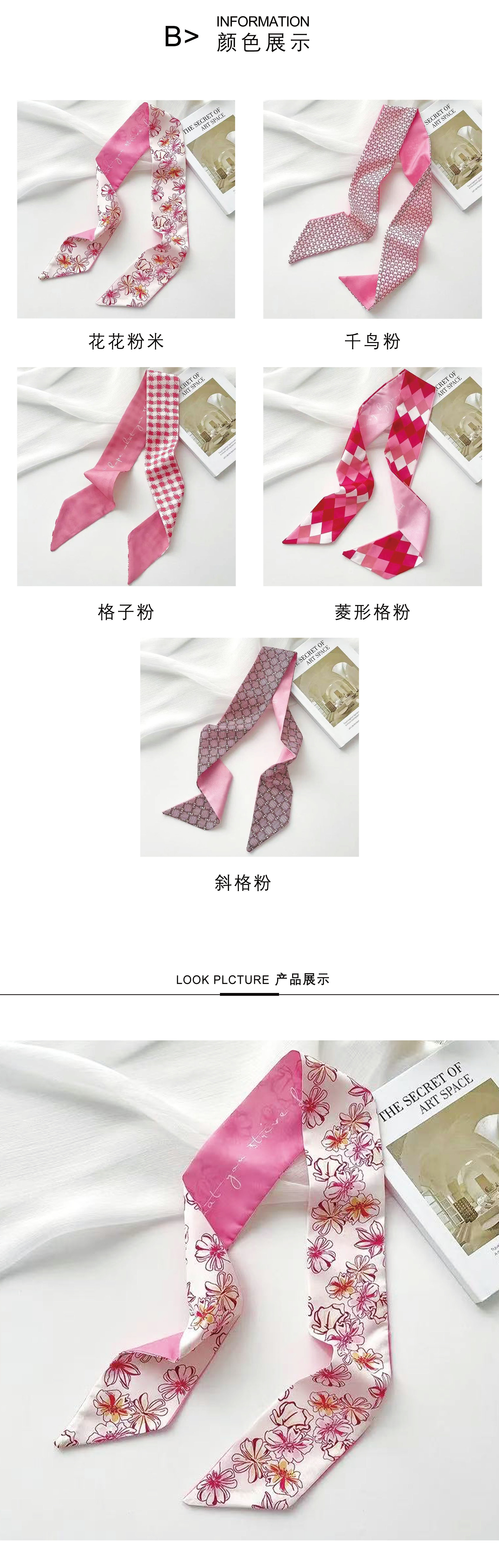 Весенний и летний новый розовый шелковый шарф с диким пояском для волос