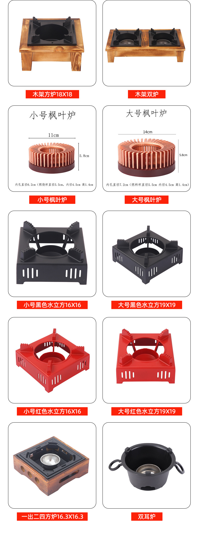 Большая квадратная плита с тремя отверстиями 20Х20.; Маленькая квадратная плита с тремя отверстиями 16Х16.; Весенне-осенняя печь черного цвета; Весенне-осенняя плита Бронза; Большая квадратная печь для тыквы 18Х21; Маленькая квадратная печь для тыквы 14х17; круглая известная печь; Маленькая передаваемая печь черного цвета 16X16.; Большая передаваемая печь черного цвета 19,5X19,5.; Маленькая передаваемая печь золотисто-красного цвета 16X16.; Держатель сухого котла; Простая квадратная печь 18Х18; Спиртовая печь в орхидеи; Японская квадратная спиртовая печь 19,5х19,5 бронзового цвета; Японская квадратная спиртовая печь 19,5х19,5 черная; Японская квадратная спиртовая печь 19,5х19,5 красная; квадратная плита; Шестиугольная алюминиевая печь; Деревянная рама квадратная печь 18Х18; Двойная печь с деревянной рамой; Небольшая печь из кленового листа; Большая печь из кленового листа; Маленький черный кубик для воды 16х16; Большой черный кубик для воды 19х19; Маленький красный кубик воды 16х16; Большой красный водяной куб 19х19; Одна из двух квадратных печей 16,3X16.3; Двойная ушная печь