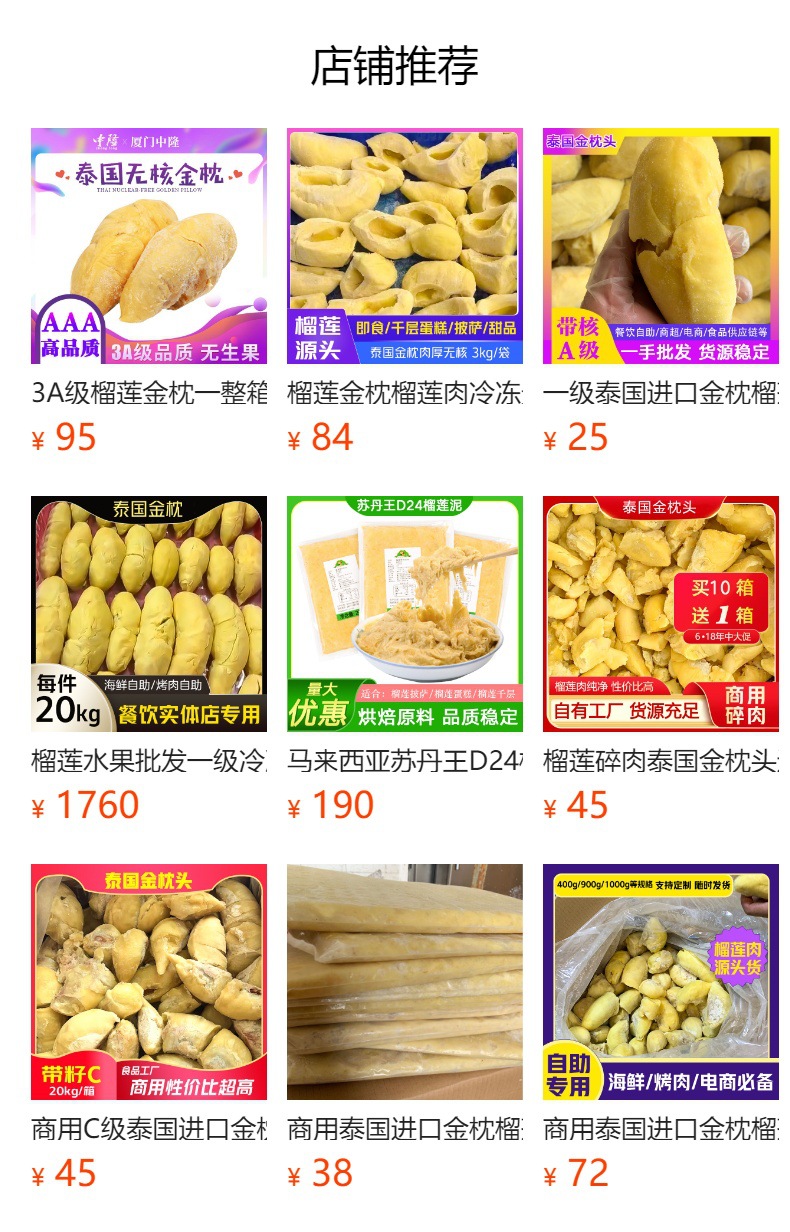 商用非零售泰国金枕头榴莲碎块 规格:40斤/箱 整箱批发