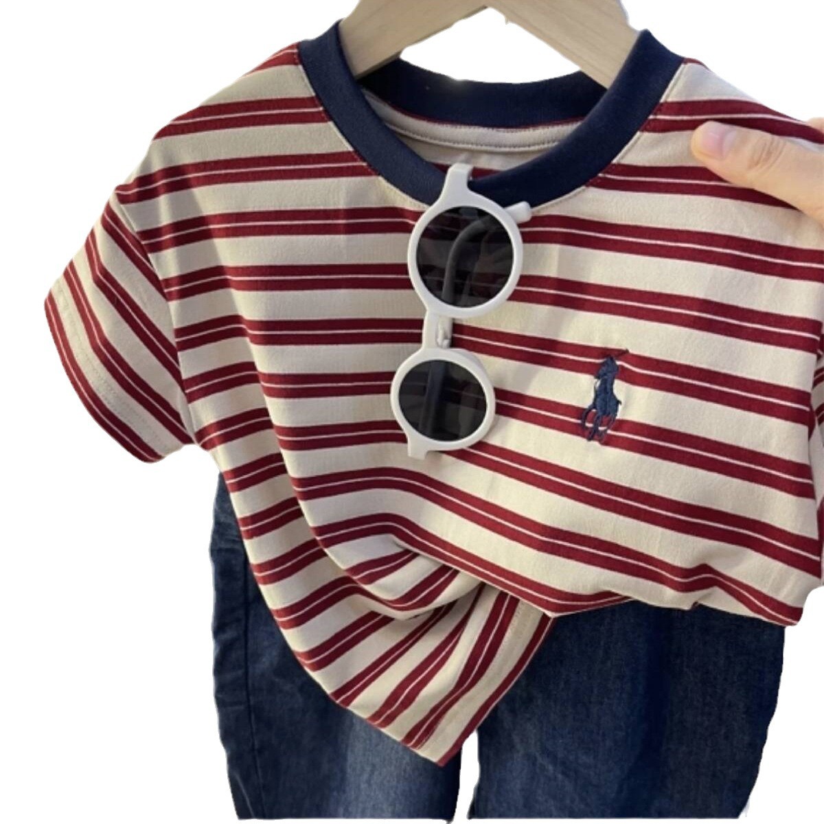 Топ с короткими рукавами для мальчиков высокого качества расческа хлопчатобумажная ткань для детей летняя полосатая вышивка модная футболка