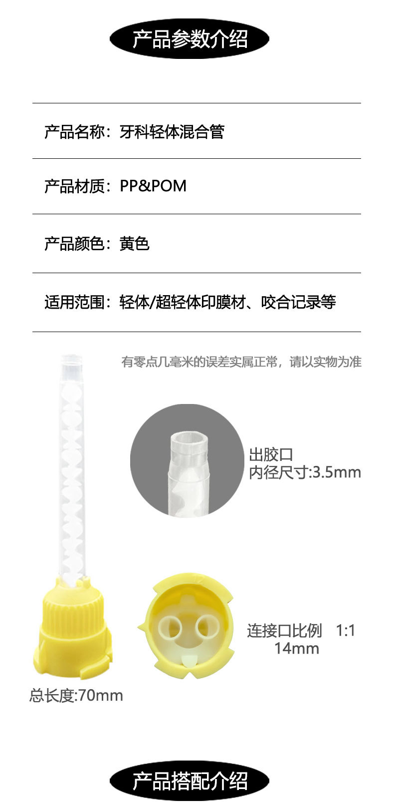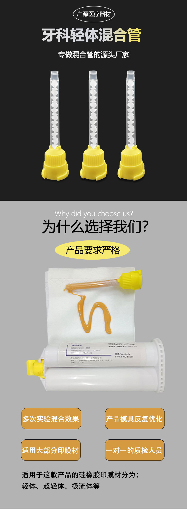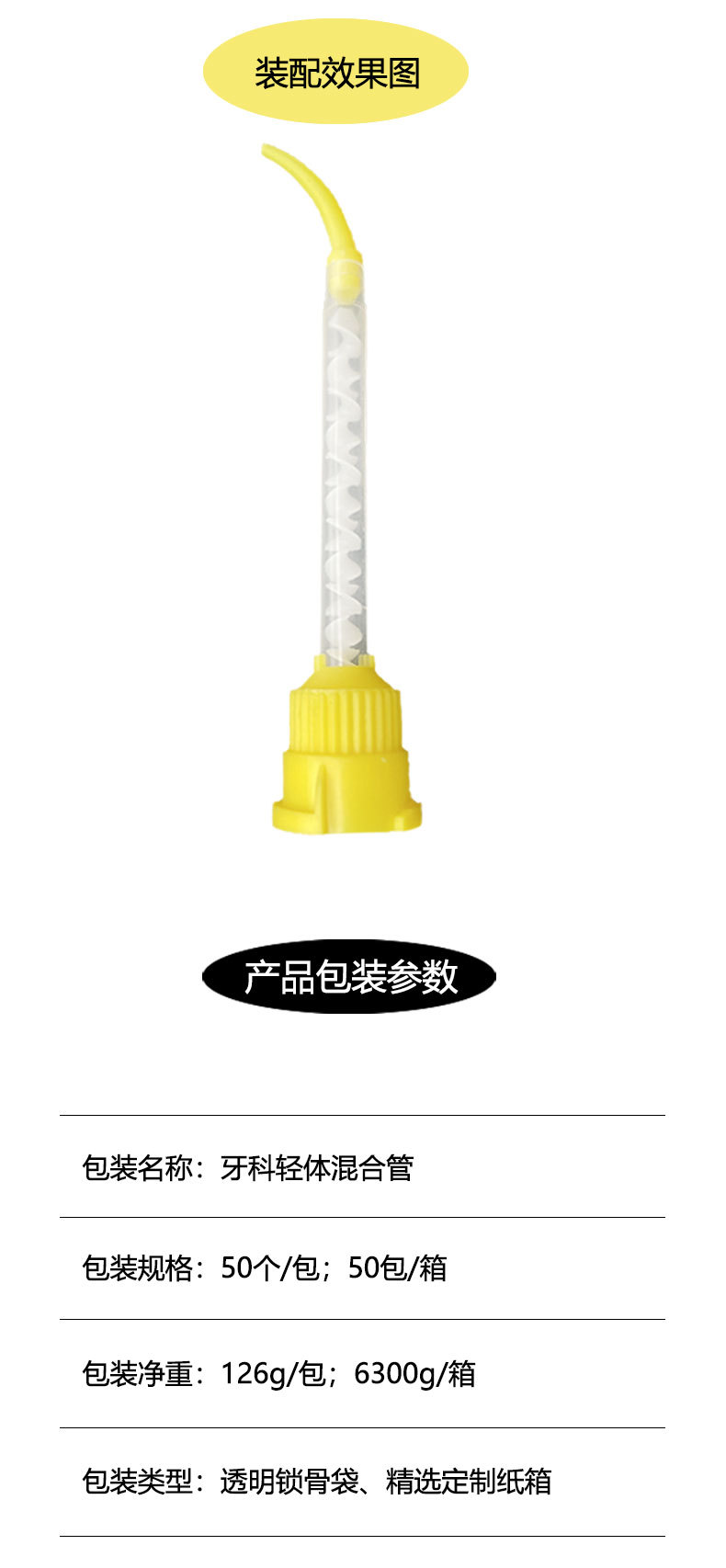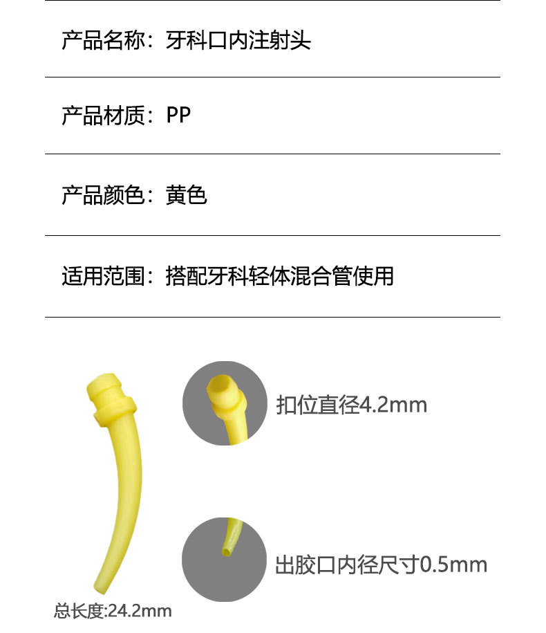 Легкая смесительная трубка для корпуса производителя, желтая смесительная головка, материал для печати из силиконовой резины, стоматологическая одноразовая внутренняя головка для инъекций