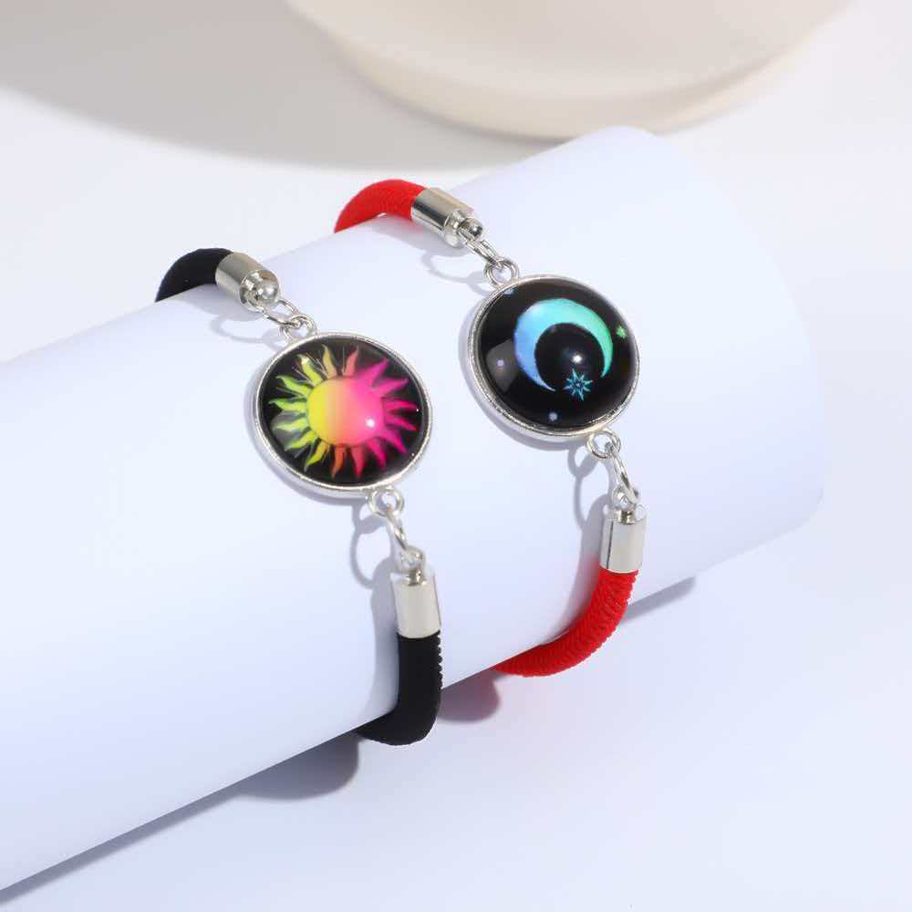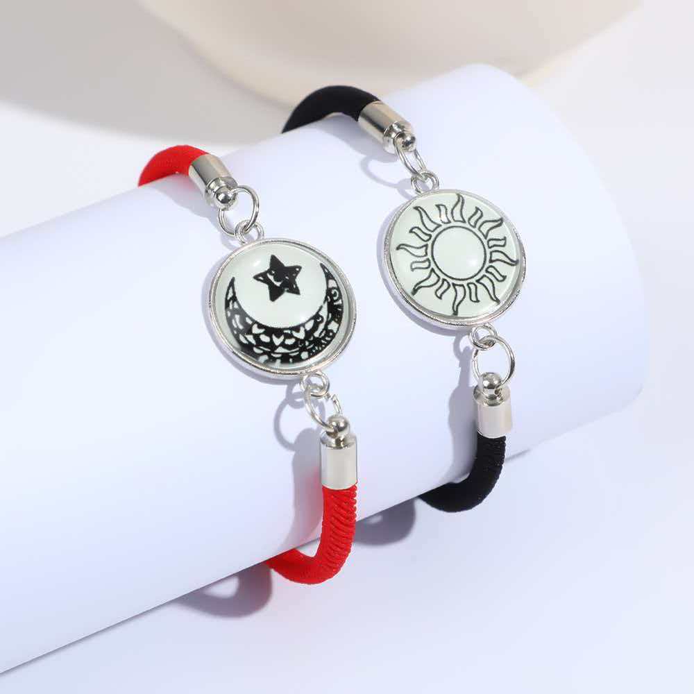 Трансграничный плетеный браслет с драгоценными камнями Солнца и Луны 2025 года, европейский и американский браслет для пары Ins, светящийся браслет с луной