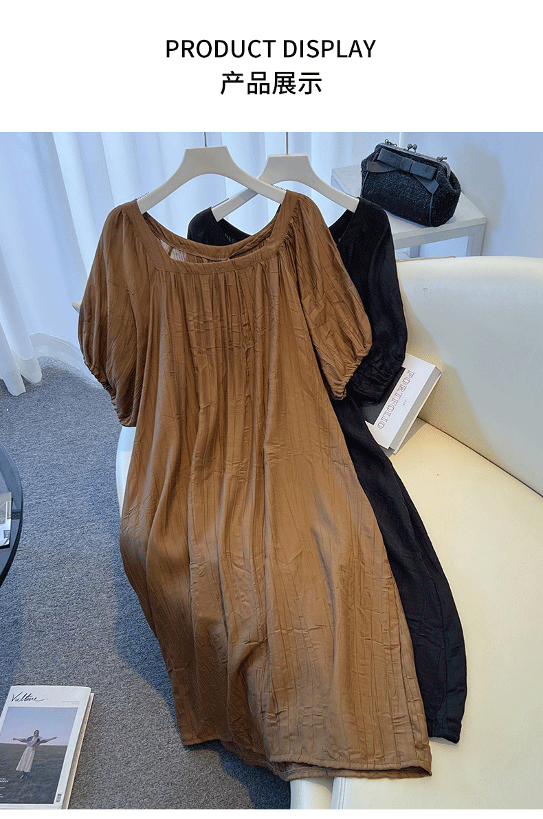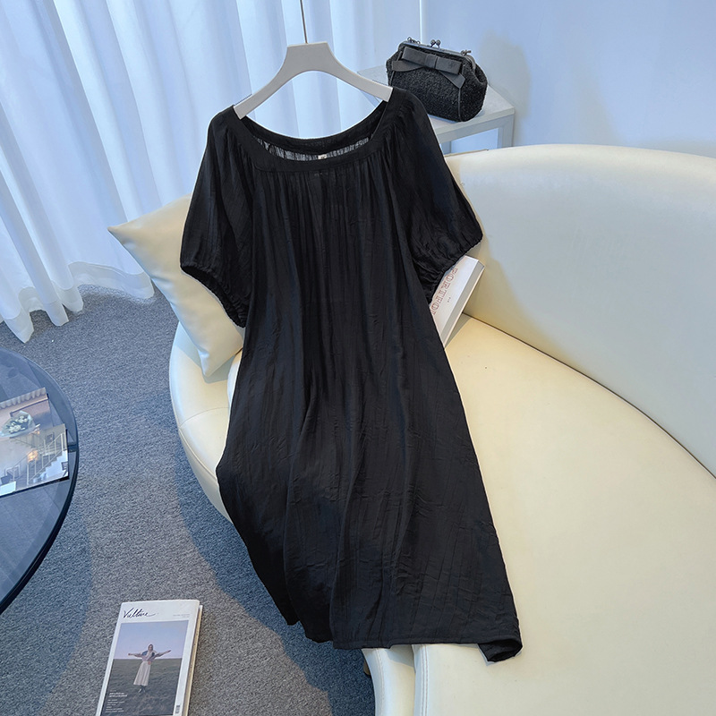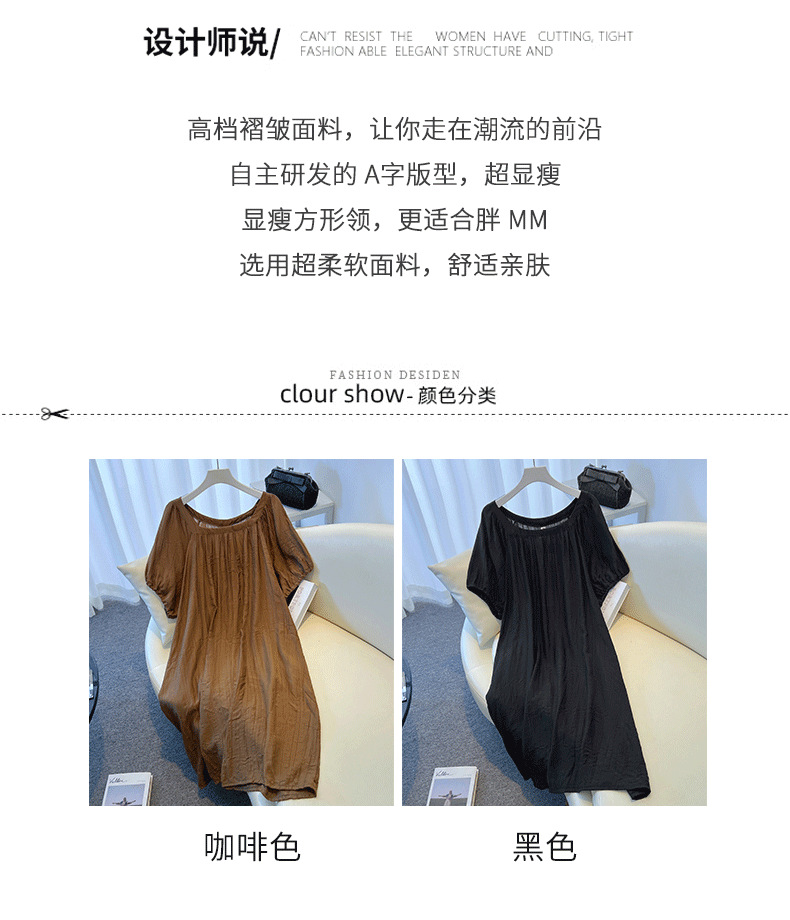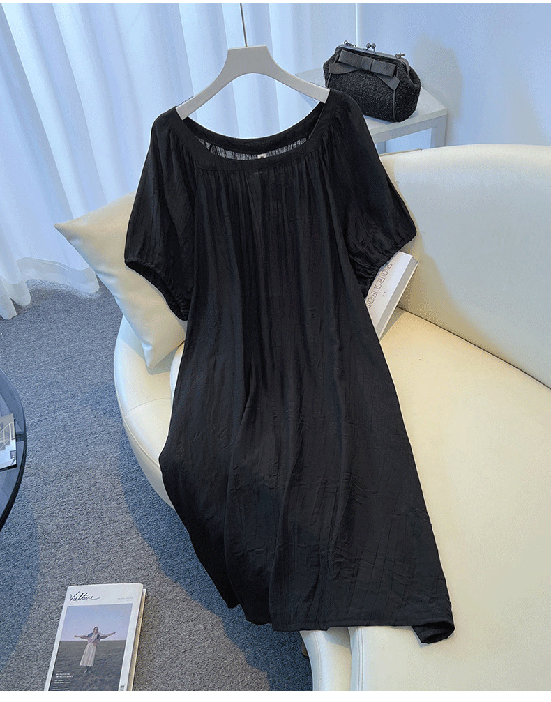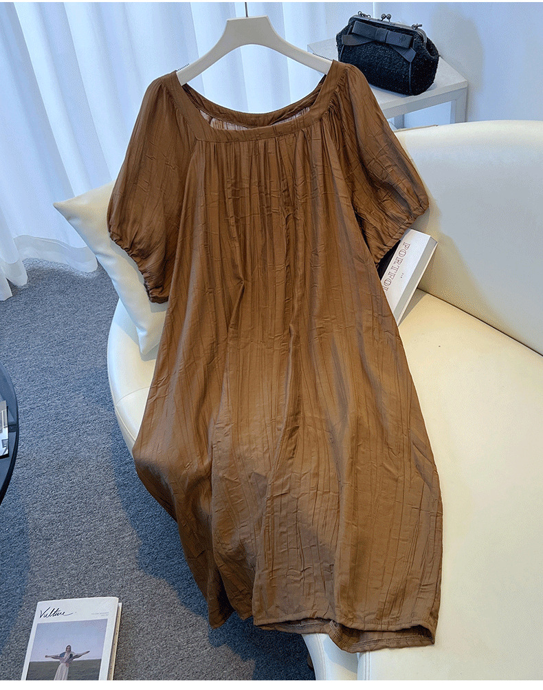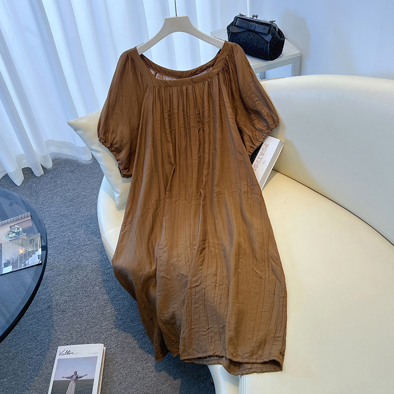 Высокое качество 240 фунтов плюс большой размер морщинистый Трасс литературный досуг простой цвет сплошной цвет морщин с короткими рукавами платье жирный MM