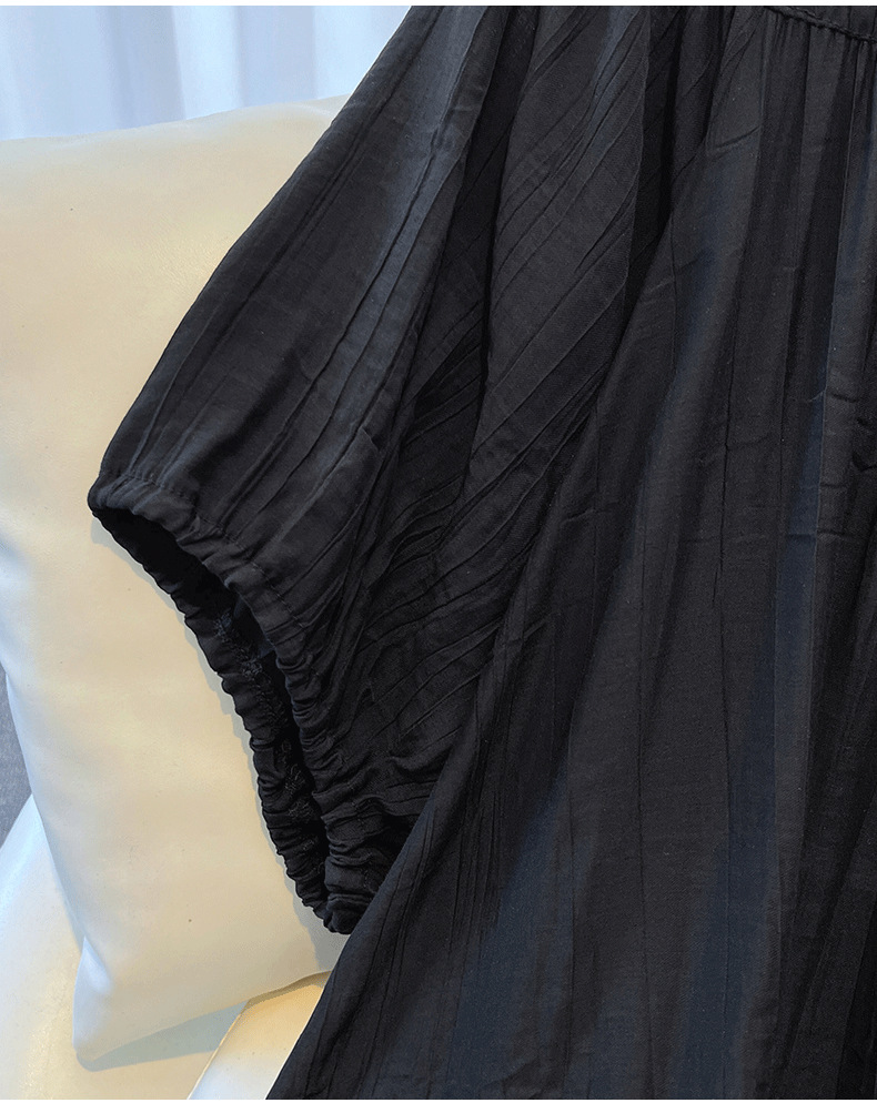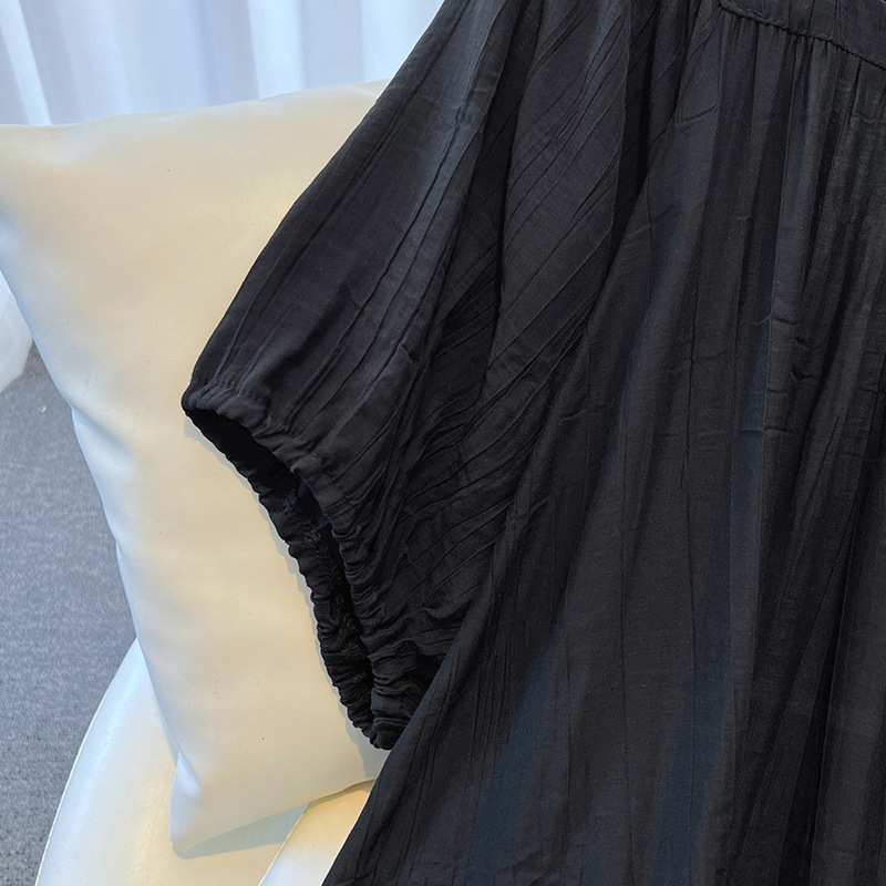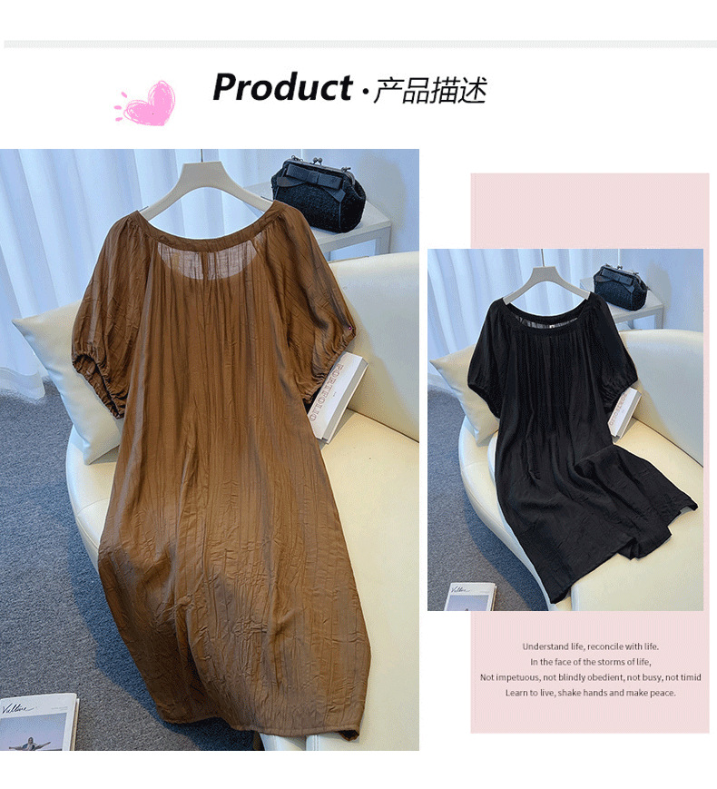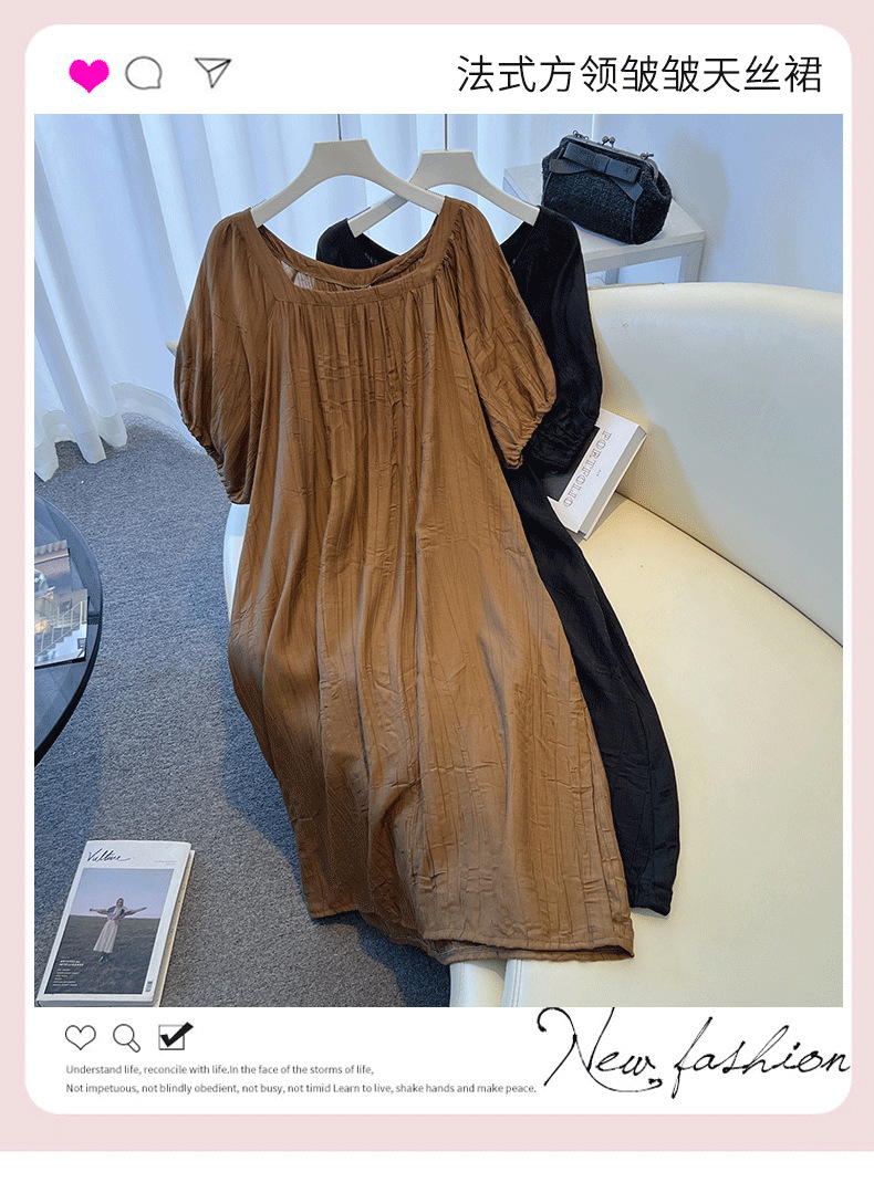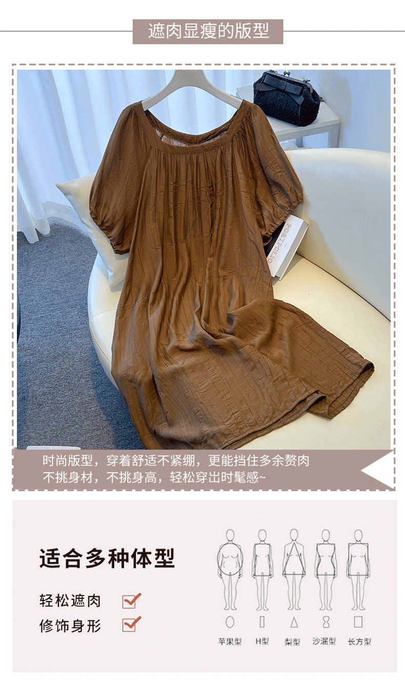 Высокое качество 240 фунтов плюс большой размер морщинистый Трасс литературный досуг простой цвет сплошной цвет морщин с короткими рукавами платье жирный MM