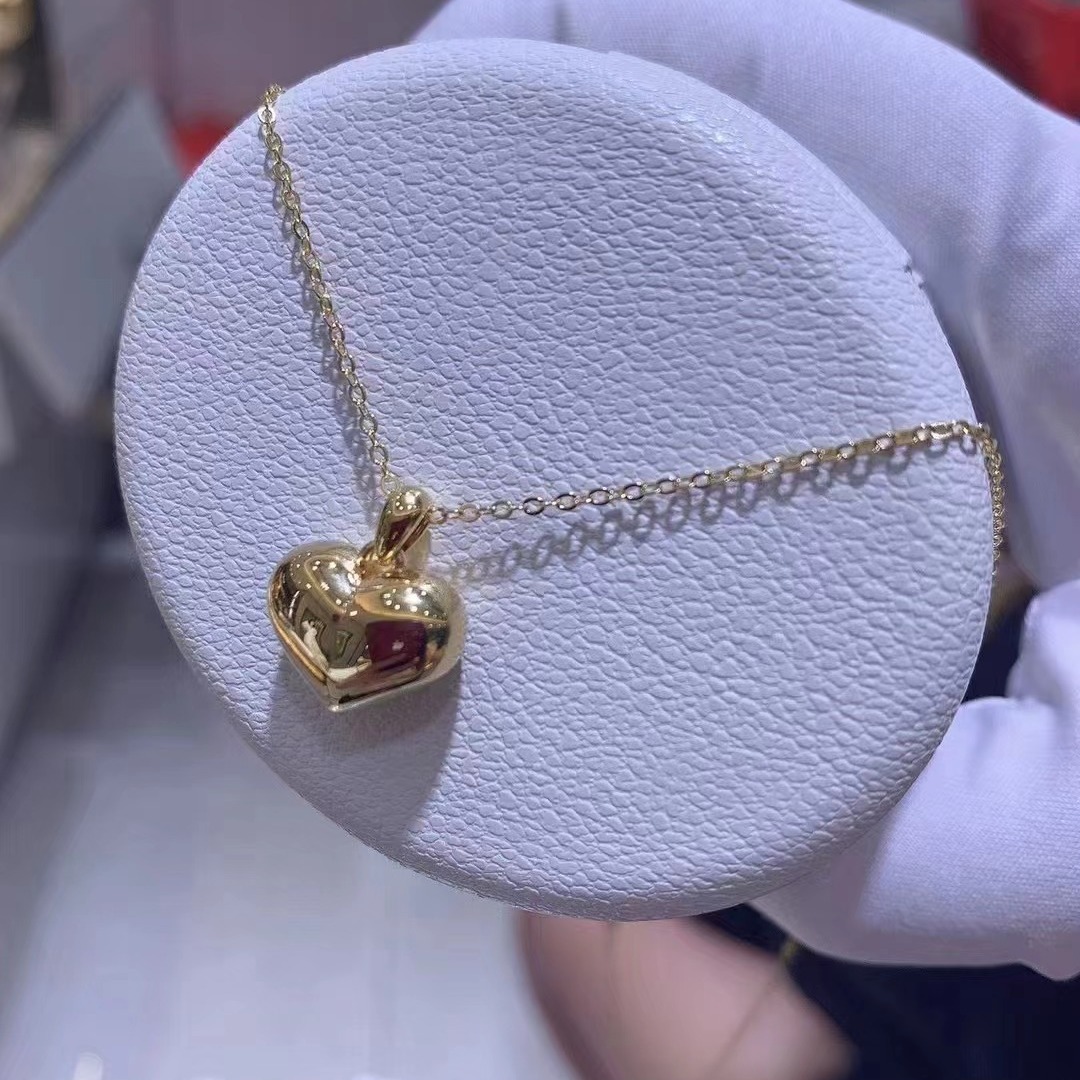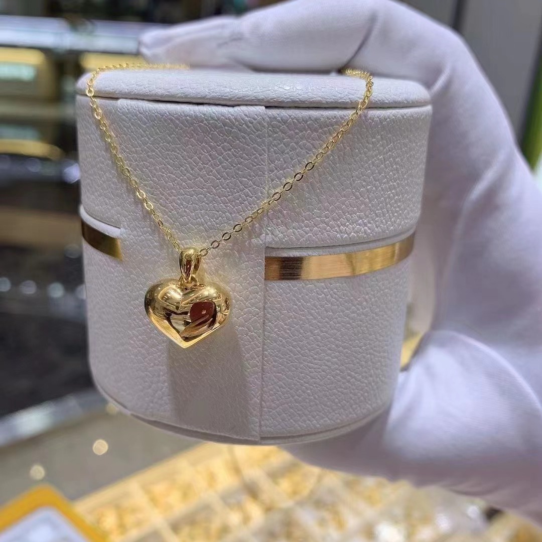 Широкий кулон в форме сердца из золота 18 карат au750, цвет золота, пухлый кулон на цепочке на ключицу, ювелирный кулон в форме стерео сердца