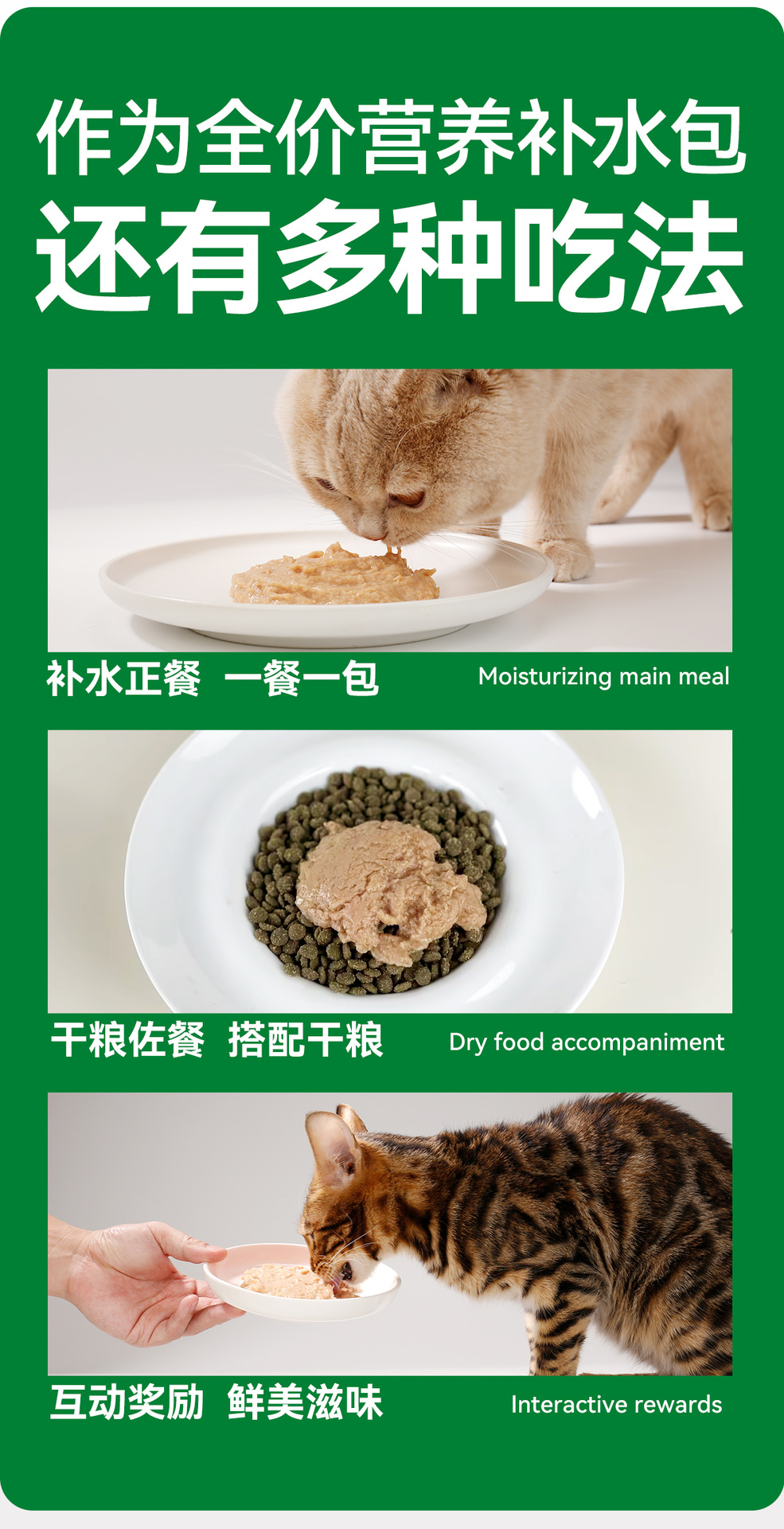 80 г/пакет - упаковка свежего вкуса; 80 г*10 пакетов/коробка-рекомендация горячей продажи; 10 пакетов в коробке + полоски для кошек с рыбьим маслом 1 пакетик/10 штук (рекомендуется для увеличения веса и красоты); 10 пакетов в упаковке + 1 пакетик полосок для кошачьей травы/10 штук (настоятельно рекомендуется для удаления волос); 40 г/пакет