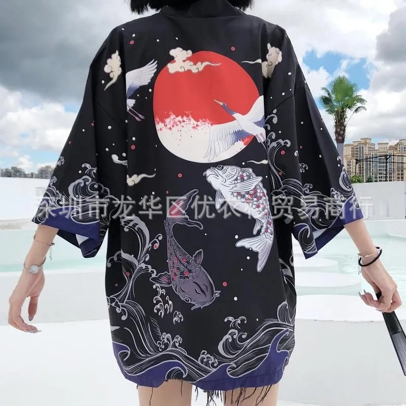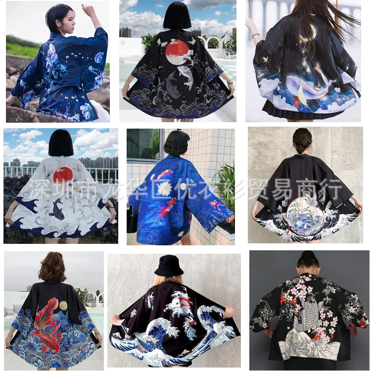 2024 трансграничный новый японский стиль кои с цифровым принтом кимоно для мужчин и женщин плащ пижамы кардиган летом