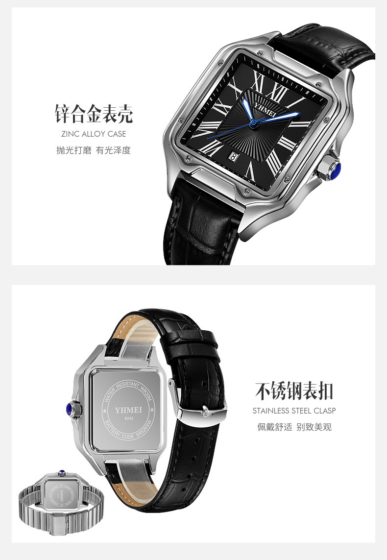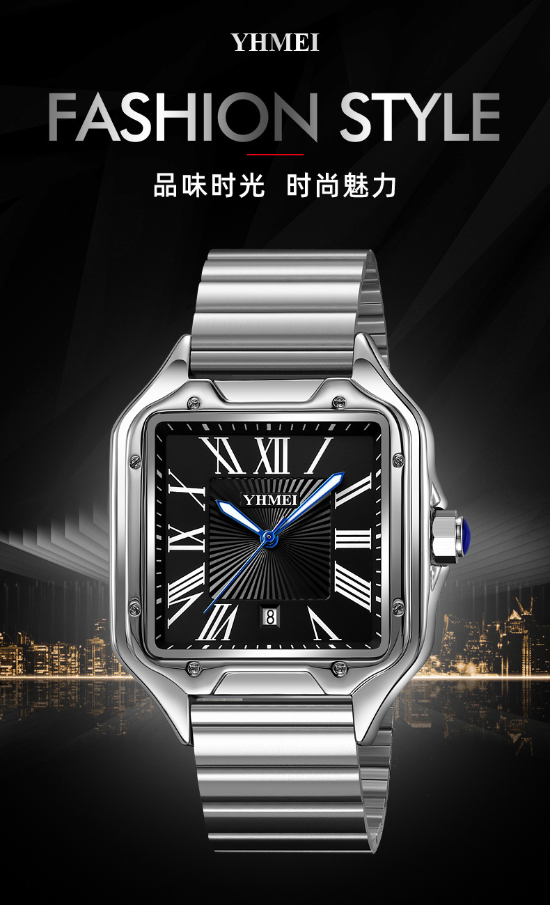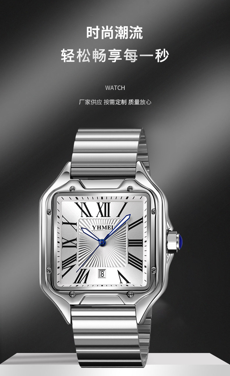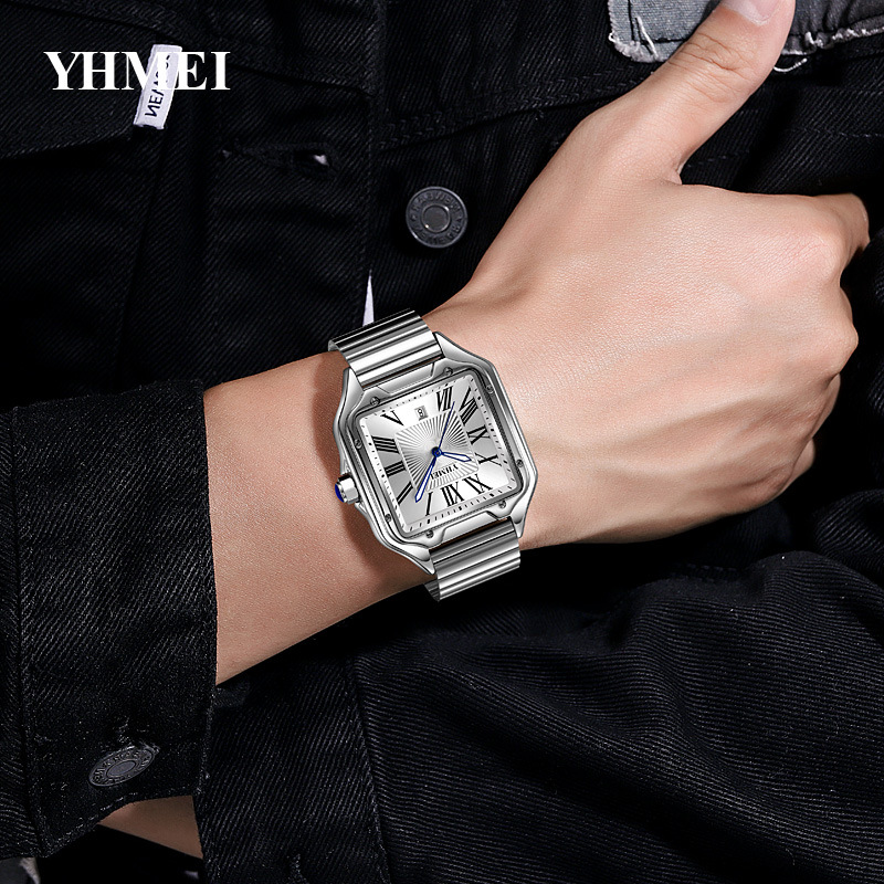 Часы со стальным ремнем и квадратным ремнем, римские цифры для мужчин и женщин, носимые модные повседневные часы, оптовый производитель, легкая роскошь