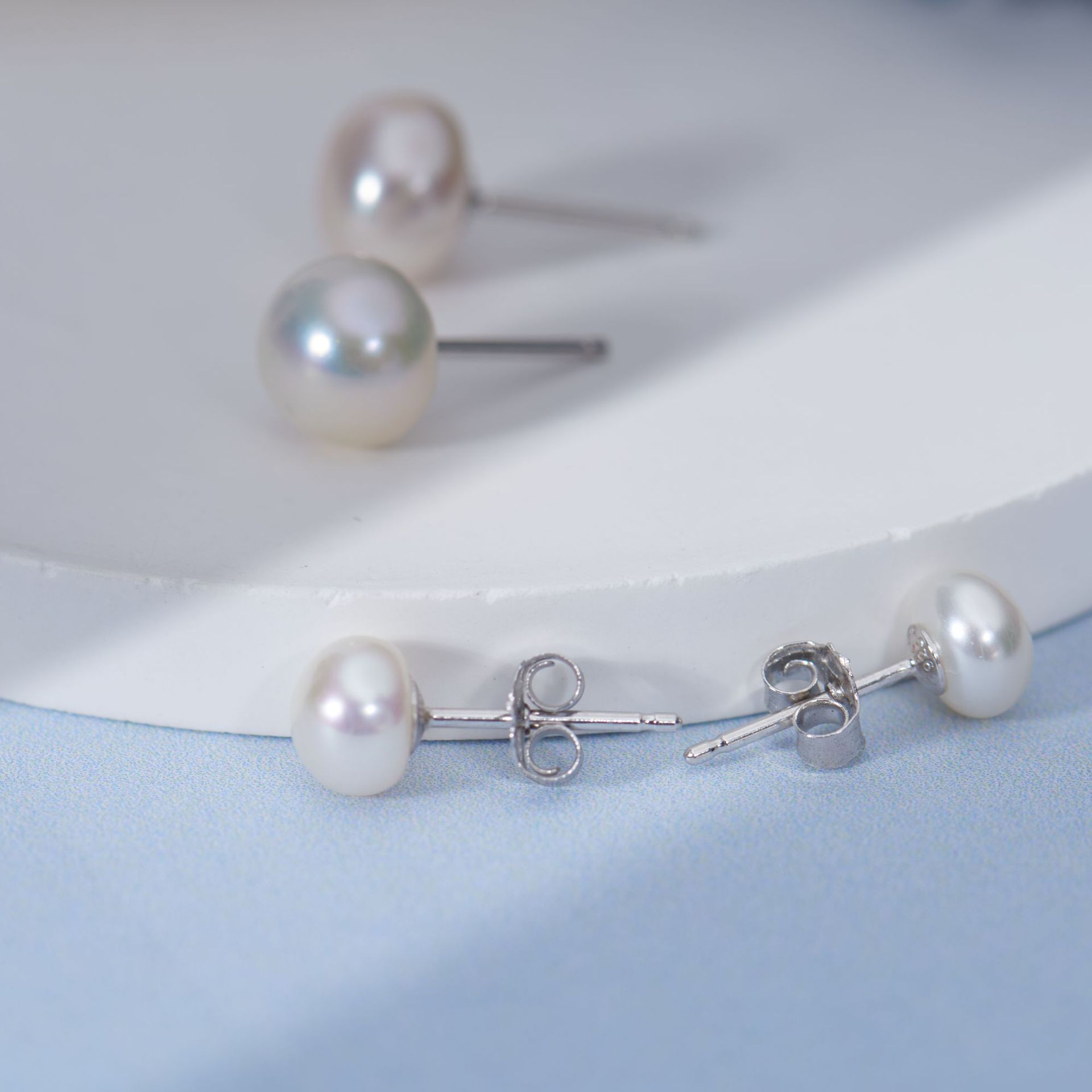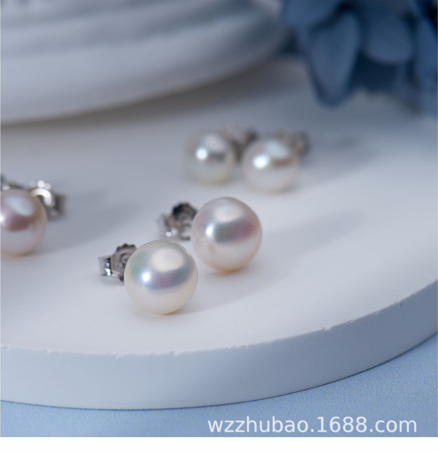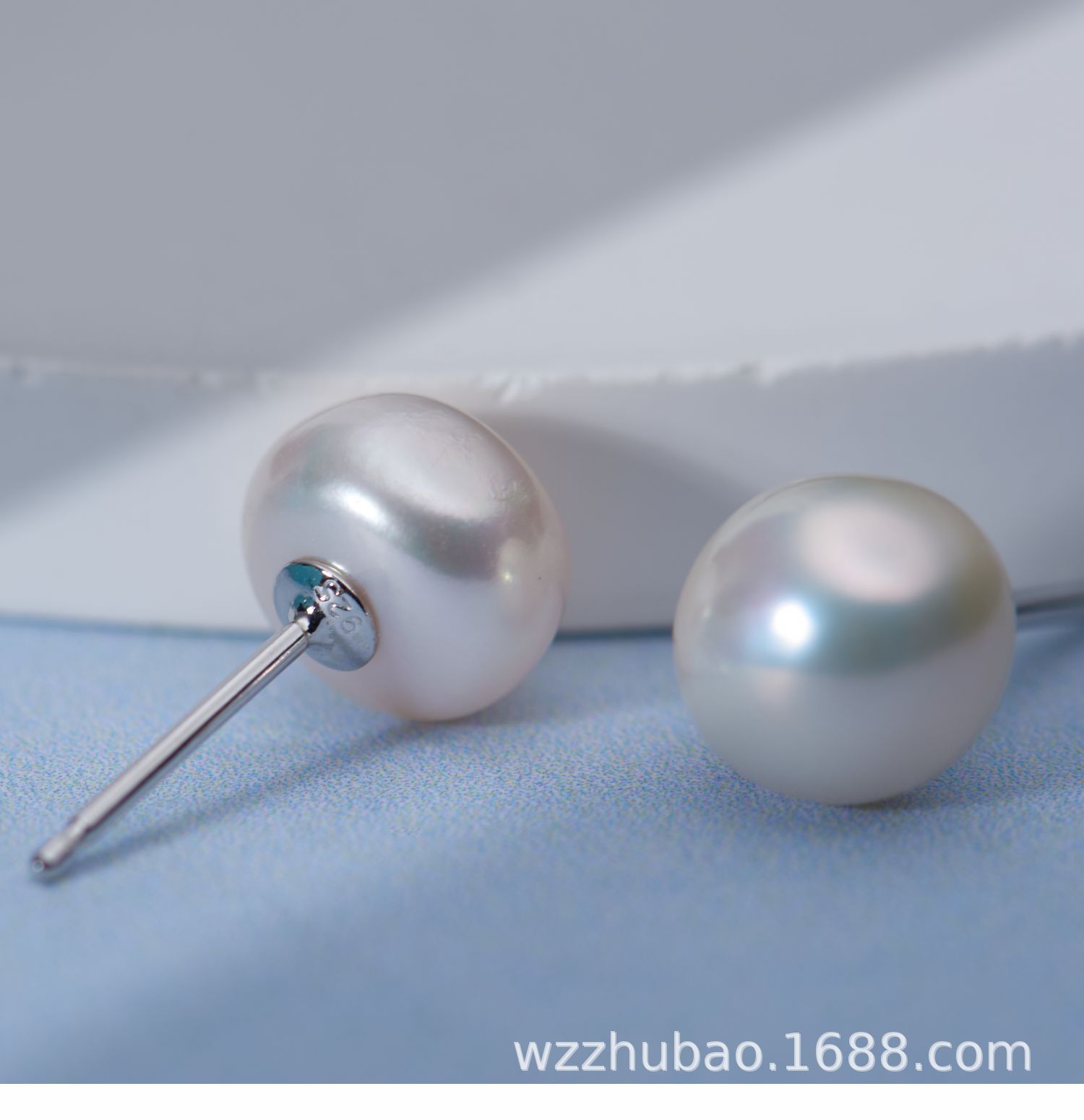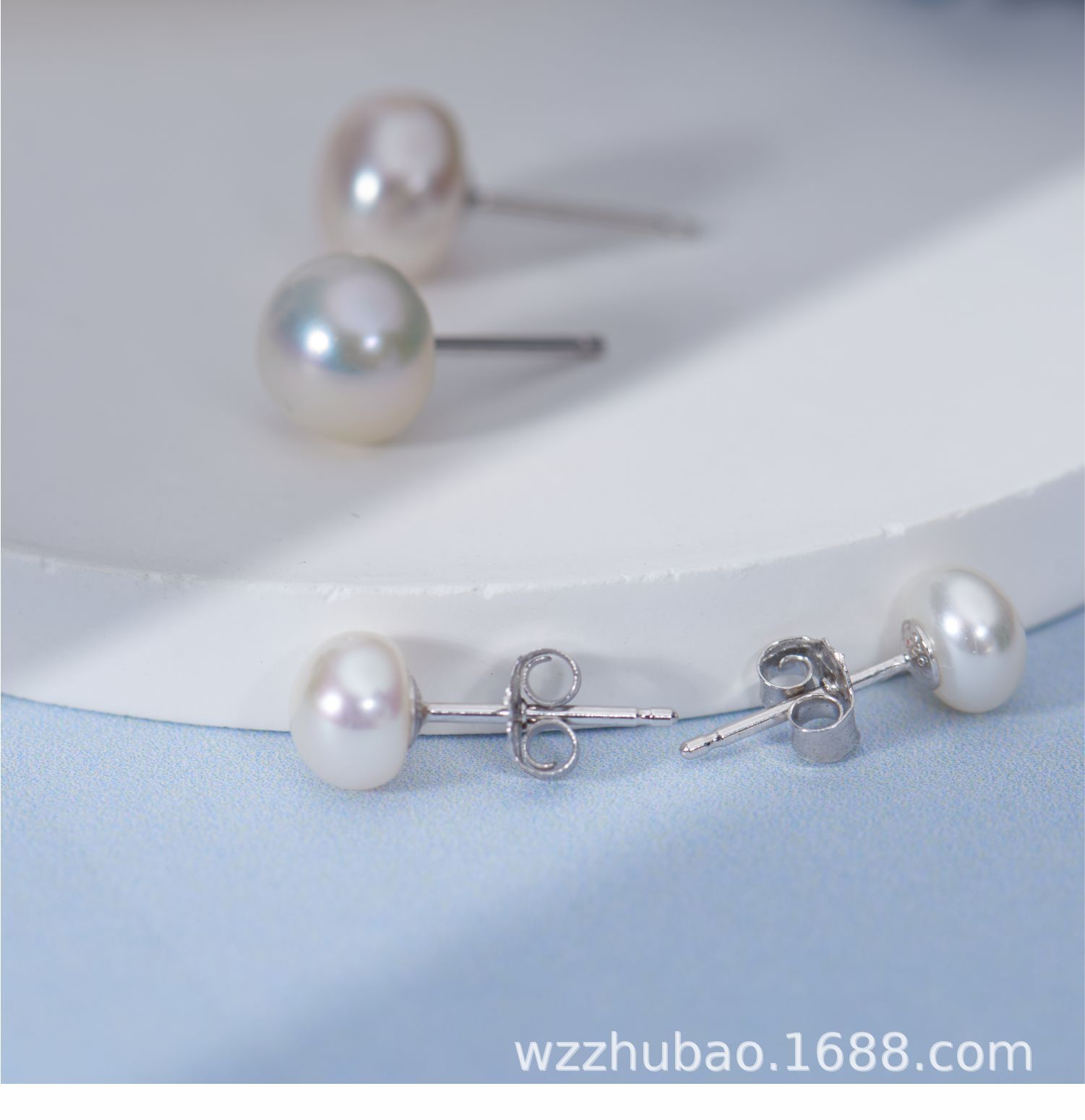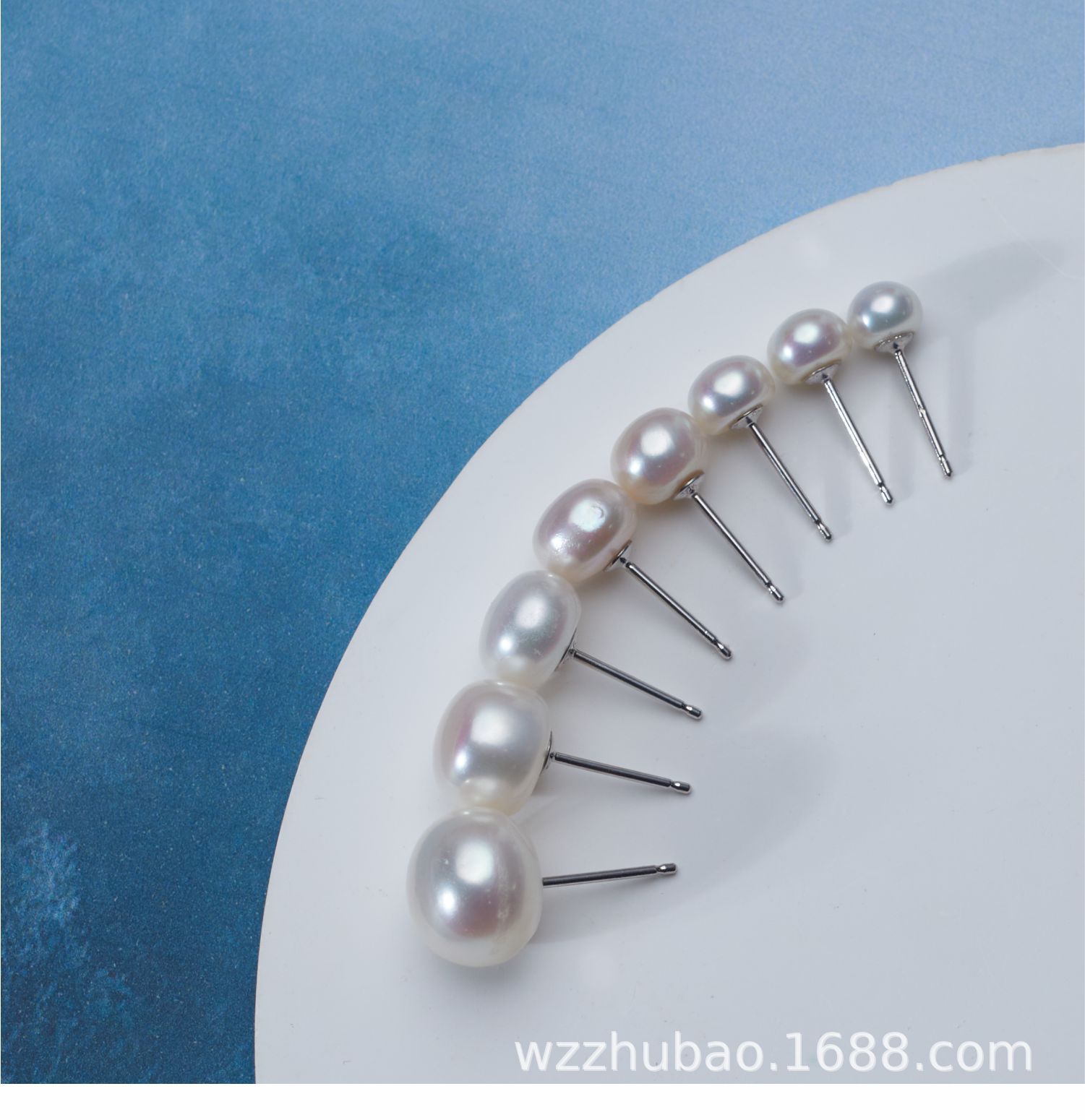 Аврора Натуральные пресноводные жемчужные серьги простые световые булочки на булочке хлебные бусы S925 Серебряные жемчужные серьги-гвозди оптом