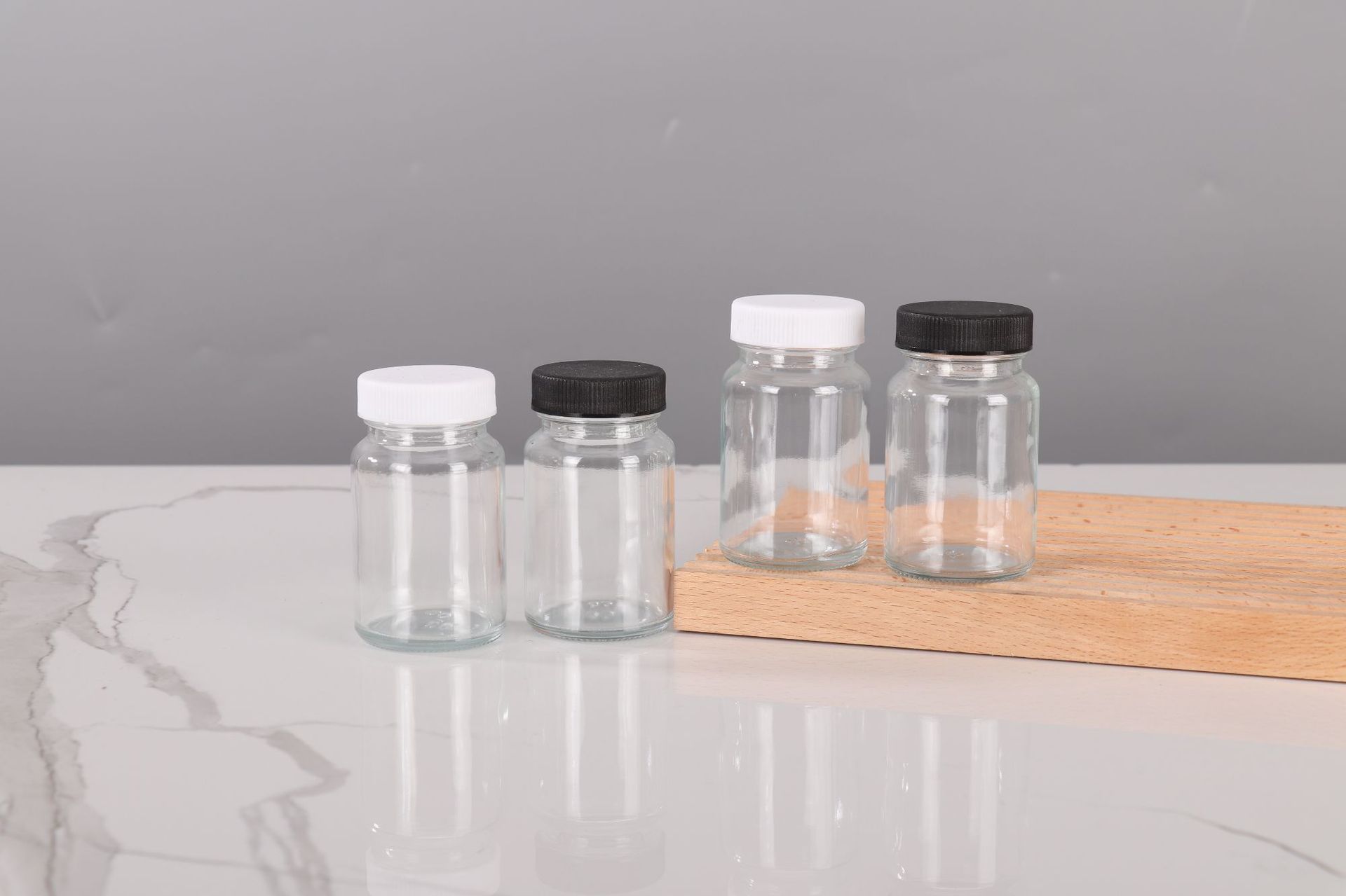 Стеклянная капсульная бутылка в наличии 2 унции прозрачная бутылка для напитков с широким горлом и крышкой маленькая стеклянная бутылка для сока кордицепс 60 мл