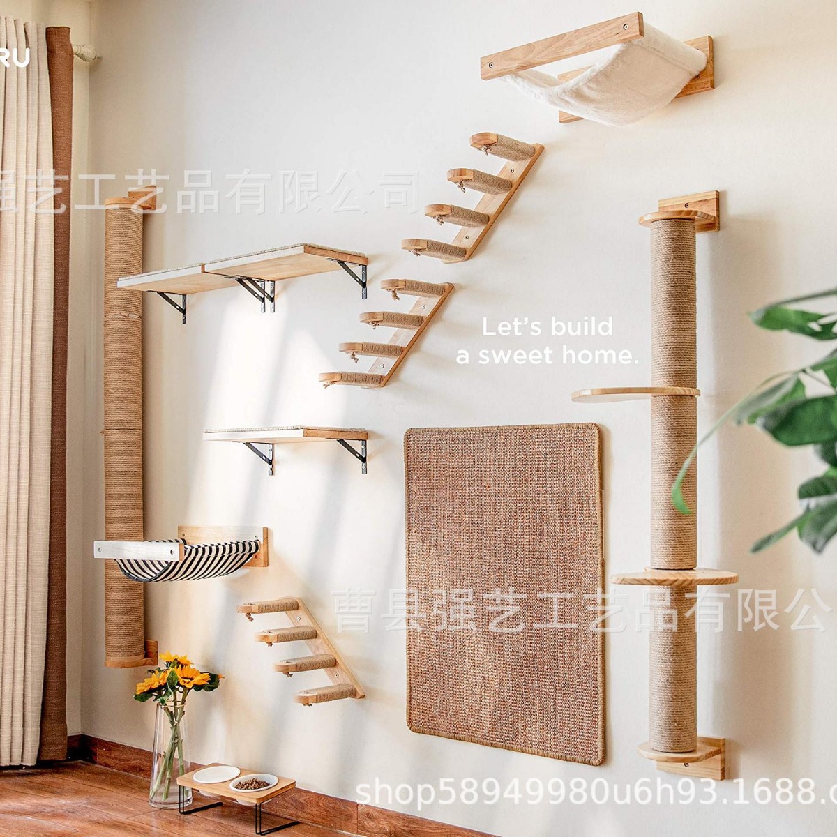 Деревянная лесенка-лесенка для кошек, настенная, многоярусная, с сизалевой веревкой, подвесная, для дома