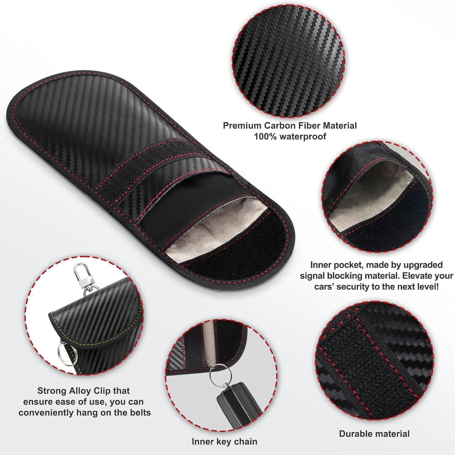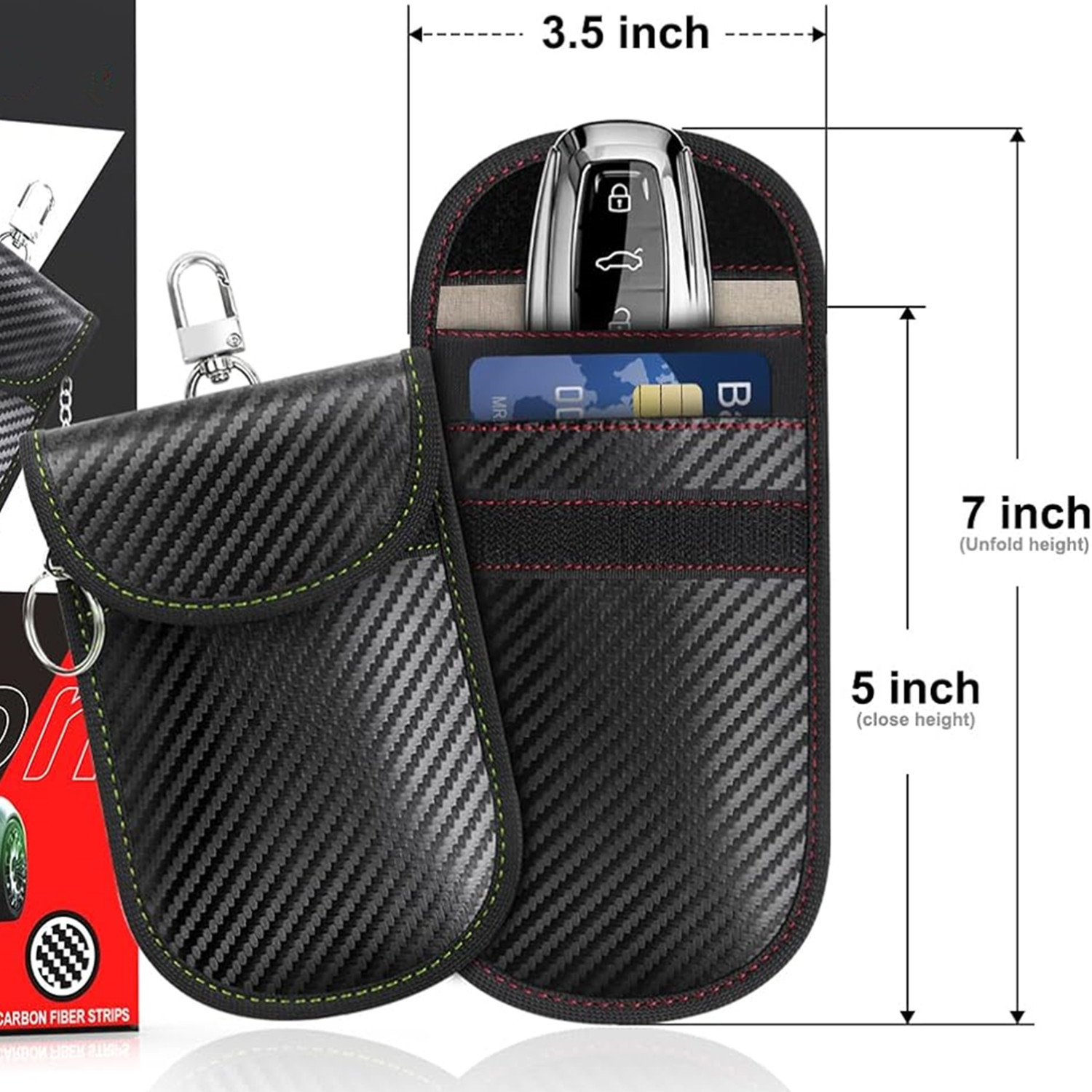【特点】:外贸风格,款式时尚简约,采用碳纤维材质,内部rfid屏蔽面料,100%屏蔽汽车钥匙信号。