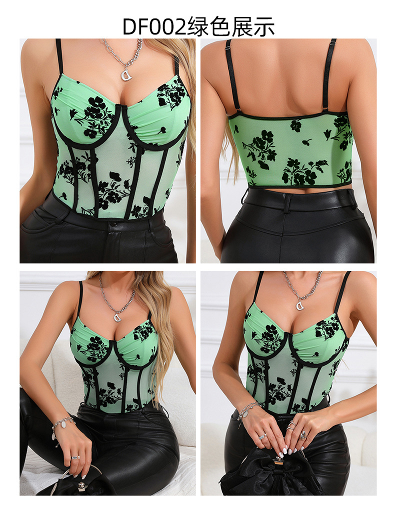 Красота новая сетчатая пряжа Перспективная кашемировая вышивка стальное кольцо рыбий грудной костюм сексуальная горячая девушка камзол