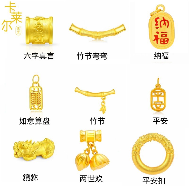 Маленькая талия (около 0,3 г); Клевер четырехлистный (около 0,3 г); Блокировка (около 0,3 г); Лилия лесная (около 0,3 г); Насыщенный золотой кирпич (около 0,3 г); Мобиус (около 0,3 г); Полое сердце (около 0,3 г); Тыква (около 0,3 г); Лотос лотос (около 0,22 г); Сакура (около 0,2 г); Арахис (около 0,3 г); Бренд Фу (около 0,2 г); Корона (около 0,3 г); Сокровищница (около 0,3 г); Цветок розы (около 0,3 г); Лотос (около 0,3 г); Трехмерная любовь (около 0,3 г); Галстук-бабочка (около 0,3 г); Цветок пиона (около 0,3 г); Цветок капли воды (около 0,3 г); Пфафф Гуанван (около 0,3 г); Мешок для денег Pfaff (около 0,3 г); Столб любви (около 0,3 г); Большая прибыль (около 0,25 г); Колокольчик (около 0,3 г); Роза (около 0,3 г); Персонаж Фу (около 0,23 г); Благословение четырех сезонов (около 0,3 г); Бабочка с кисточкой (около 0,3 г); Счастливый четырехлистный клевер (около 0,3 г); Официальная одежда (около 0,35 г); Стиль сердца (около 0,3 г); Счеты (около 0,3 г); Счеты Lucky Bag (около 0,23 г); Персиковый цвет (около 0,3 г); Тюльпаны (около 0,3 г); Хороший арахис из хурмы (около 0,3 г); Семь карт «Одно сердце и один разум» (около 0,3 г); Принцесса в бегах (около 0,3 г); Павлин (около 0,3 г); Листья (около 0,3 г); Есть деньги на расходы (около 0,3 г); Ширина сердца (около 0,3 г); Шестислоговая мантра Баоуф (около 0,2 г); Бамбуковые изгибы (около 0,3 г); Нафу (около 0,25 г); Расчет Руи (около 0,3 г); Бамбуковые узлы (около 0,3 г); Пинг Ан (около 0,3 г); Пиксиу (около 0,3 г); Два мира радости (около 0,3 г); Пробейте пряжку (около 0,3 г); Голова Будды (около 0,3 г); Лавр (около 0,3); Кошечка (около 0,3 г); Золотая техника нефритового листа (ок. 0,3); Полая тыква из дробленого льда (около 0,3 г); Рубленая твердая тыква (около 0,3 г); Ледяной кубик в форме четырехлистного клевера (около 0,3 г); Мятые монеты весом около 0,3 г.; Восторг персикового цвета (около 0,3 г); Роза в фоторамке (около 0,3 г); Подвеска «Счастливая тыква» (около 0,3 г); Куроми (около 0,3 г); Подвеска в виде кошки (около 0,3 г); Золотой пельмень (примерно 0,3 г); Подвеска «Снежинка» (около 0,3 г); Подвеска-карусель (около 0,3 г); Подвеска «Счастливая лошадь» (около 0,3 г); Подвеска «Счастье нависает» (примерно 0,3 г); Лотос Луны (около 0,3 г); Яблоко «Богатство» (примерно 0,3 г); Единорог (около 0,3 г)