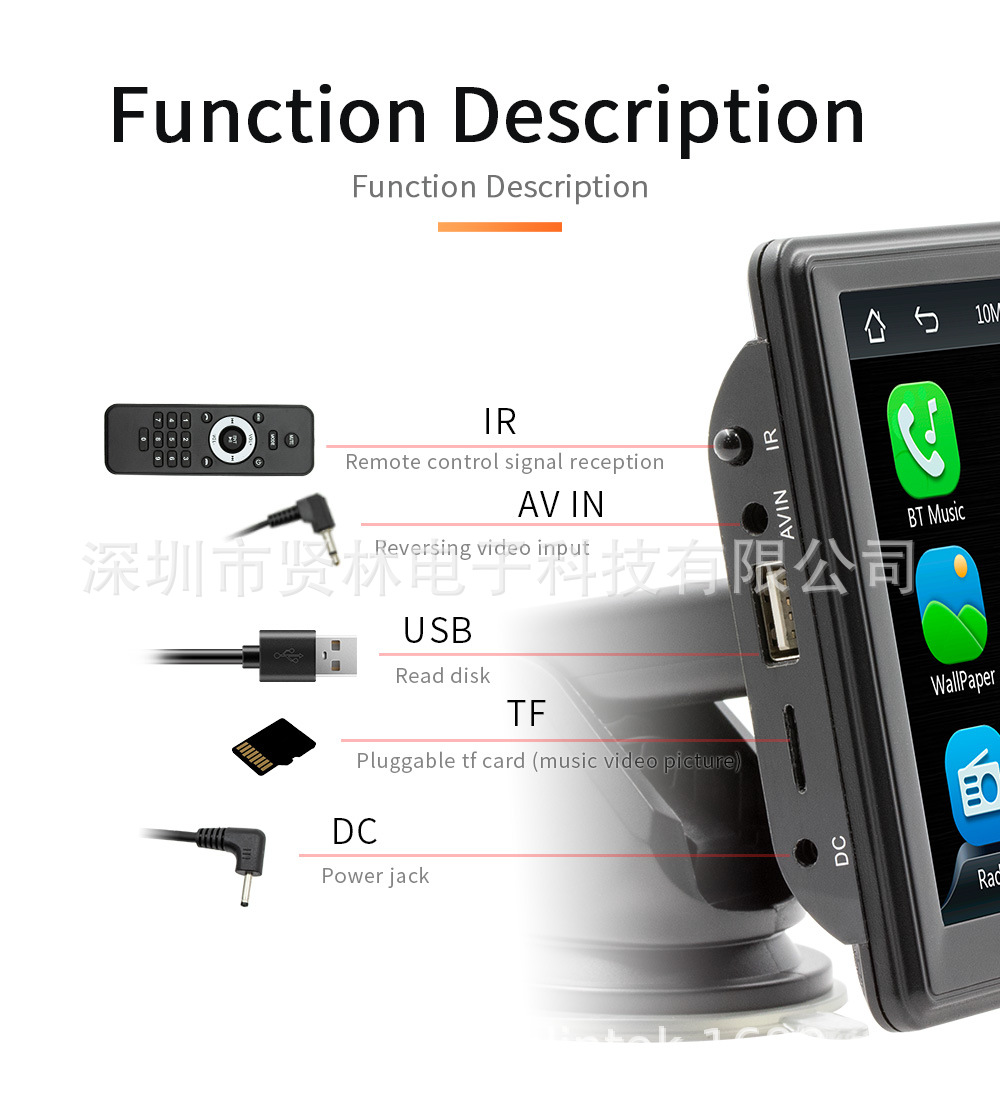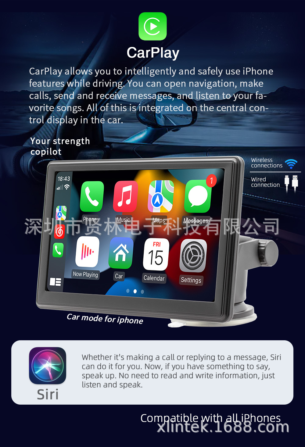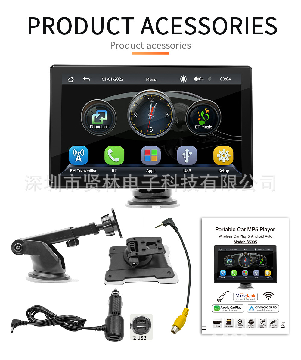 Портативный беспроводной автомобильный MP5-плеер Carplay Bluetooth 7inch с радиокартой