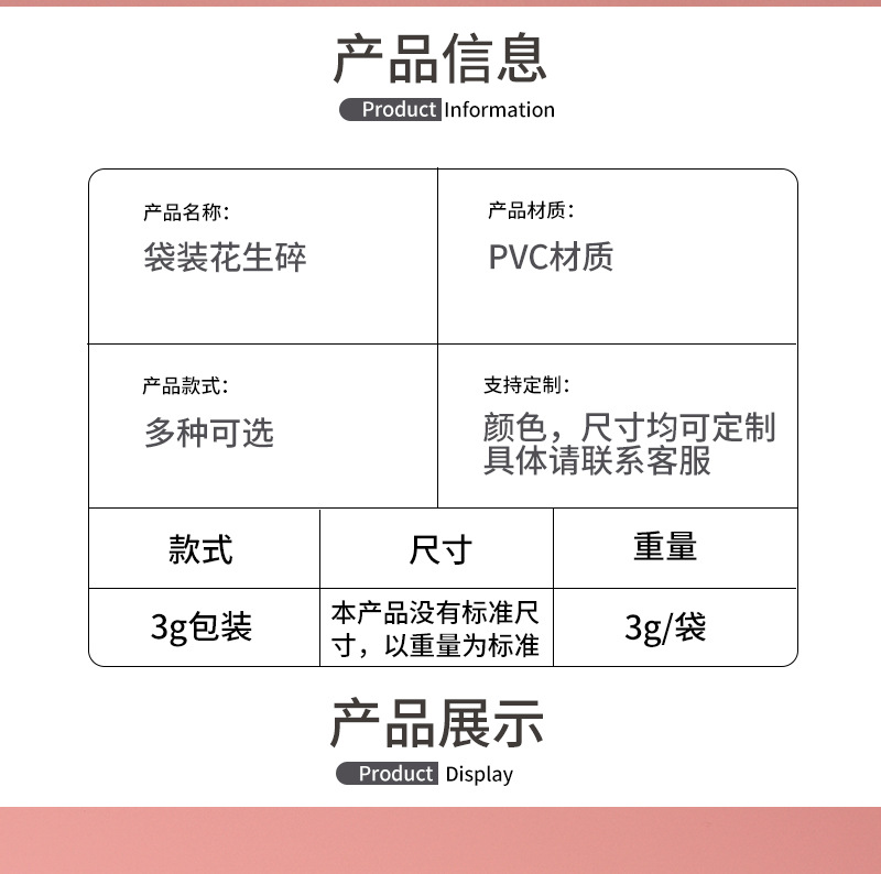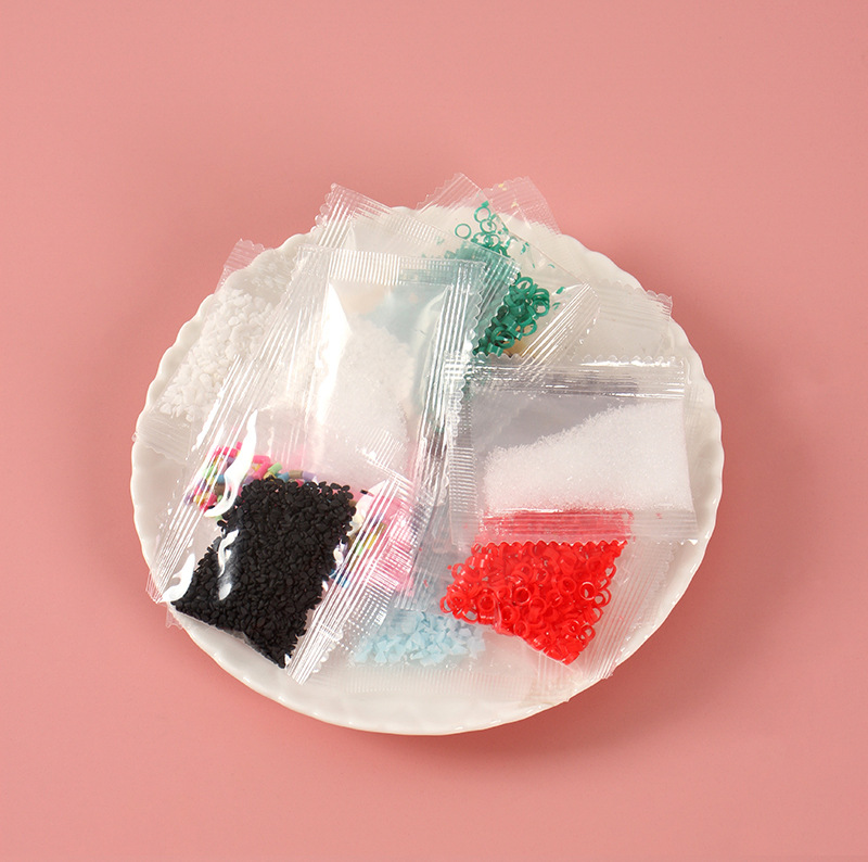 Каштановые шоколадные крошки • (3г); Щебитый синий шоколад • (3г); Розовые шоколадные крошки • (3г); Желтые шоколадные крошки • (3г); Белые шоколадные крошки • (3г); Черный кунжут измельчен• (3г); Кунжут белый измельчен• (3г); Сечение красной луковицы • (2 г); Секция зеленого лука • (2 г); Зерна сахара • (3г); Конфеты со льдом • (3 г); Грубый сахар • (3г); Мелкий сахар • (3г)