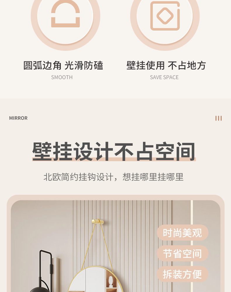 Зеркало для одежды Зеркало висит на стене дома ins Ветер Студенческое общежитие примерка Зеркало для спальни настенное зеркало в полном теле