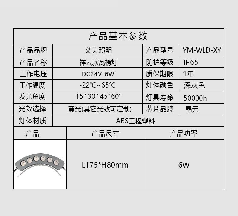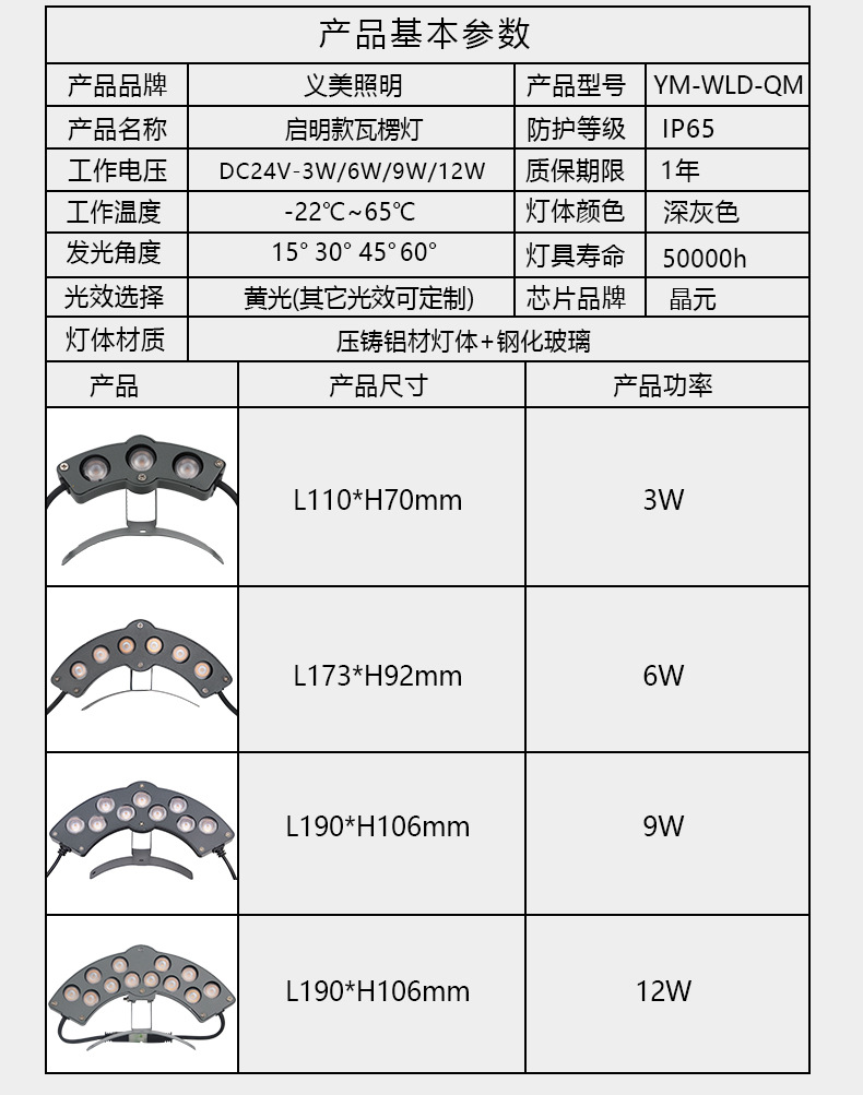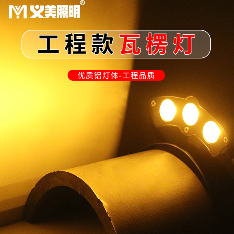 Yimei светодиодный гофрированный светильник водонепроницаемый старинный архитектурный полумесяц 3W6W9W12W теплый желтый плитчатый светильник небольшой прожекционный светильник