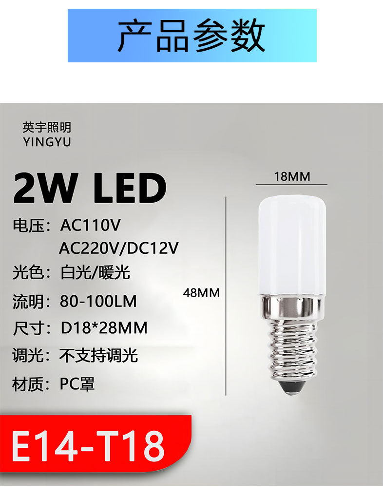E14-T18 【2W】; E14-T22【2W】; E12-T22【2W】; E14-T26【2W】; E14- нить [2 Вт]