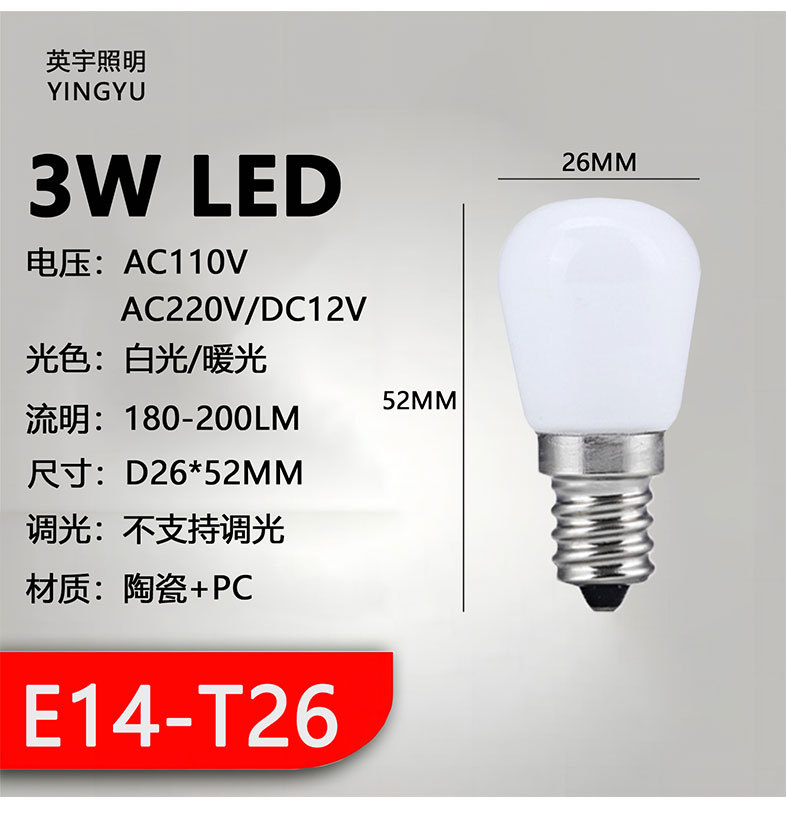 Светодиодная лампа для холодильника T22, кукурузная лампа T12, лампа для морозильной камеры T18, лампа для морозильной камеры T26, лампа для швейной машины E12, E14, E17, лампа для зеркала для макияжа.
